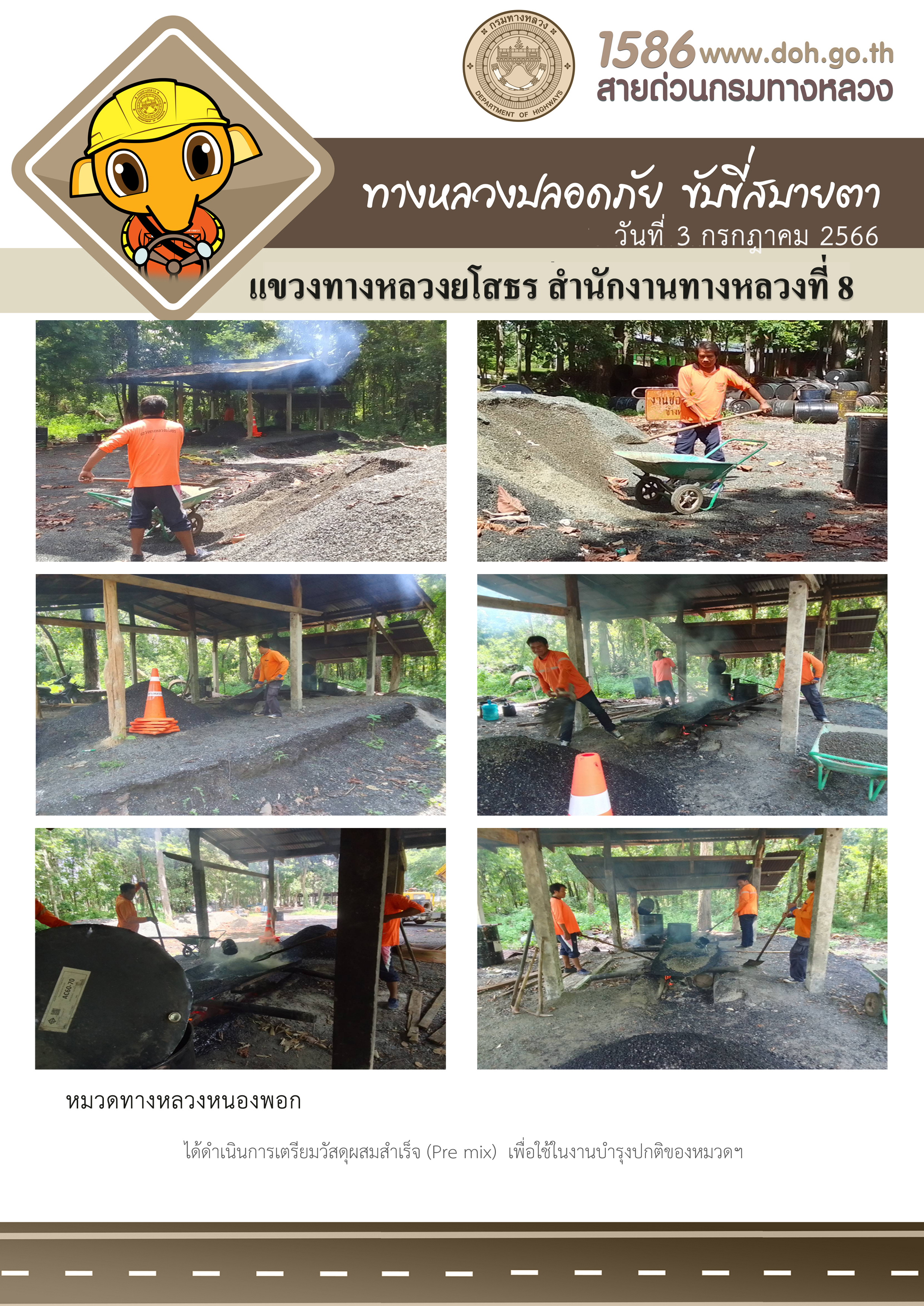 วันที่ 3 กรกฎาคม 2566 หมวดทางหลวงหนองพอก ได้ดำเนินการเตรียมวัสดุผสมสำเร็จ (Pre mix) เพื่อใช้ในงานบำรุงปกติของหมวดฯ