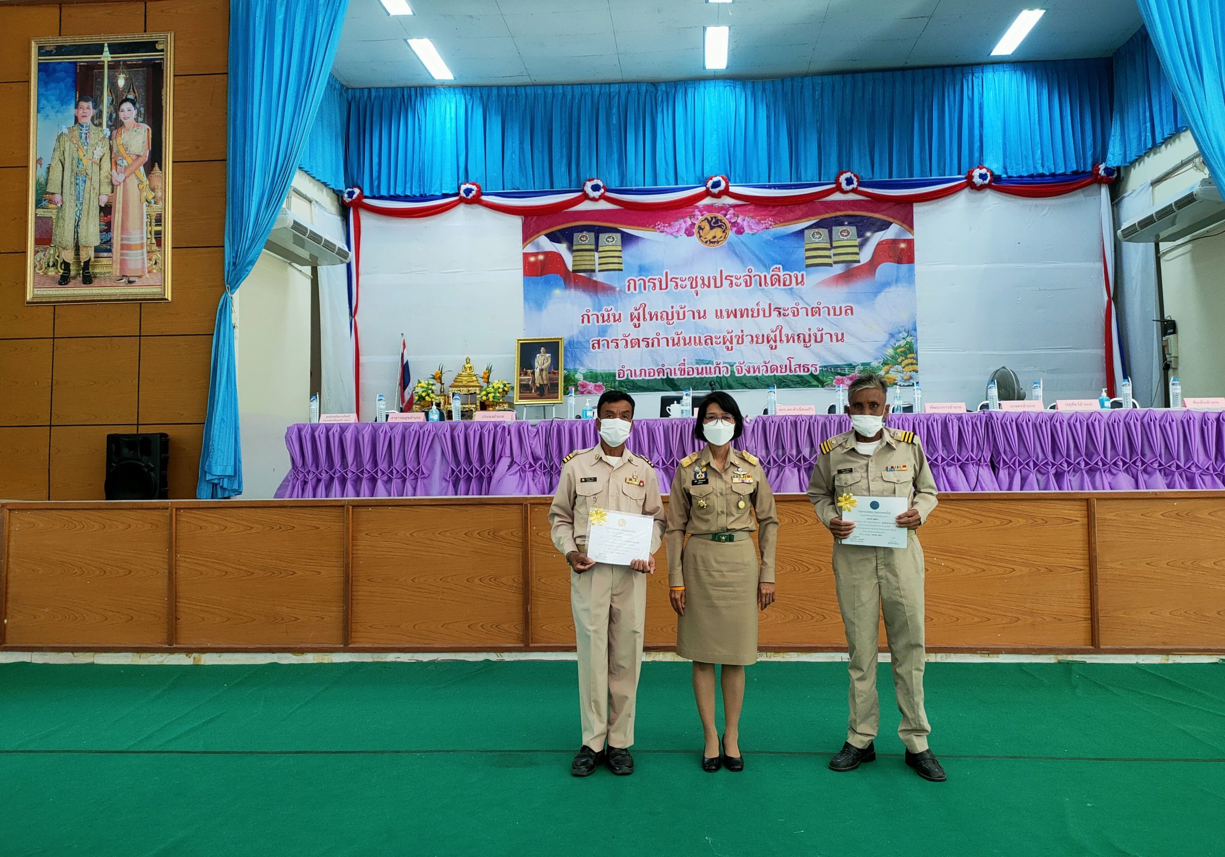๒.มอบพระบรมฉายาลักษณ์ พระบาทสมเด็จพระวชิรเกล้าเจ้าอยู่หัว และสมเด็จพระนางเจ้าฯ พระบรมราชินี ให้กับกำนันที่ดำรงตำแหน่งครบวาระ ๖๐ ปี จำนวน ๑ ราย