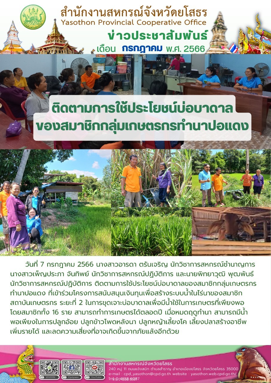 นางสาวอารดา ตรันเจริญ นักวิชาการสหกรณ์ชำนาญการ และนางสาวเพ็ญประภา จันทิพย์ นักวิชาการสหกรณ์ปฏิบัติการ ติดตามการใช้ประโยชน์บ่อบาดาลของสมาชิกกลุ่มเกษตรกรทำนาปอแดง