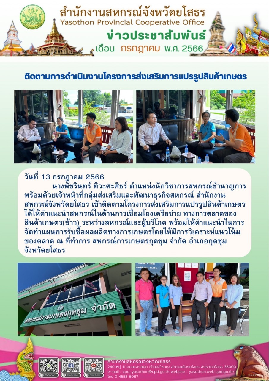 ผู้โพสต์ : [สำนักงานสหกรณ์จังหวัดยโสธร] ทั่วไป