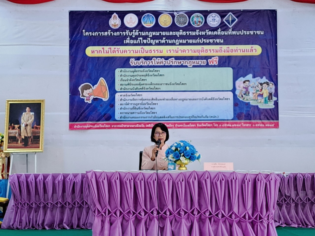 วันที่ 21 ก.ค. 2566 (18:08 น.)วันที่ 7 กรกฎาคม 2566 เวลา 09.00 น. นางยุพิน ภัทรกุลพงษ์ นายอำเภอคำเขื่อนแก้วเป็นประธานในพิธีเปิดโครงการสร้างการรับรู้ด้านกฎหมายและยุติธรรมจังหวัดเคลื่อนที่พบประชาชนเพื่อแก้ไขปัญหาด้านกฎหมายแก่ประชาชน ณ หอประชุม 100 ปีอำเภอคำเขื่อนแก้ว จังหวัดยโสธร โดยมีวัตถุประสงค์เพื่ออำนวยความยุติธรรมสู่หมู่บ้านนำบริการสู่ประชาชนให้ประชาชนเข้าถึงความยุติธรรมได้โดยง่าย สะดวกประหยัด โปร่งใสและเป็นธรรม กลุ่มเป้าหมาย ประกอบด้วยกำนัน ผู้ใหญ่บ้าน ผู้นำชุมชนเครือข่ายยุติธรรมชุมชนและประชาชนในพื้นที่อำเภอคำเขื่อนแก้ว จำนวน 115 คน