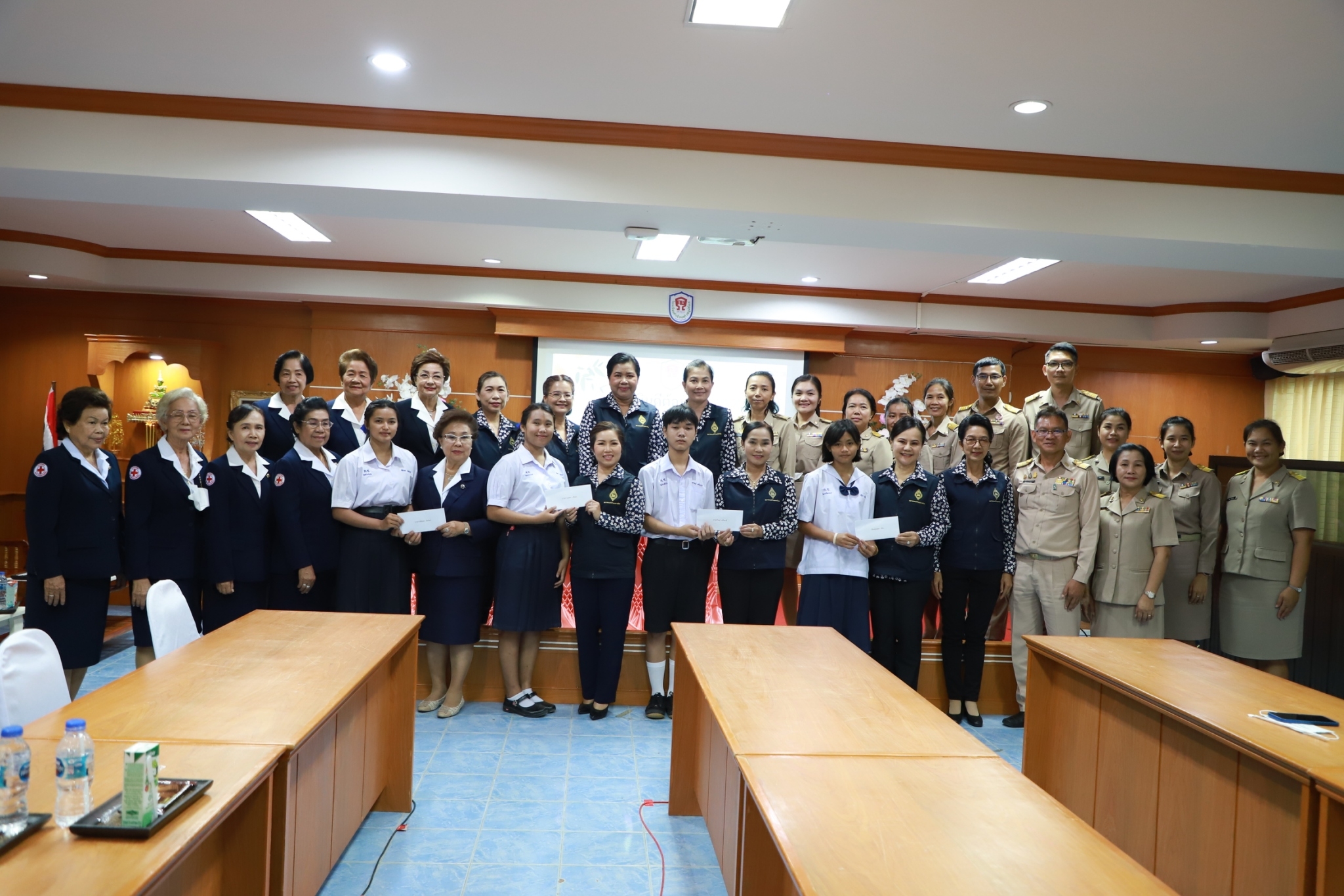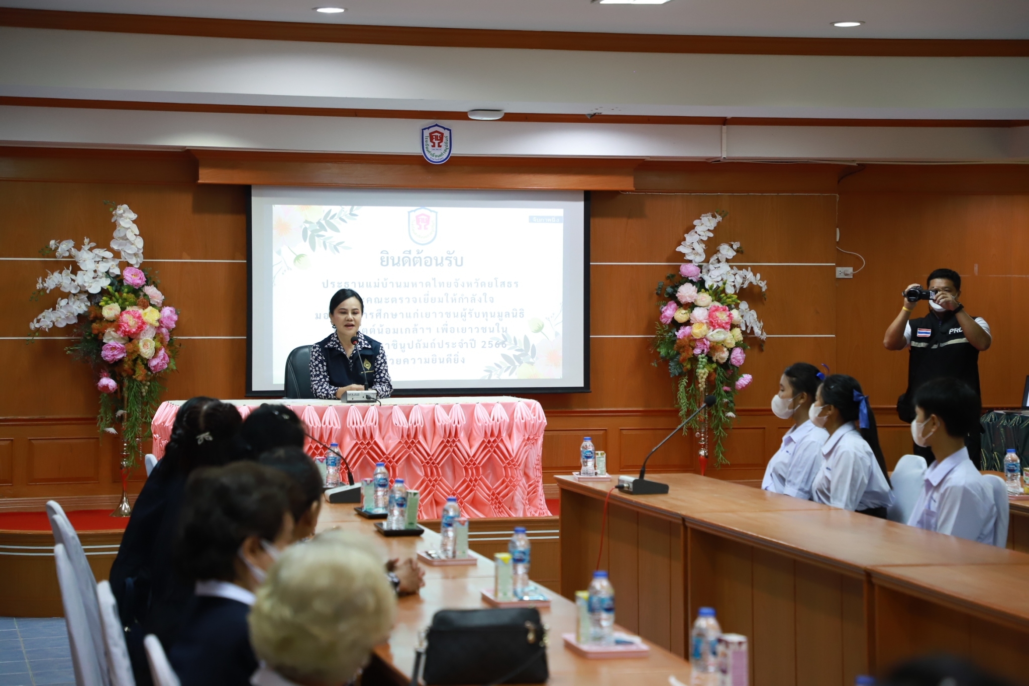 วันที่ 25 ก.ค. 2566 (11:28 น.)วันจันทร์ที่ ๑๗ กรกฎาคม พ.ศ. ๒๕๖๖ เวลา ๑๔.๐๐ น. นางชลาทิพย์ วิชัยบุญ ประธานแม่บ้านมหาดไทยจังหวัดยโสธร พร้อมด้วย คณะทำงานแม่บ้านมหาดไทยจังหวัดยโสธร คณะกรรมการและสมาชิกเหล่ากาชาดจังหวัดยโสธร ตรวจเยี่ยมให้กำลังใจ มอบทุนการศึกษา และสิ่งของแก่เยาวชนผู้รับทุนมูลนิธิร่วมจิตต์น้อมเกล้าฯ เพื่อเยาวชนในพระบรมราชินูปถัมภ์ ประจำปี ๒๕๖๖ จำนวน ๔ ราย ณ ห้องพระมหาธีรนาถ โรงเรียนคำเขื่อนแก้วชนูปถัมภ์ โดยมี นางยุพิน ภัทรกุลพงศ์ นายอำเภอคำเขื่อนแก้ว/คณะทำงานแม่บ้านมหาดไทยจังหวัดยโสธร สมาชิกแม่บ้านมหาดไทยอำเภอคำเขื่อนแก้ว นายชาติชาย สิงห์พรหมสาร ผู้อำนวยการโรงเรียน ฝ่ายบริหาร ครูบุคลากรทางการศึกษา และนักเรียนผู้รับทุนมูลนิธิร่วมจิตต์น้อมเกล้าฯ ร่วมต้อนรับในครั้งนี้