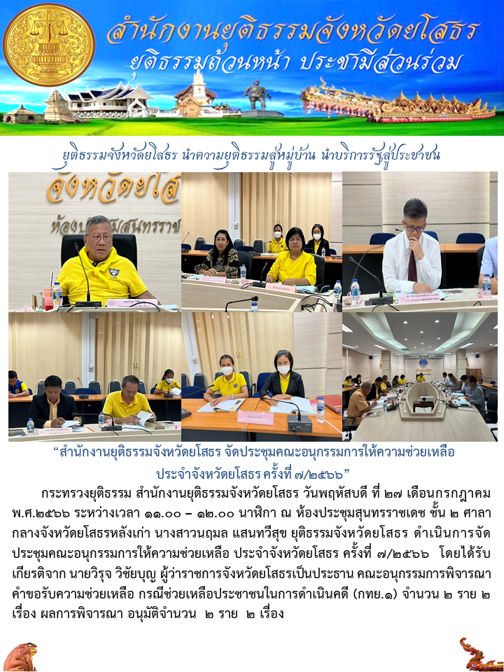 สำนักงานยุติธรรมจังหวัดยโสธร จัดประชุมคณะอนุกรรมการให้ความช่วยเหลือประจำจังหวัดยโสธร ครั้งที่ 7/2566