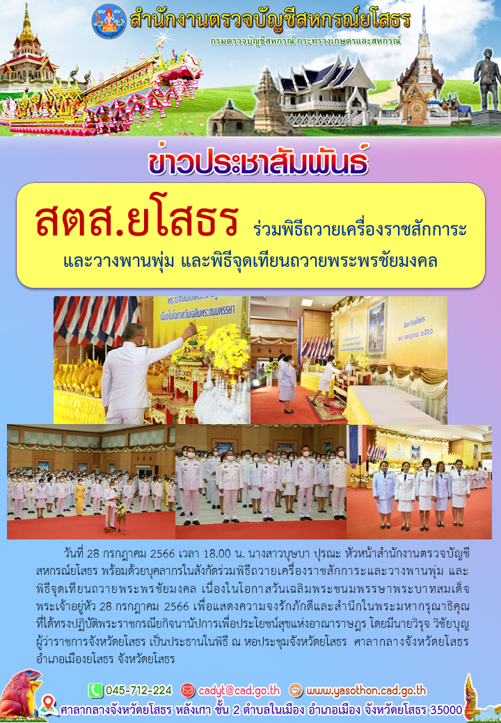 สตส.ยโสธร ร่วมพิธีถวายเครื่องราชสักการะและวางพานพุ่ม และพิธีจุดเทียนถวายพระพรชัยมงคล