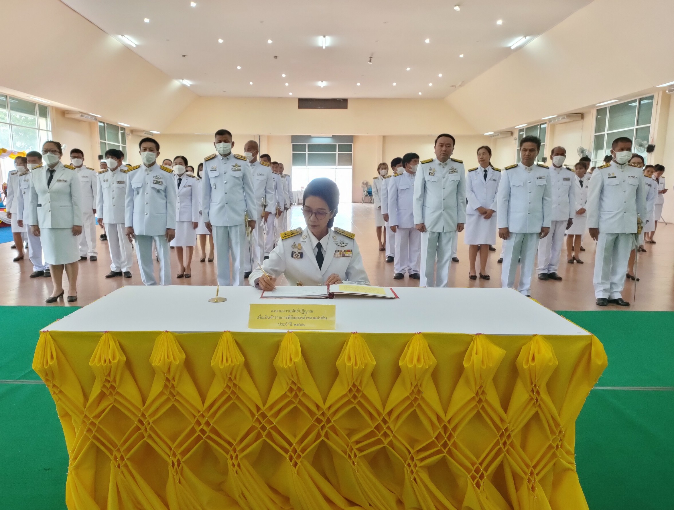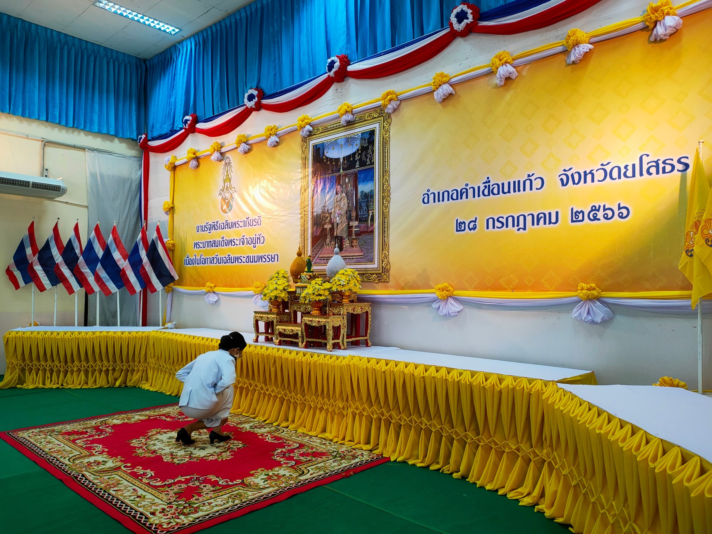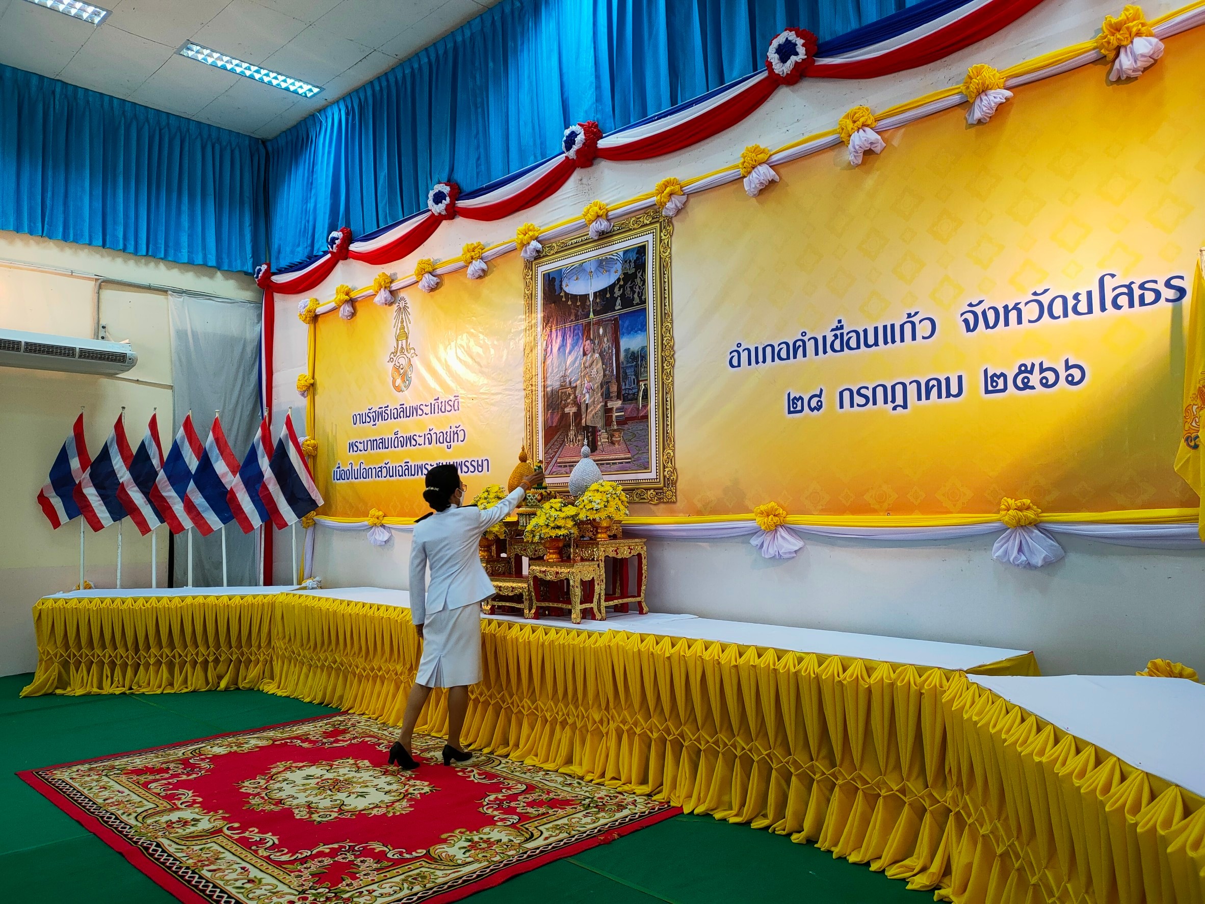 วันที่ 29 ก.ค. 2566 (16:19 น.)วันที่ ๒๘ กรกฎาคม ๒๕๖๖ เวลา ๐๗.๔๐ น. นางยุพิน ภัทรกุลพงศ์ นายอำเภอคำเขื่อนแก้ว เป็นประธานพิธีถวายสัตย์ปฏิญาณเพื่อเป็นข้าราชการที่ดีและพลังของแผ่นดิน ประจำปี ๒๕๖๖ เนื่องในโอกาสวันเฉลิมพระชนมพรรษา ๒๘ กรกฎาคม ๒๕๖๖ ณ หอประชุม ๑๐๐ ปี อำเภอคำเขื่อนแก้ว จังหวัดยโสธร