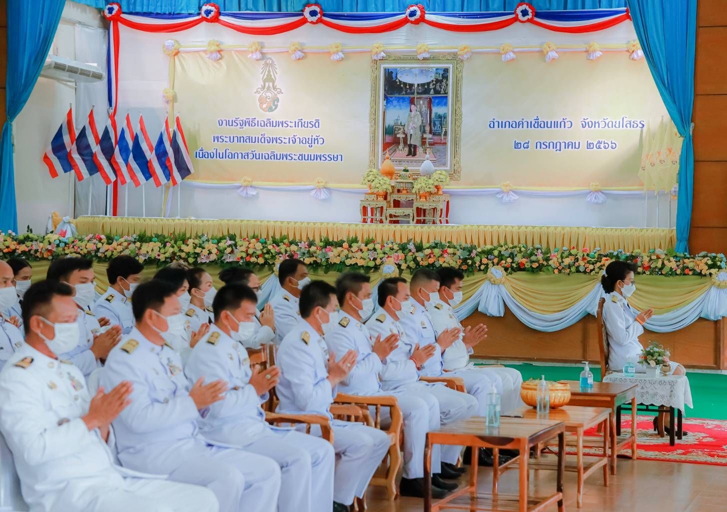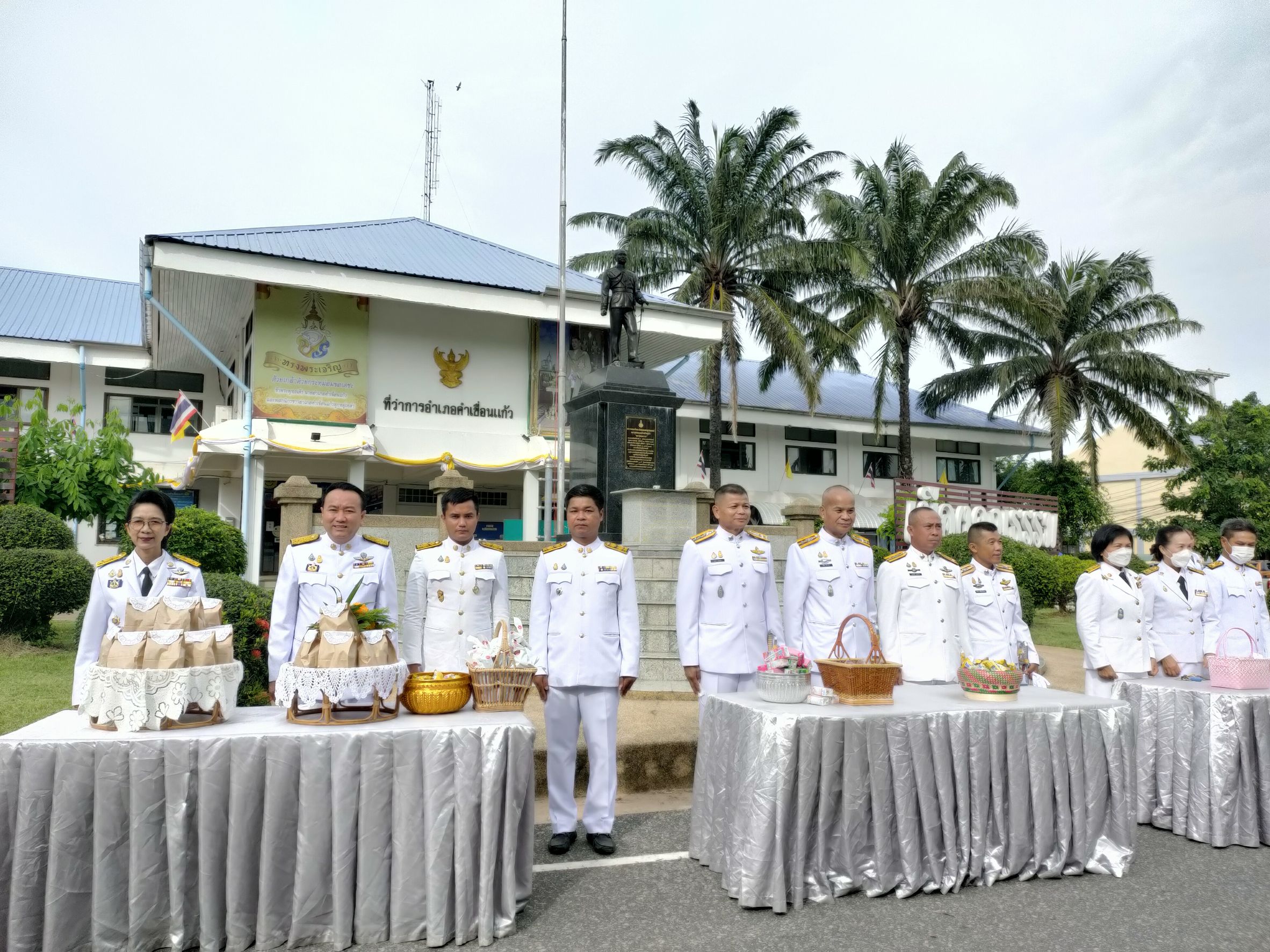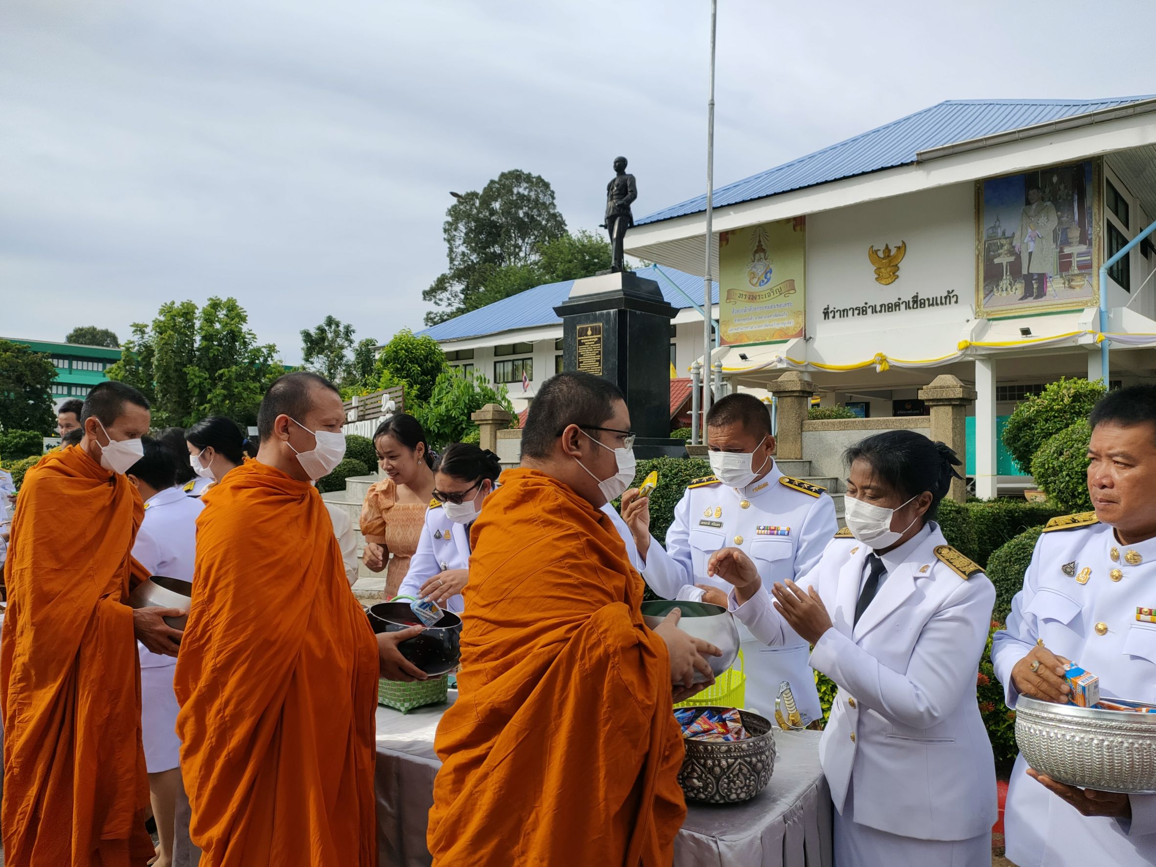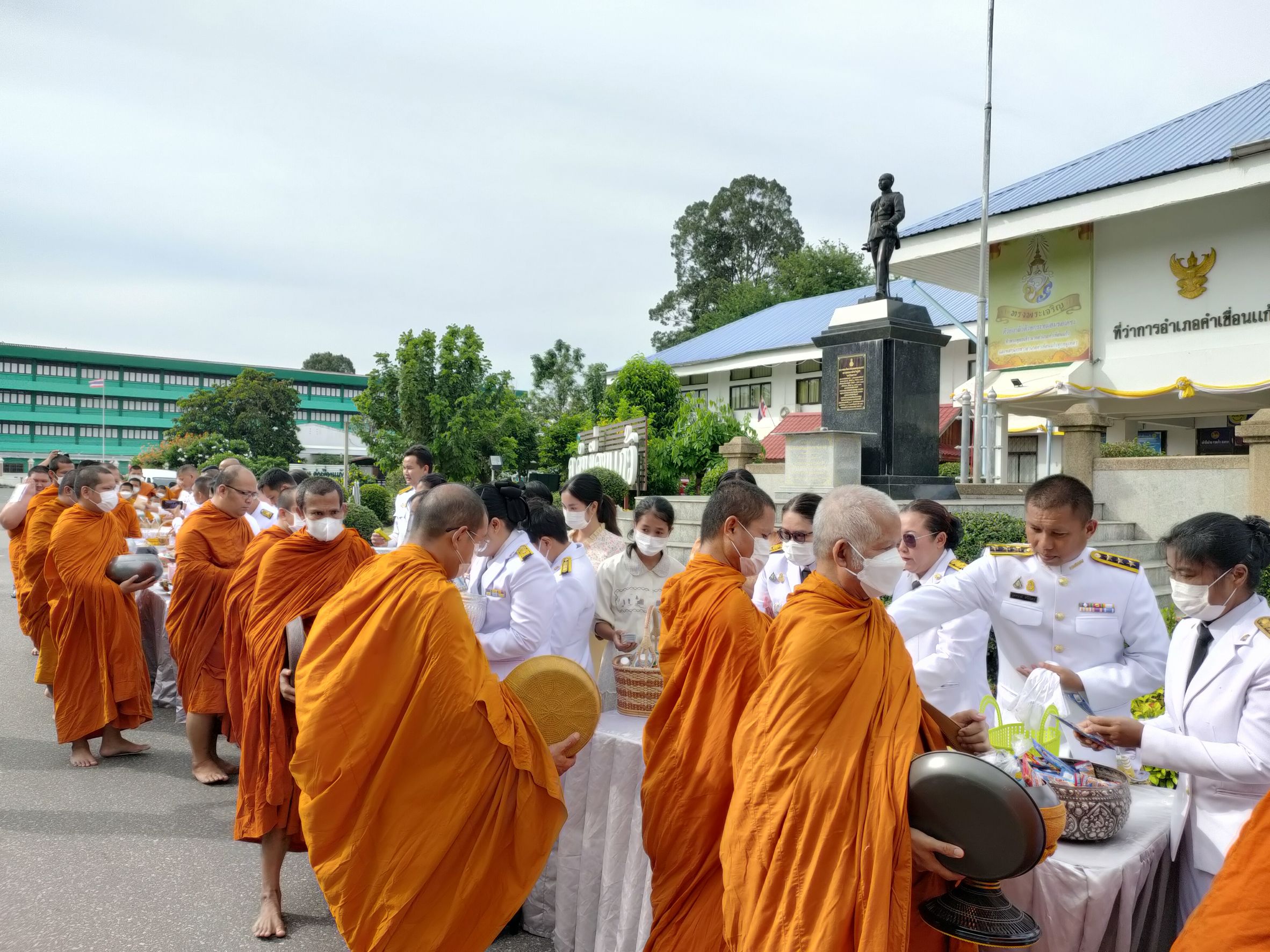 วันที่ 29 ก.ค. 2566 (16:23 น.)วันที่ ๒๘ กรกฎาคม ๒๕๖๖ เวลา ๐๗.๐๐ น. นางยุพิน ภัทรกุลพงศ์ นายอำเภอคำเขื่อนแก้ว เป็นประธานพิธีทำบุญตักบาตรถวายพระราชกุศล กิจกรรมเฉลิมพระเกียรติพระบาทสมเด็จพระเจ้าอยู่หัว เนื่องในโอกาสวันเฉลิมพระชนมพรรษา ๒๘ กรกฎาคม ๒๕๖๖ ณ หอประชุม ๑๐๐ ปี อำเภอคำเขื่อนแก้ว และบริเวณถนนหน้าที่ว่าการอำเภอคำเขื่อนแก้ว จังหวัดยโสธร