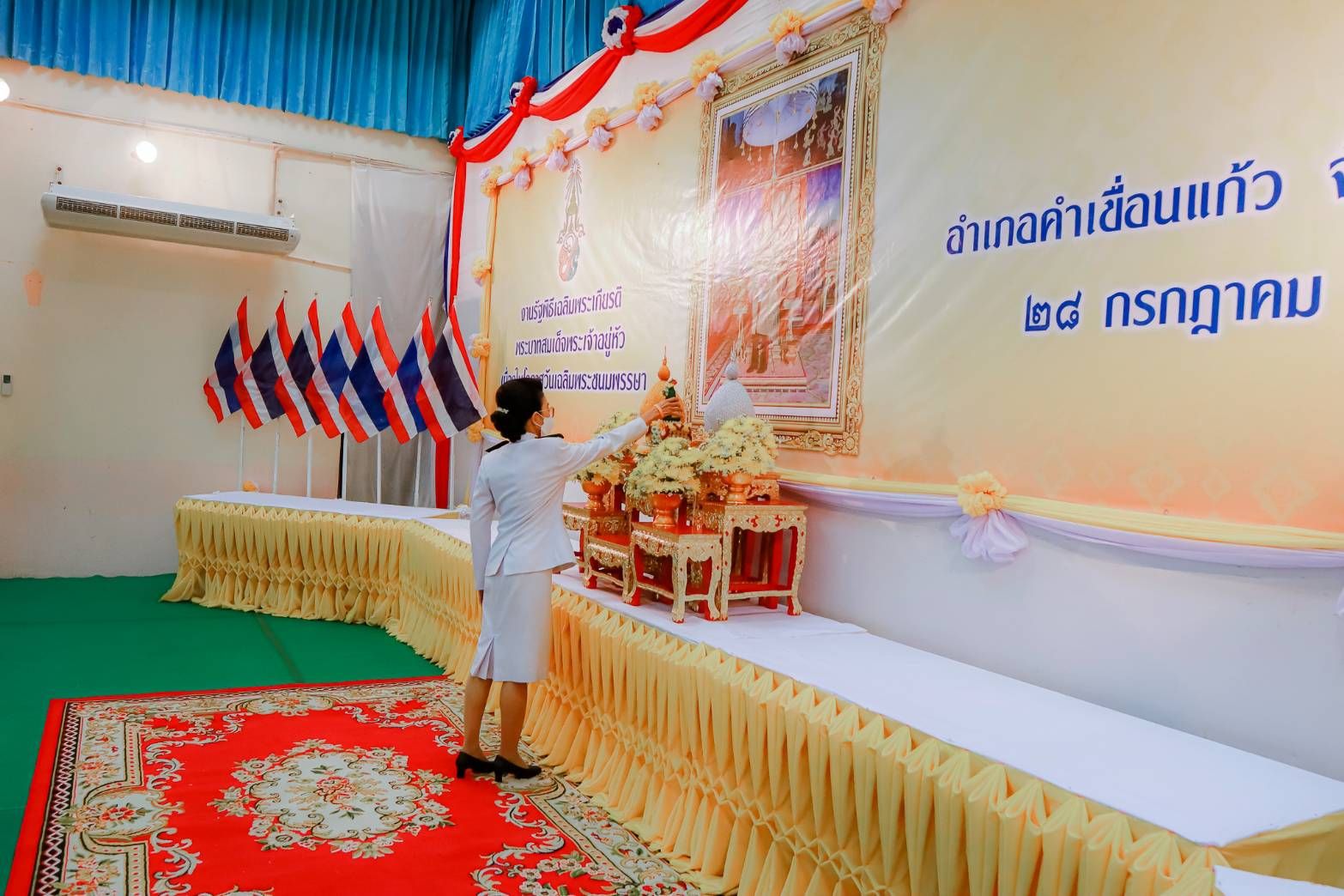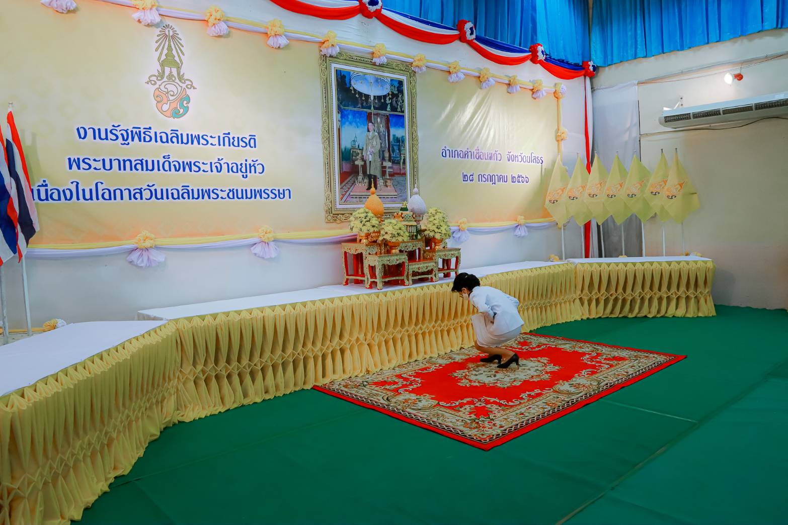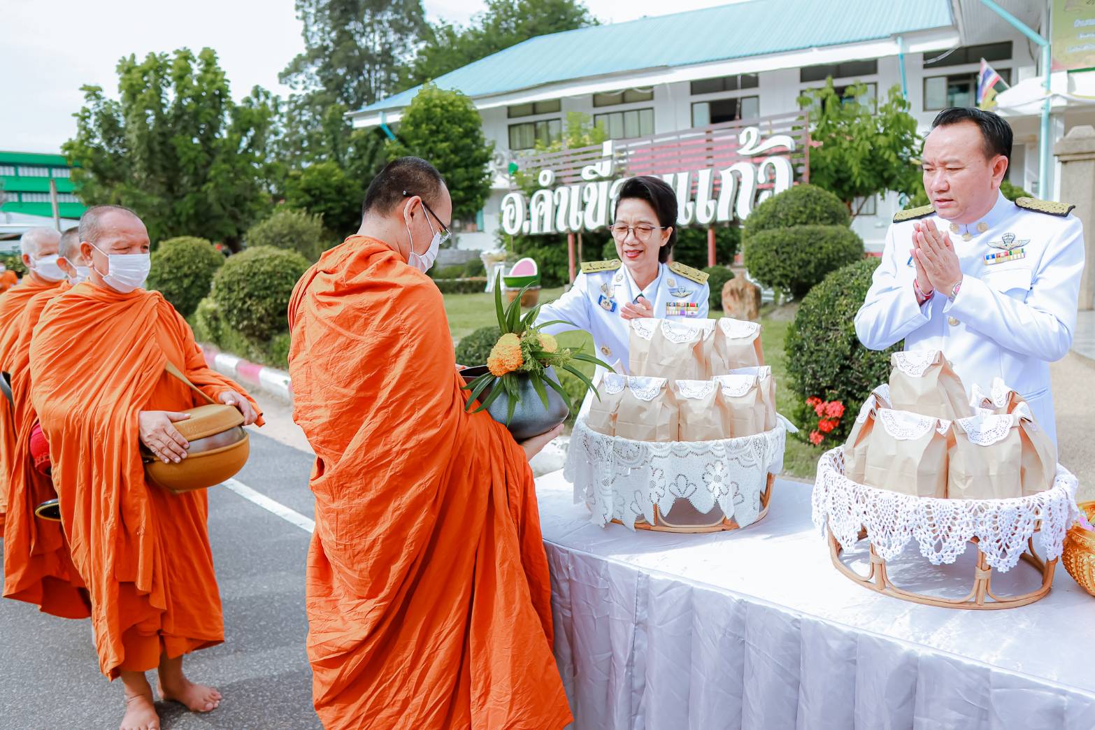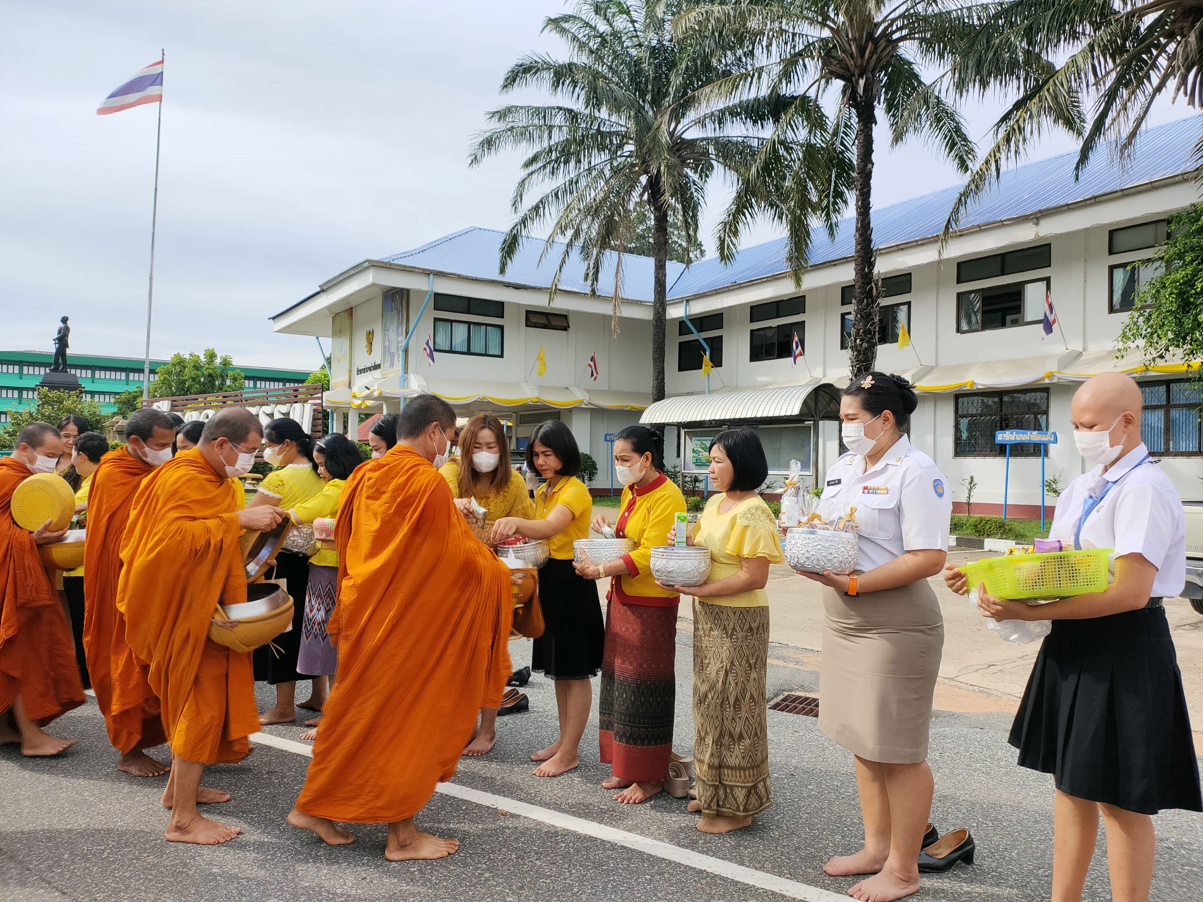 วันที่ 29 ก.ค. 2566 (16:23 น.)วันที่ ๒๘ กรกฎาคม ๒๕๖๖ เวลา ๐๗.๐๐ น. นางยุพิน ภัทรกุลพงศ์ นายอำเภอคำเขื่อนแก้ว เป็นประธานพิธีทำบุญตักบาตรถวายพระราชกุศล กิจกรรมเฉลิมพระเกียรติพระบาทสมเด็จพระเจ้าอยู่หัว เนื่องในโอกาสวันเฉลิมพระชนมพรรษา ๒๘ กรกฎาคม ๒๕๖๖ ณ หอประชุม ๑๐๐ ปี อำเภอคำเขื่อนแก้ว และบริเวณถนนหน้าที่ว่าการอำเภอคำเขื่อนแก้ว จังหวัดยโสธร