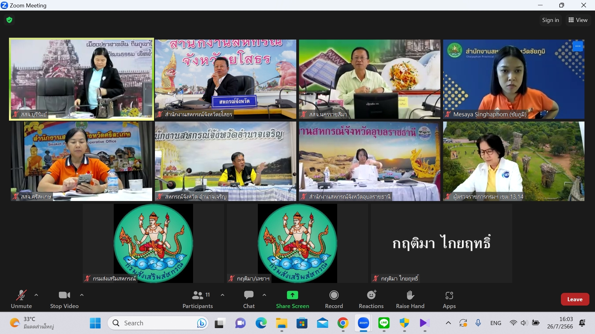 วันที่ 3 ส.ค. 2566 (15:02 น.)เมื่อวันที่ 26 กรกฎาคม 2566 เวลา 09.00 น. นายปรีชา ลาภารัตน์ สหกรณ์จังหวัดยโสธร พร้อมด้วยบุคลากรสำนักงานสหกรณ์จังหวัดยโสธร เข้าร่วมประชุมคณะกรรมการคัดเลือกนักส่งเสริมสหกรณ์ดีเด่น ผู้ตรวจการสหกรณ์ดีเด่น พนักงานราชการดีเด่น ประจำปี พ.ศ.2566 เขตตรวจราชการที่ 13 และ 14 ระดับเขต/ส่วนกลาง ผ่านระบบ zoom meeting ณ ห้องประชุมพิทยาลงกรณ์ สำนักงานสหกรณ์จังหวัดยโสธร โดยมีนางวราลักษณ์ กุลบวรรัตน์ ผู้ตรวจราชการกรม เขตตรวจราชการที่ 13 และ 14 เป็นประธานในการประชุม