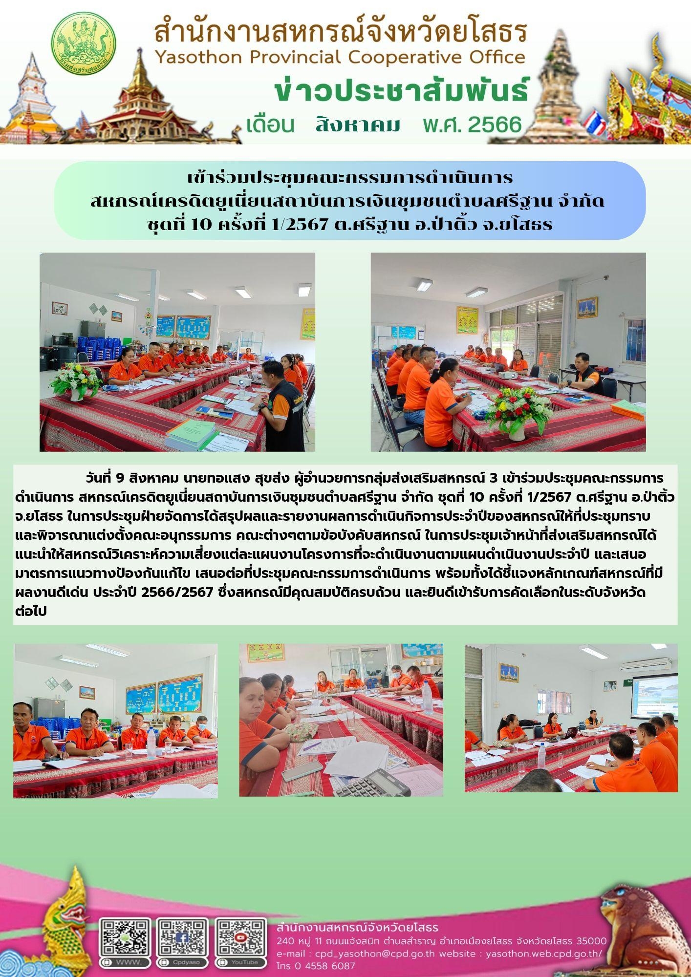 นายทอแสง สุขส่ง ผู้อำนวยการกลุ่มส่งเสริมสหกรณ์ 3 เข้าร่วมประชุมคณะกรรมการดำเนินการสหกรณ์เครดิตยูเนี่ยนสถาบันการเงินชุมชนตำบลศรีฐาน จำกัด