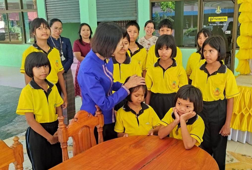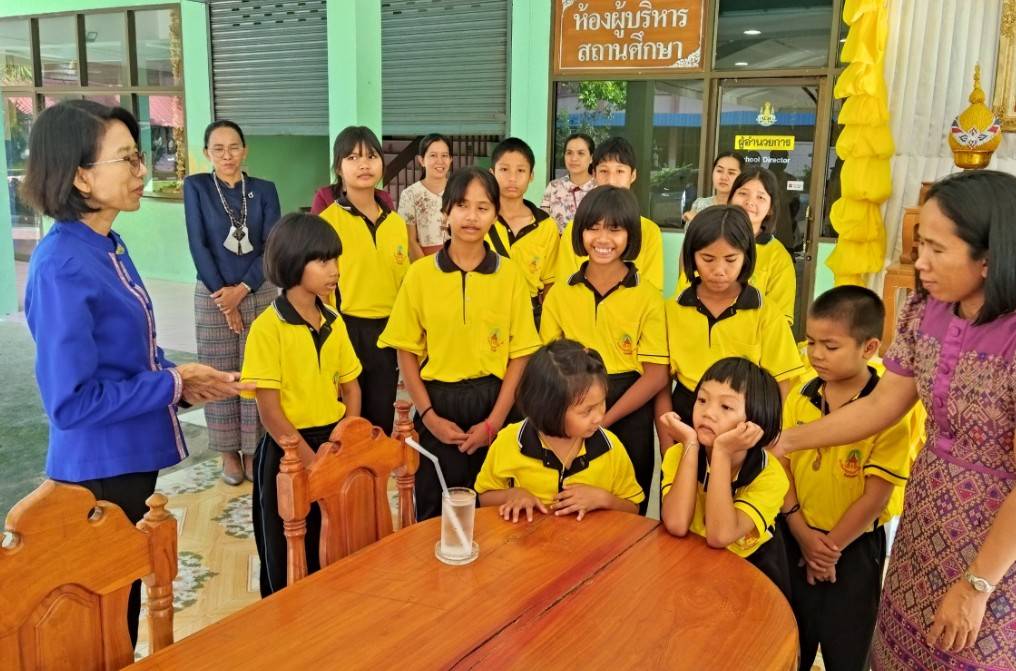 ตรวจเยี่ยมให้กำลังใจเด็กนักเรียนที่นายอำเภอคำเขื่อนแก้วได้แนะนำให้เข้ารับการศึกษา ณ โรงเรียนราชประชานุเคราะห์ ๒๘ จังหวัดยโสธร