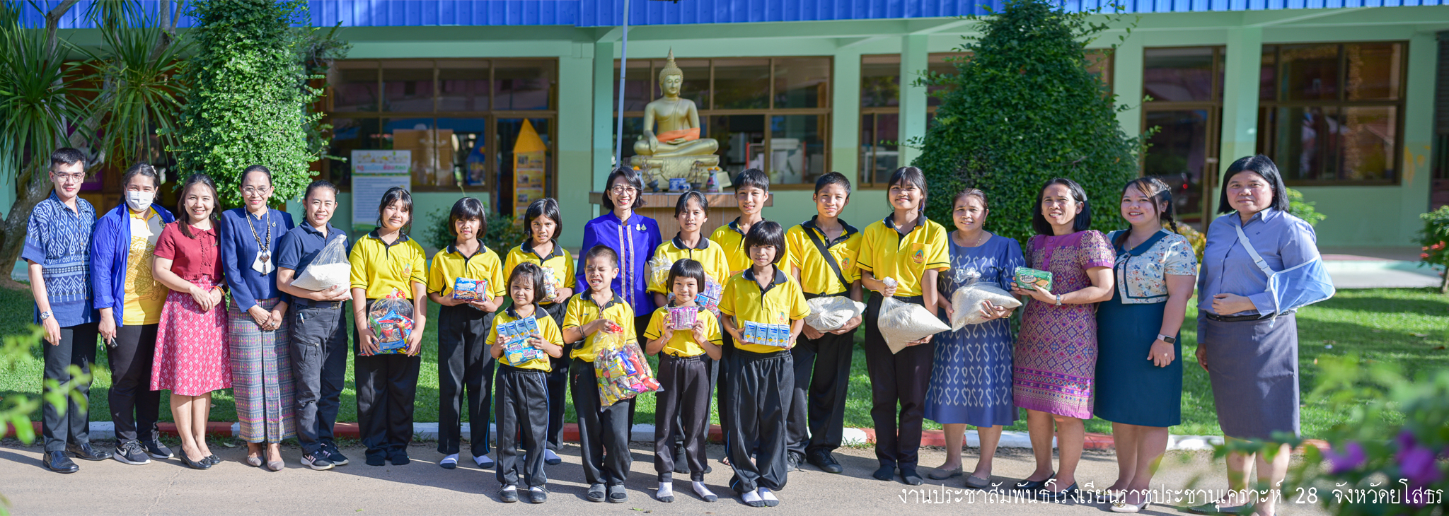 วันที่ 11 ส.ค. 2566 (16:24 น.)วันที่ ๘ สิงหาคม ๒๕๖๖ เวลา ๑๖.๓๐ น. นางยุพิน ภัทรกุลพงศ์ นายอำเภอคำเขื่อนแก้ว พร้อมด้วย ปลัดอำเภอ สมาชิกแม่บ้านมหาดไทยอำเภอคำเขื่อนแก้ว ตรวจเยี่ยมให้กำลังใจเด็กนักเรียนที่นายอำเภอคำเขื่อนแก้วได้แนะนำให้เข้ารับการศึกษา ณ โรงเรียนราชประชานุเคราะห์ ๒๘ จังหวัดยโสธร ในการนี้ ได้มอบสิ่งของที่ได้รับมอบจากคณะสงฆ์อำเภอคำเขื่อนแก้ว ตามโครงการทำบุญตักบาตรเพื่อนำอาหารและสิ่งของไปช่วยเหลือคนยากจน ผู้ได้รับความเดือดร้อน ผู้ด้อยโอกาส และกลุ่มเปราะบาง อำเภอคำเขื่อนแก้ว ประจำปีงบประมาณ พ.ศ. ๒๕๖๖ ให้แก่นักเรียนโรงเรียนราชประชานุเคราะห์ ๒๘ จังหวัดยโสธร โดยมี คณะผู้บริหาร คุณครู โรงเรียนราชประชานุเคราะห์ ๒๘ จังหวัดยโสธร ให้การต้อนรับและอำนวยความสะดวกในครั้งนี้
