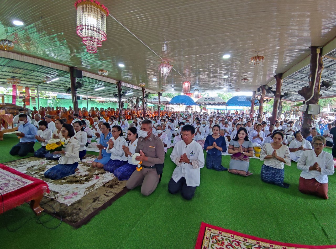 โดยมี พระครูอุดมศาสนธรรม ที่ปรึกษาเจ้าคณะอำเภอคำเขื่อนแก้ว เป็นประธานสงฆ์ มีพระครูเมธีธรรมบัณฑิต เจ้าคณะอำเภอคำเขื่อนแก้ว และคณะสงฆ์หมู่ใหญ่ จำนวน ๓๘๓ รูป มีหัวหน้าส่วนราชการ/ผู้แทนส่วนราชการ คณะกรรมการกิ่งกาชาดอำเภอคำเขื่อนแก้ว ปลัดอำเภอ รองผู้อำนวยการโรงเรียนราชประชานุเคราะห์ ๒๘ จังหวัดยโสธร ผอ.รพ.สต.บกน้อย นายกอบต.ย่อ กำนัน ผู้ใหญ่บ้าน ฯลฯ ในพื้นที่ตำบลย่อ และพุทธศาสนิกชน ร่วมพิธีกว่า ๕๐๐ คน