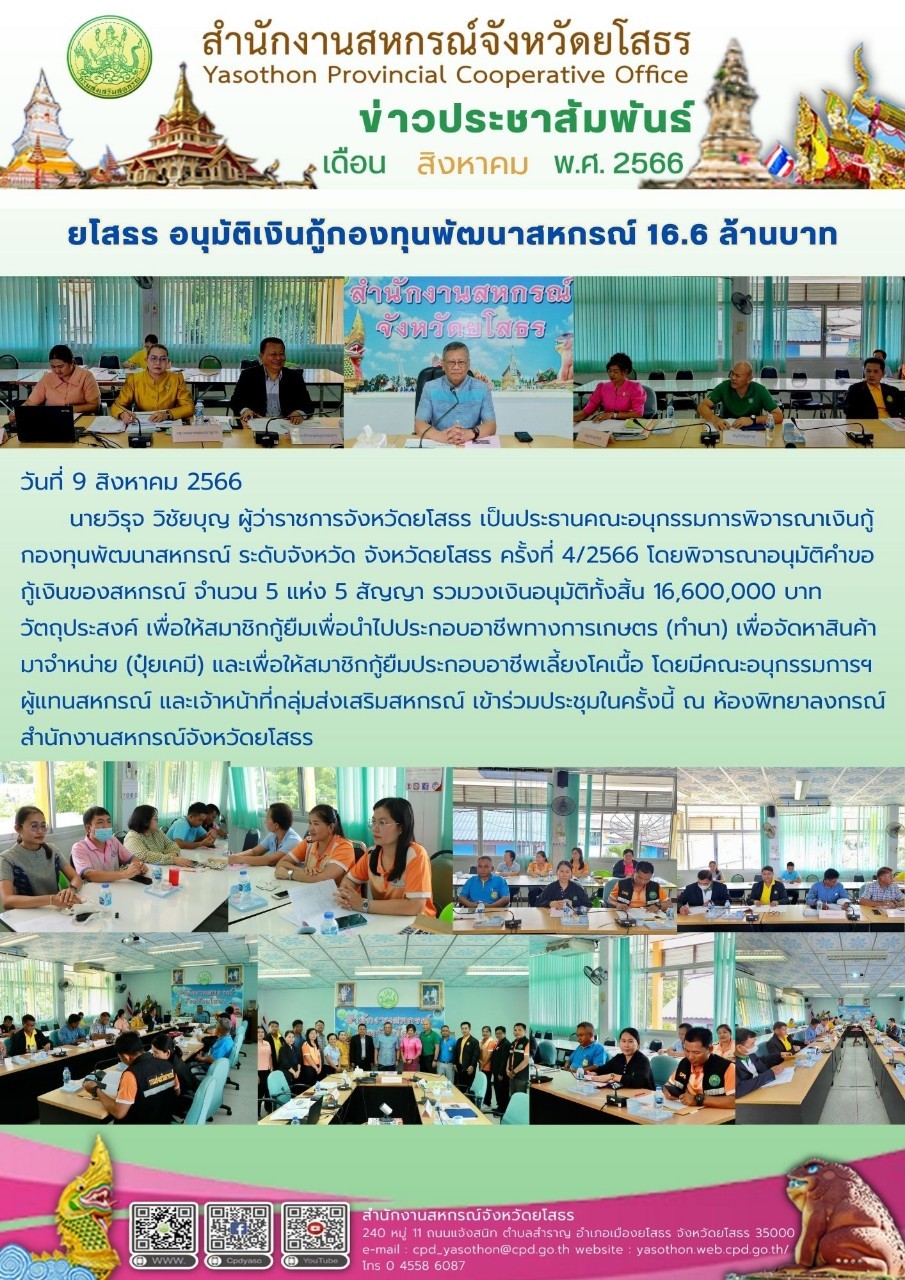 ผู้โพสต์ : [สำนักงานสหกรณ์จังหวัดยโสธร] ทั่วไป