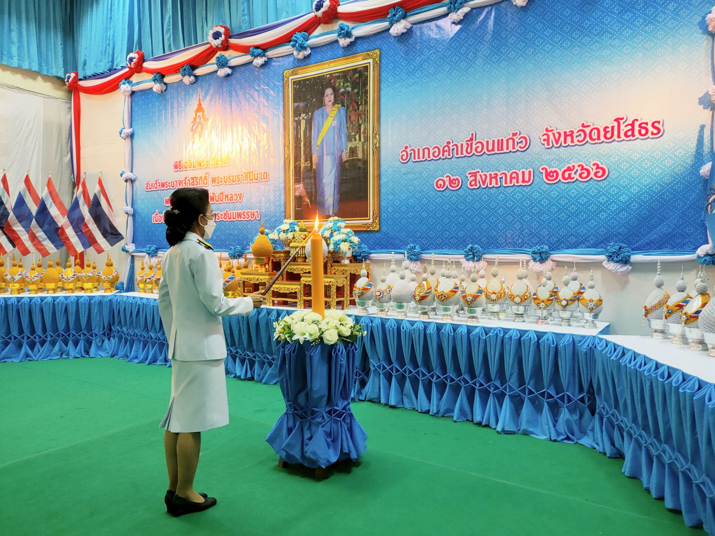 วันที่ 17 ส.ค. 2566 (14:59 น.)- วันที่ ๑๒ สิงหาคม ๒๕๖๖ เวลา ๑๙.๑๙ น. นางยุพิน ภัทรกุลพงศ์ นายอำเภอคำเขื่อนแก้ว เป็นประธานพิธีถวายเครื่องราชสักการะและวางพานพุ่ม และพิธีจุดเทียนถวายพระพรชัยมงคล ในกิจกรรมเฉลิมพระเกียรติสมเด็จพระนางเจ้าสิริกิติ์ พระบรมราชินีนาถ พระบรมราชชนนีพันปีหลวง เนื่องในโอกาสวันเฉลิมพระชนมพรรษา ๑๒ สิงหาคม ๒๕๖๖ โดยมี หัวหน้าส่วนราชการ/หน่วยงาน คณะกรรมการกิ่งกาชาดอำเภอคำเขื่อนแก้ว แม่บ้านมหาดไทย ผู้บริหารองค์กรปกครองส่วนท้องถิ่น ผู้บริหารสถานศึกษา ข้าราชการ กำนัน ลูกจ้างฯ ผู้ใหญ่บ้าน ฯลฯ ตลอดจนกลุ่ม/องค์กร และประชาชนในพื้นที่อำเภอคำเขื่อนแก้ว เข้าร่วมกิจกรรม ณ หอประชุม ๑๐๐ ปี อำเภอคำเขื่อนแก้ว จังหวัดยโสธร