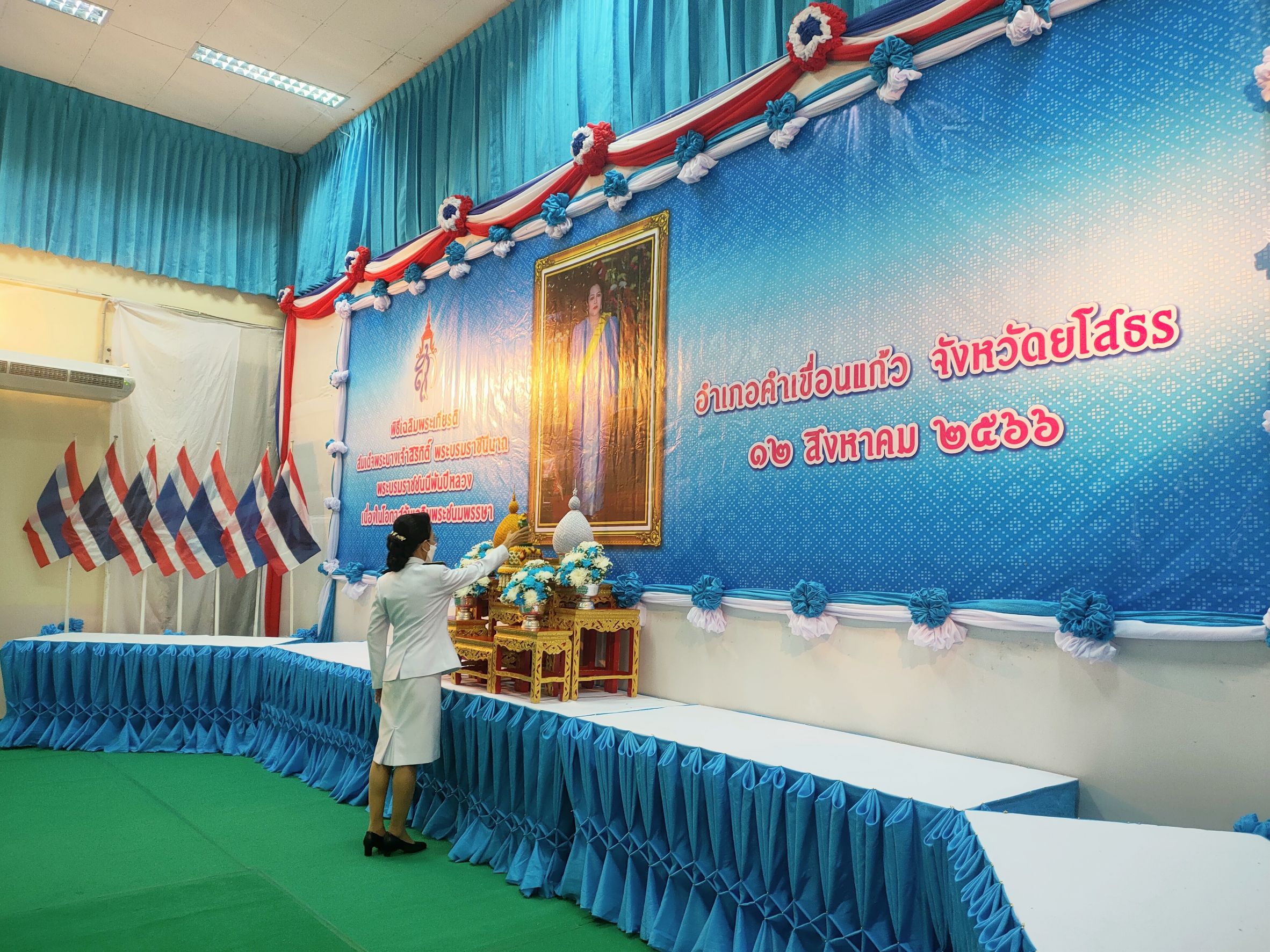 วันที่ ๑๒ สิงหาคม ๒๕๖๖ เวลา ๐๗.๓๐ น. นางยุพิน ภัทรกุลพงศ์ นายอำเภอคำเขื่อนแก้ว เป็นประธานพิธีทำบุญตักบาตรถวายพระราชกุศล ในกิจกรรมเฉลิมพระเกียรติสมเด็จพระนางเจ้าสิริกิติ์ พระบรมราชินีนาถ พระบรมราชชนนีพันปีหลวง เนื่องในโอกาสวันเฉลิมพระชนมพรรษา ๑๒ สิง