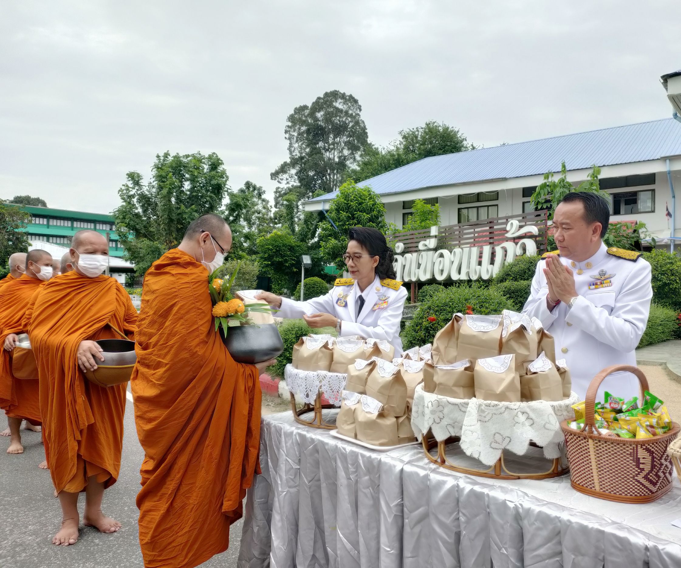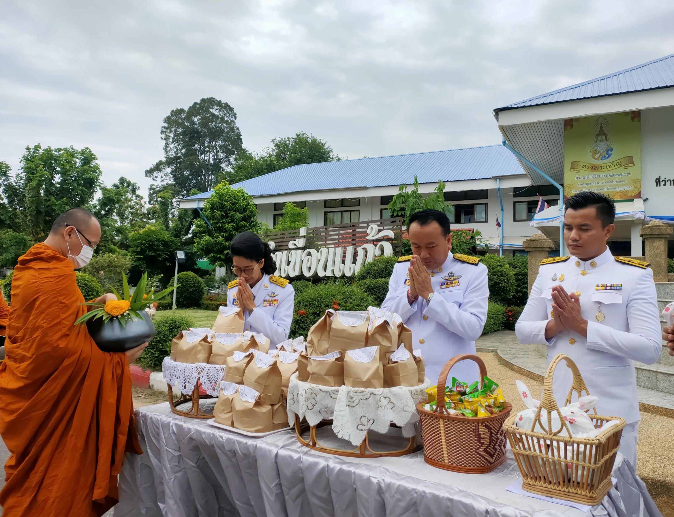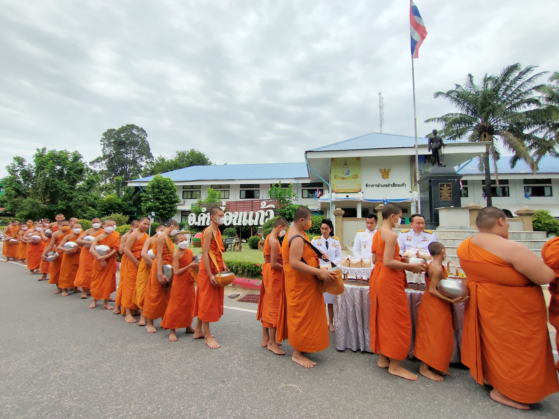 วันที่ 17 ส.ค. 2566 (15:37 น.)วันที่ ๑๒ สิงหาคม ๒๕๖๖ เวลา ๐๗.๓๐ น. นางยุพิน ภัทรกุลพงศ์ นายอำเภอคำเขื่อนแก้ว เป็นประธานพิธีทำบุญตักบาตรถวายพระราชกุศล ในกิจกรรมเฉลิมพระเกียรติสมเด็จพระนางเจ้าสิริกิติ์ พระบรมราชินีนาถ พระบรมราชชนนีพันปีหลวง เนื่องในโอกาสวันเฉลิมพระชนมพรรษา ๑๒ สิงหาคม ๒๕๖๖ โดยมี นายบุญแก้ว สมวงศ์ สมาชิกสภาผู้แทนราษฎรจังหวัดยโสธร เขต ๒ หัวหน้าส่วนราชการ หัวหน้าหน่วยงานรัฐวิสาหกิจ ผู้บริหารสถานศึกษา ผู้บริหารองค์กรปกครองส่วนท้องถิ่น สมาชิกสภาองค์การบริหารส่วนจังหวัดยโสธร ข้าราชการ กำนัน ผู้ใหญ่บ้าน ฯลฯ และพสกนิกรชาวอำเภอคำเขื่อนแก้ว เข้าร่วมพิธีดังกล่าว ณ หอประชุม ๑๐๐ ปี อำเภอคำเขื่อนแก้ว และบริเวณหน้าที่ว่าการอำเภอคำเขื่อนแก้ว จังหวัดยโสธร