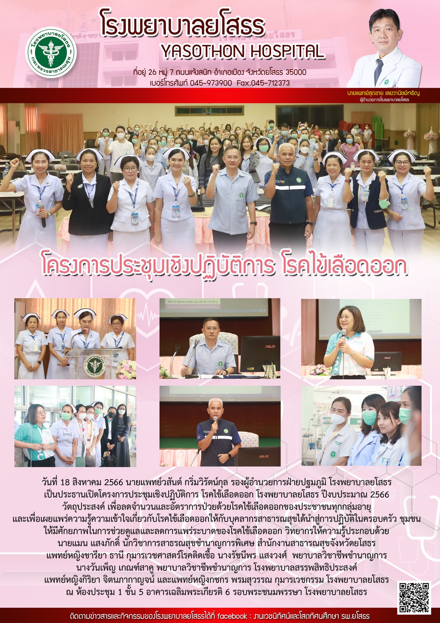 รพ.ยโสธร จัดโครงการประชุมเชิงปฏิบัติการ โรคไข้เลือดออก โรงพยาบาลยโสธร ปีงบประมาณ 2566