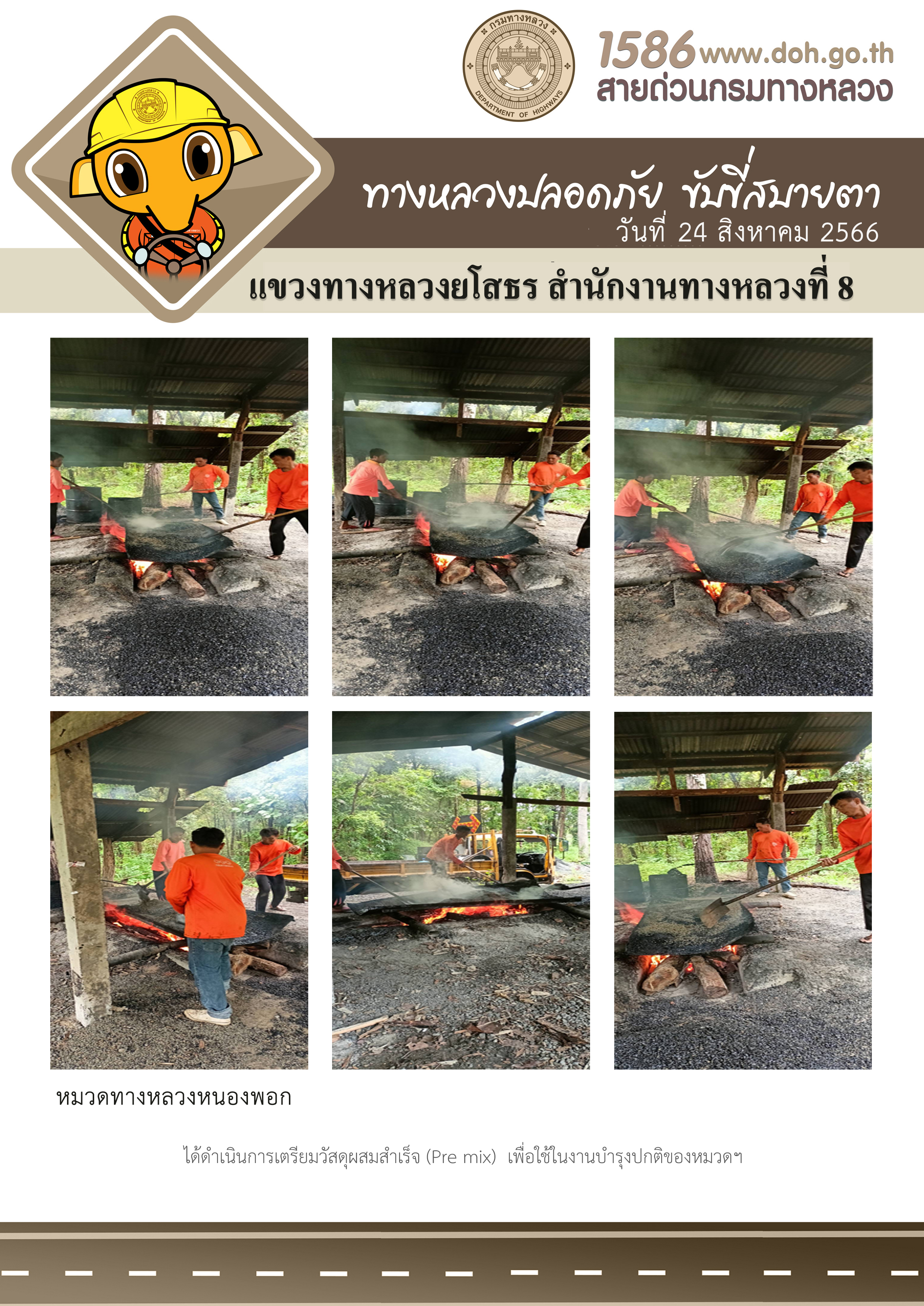 วันที่ 24 สิงหาคม 2566 หมวดทางหลวงหนองพอก ได้ดำเนินการเตรียมวัสดุผสมสำเร็จ (Pre mix) เพื่อใช้ในงานบำรุงปกติของหมวดฯ