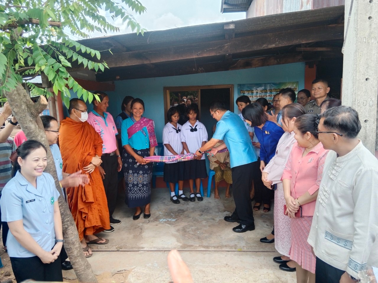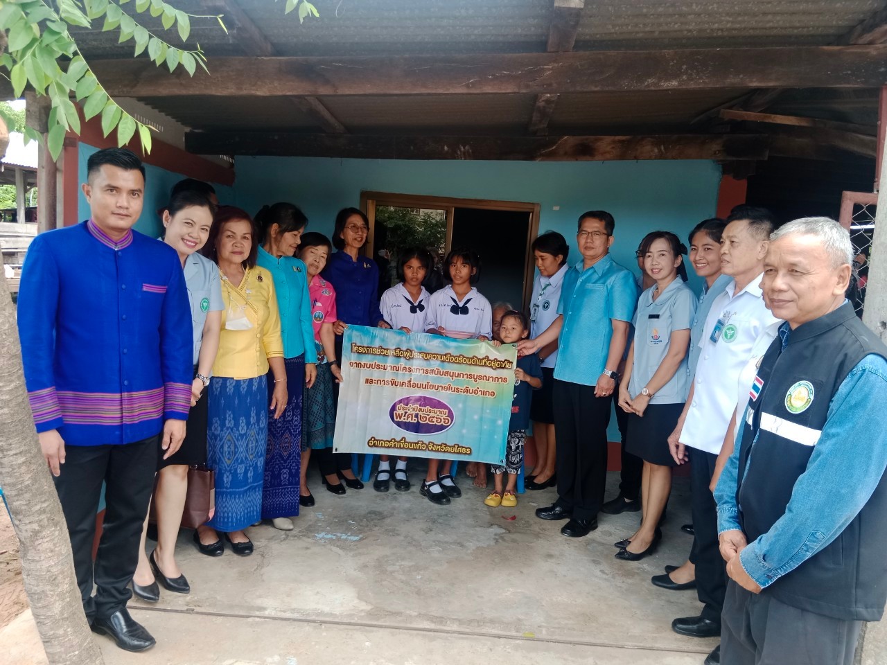 ในการนี้ ได้ส่งมอบบ้านจากการซ่อม/สร้าง เพื่อแก้ไขปัญหาให้กับผู้ที่ได้รับความเดือดร้อนด้านที่อยู่อาศัย ของที่ทำการปกครองอำเภอคำเขื่อนแก้ว แก่ครอบครัวนางมะลิ สีนวน บ้านบกน้อย หมู่ที่ ๗ ตำบลดงแคนใหญ่ อำเภอคำเขื่อนแก้ว จังหวัดยโสธร ในโอกาสนี้ นายสุวัฒน์ เข็มเพชร รองผู้ว่าราชการจังหวัดยโสธร และคณะได้ให้กำลังใจมอบทุนการศึกษา จำนวน ๒,๕๐๐ บาท ให้กับ ด.ญ.ณัฐลฎา สีนวล และด.ญ.ณัฐชญา สีนวล