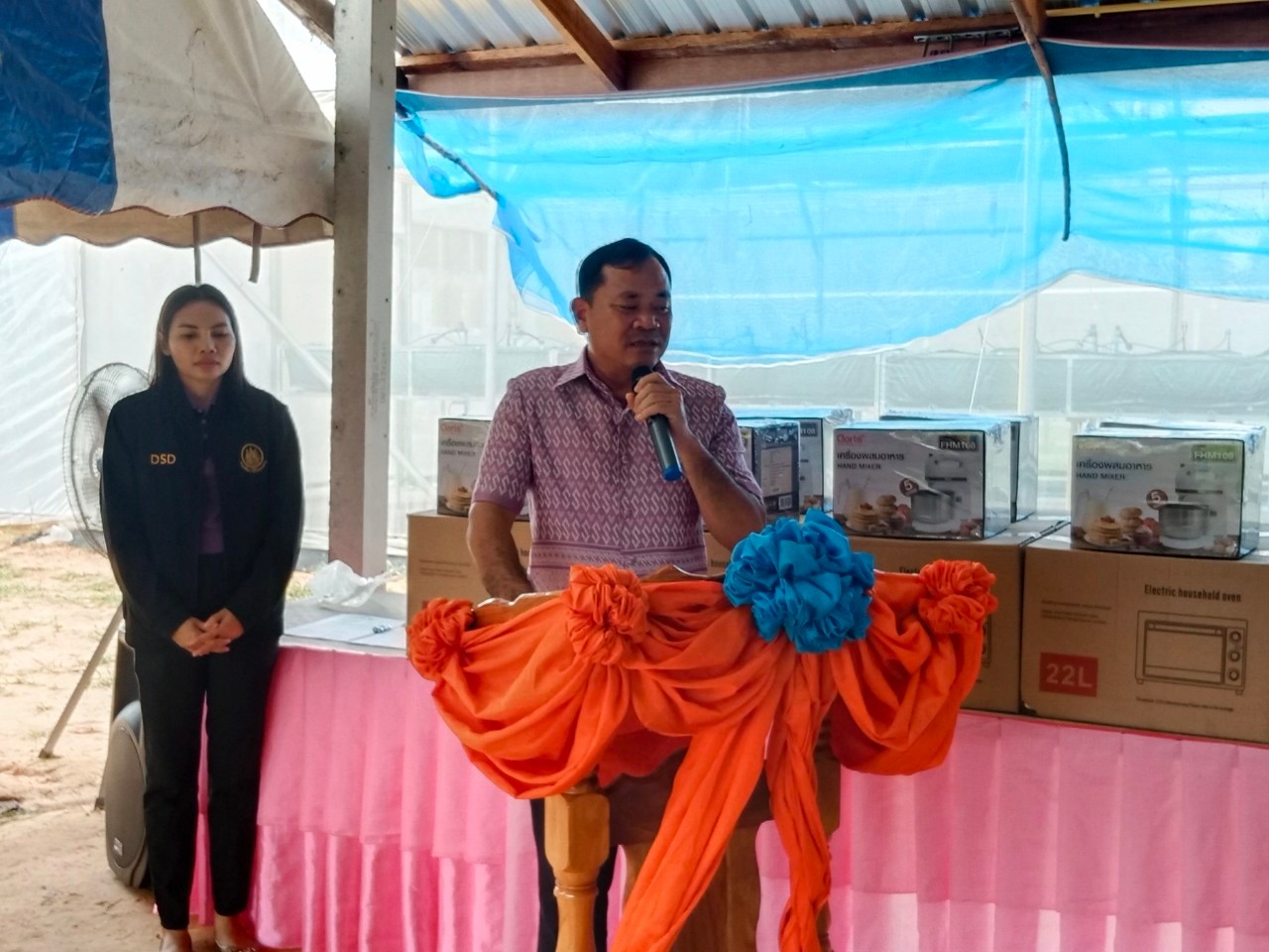 วันที่ 25 ส.ค. 2566 (14:45 น.)วันที่ ๒๔ สิงหาคม ๒๕๖๖ เวลา ๑๐.๓๐ น. นางยุพิน ภัทรกุลพงศ์ นายอำเภอคำเขื่อนแก้ว เป็นประธานในพิธีมอบชุดเครื่องมือทำมาหากินให้กับผู้ผ่านการฝึกอบรม ตามโครงการพัฒนาทักษะเฉพาะของแรงงานอิสระยุค ๔.๐ (Gig Worker) หลักสูตรการแปรรูปและถนอมอาหารประเภทผลไม้ จำนวน ๒๐ คน ณ ศูนย์เรียนรู้กลุ่มเกษตรอินทรีย์มั่งมีวิถีดงแคนใหญ่ หมู่ที่ ๑๓ ตำบลดงแคนใหญ่ อำเภอคำเขื่อนแก้ว จังหวัดยโสธร