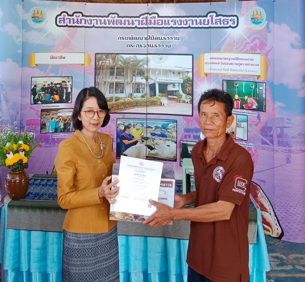 พิธีมอบชุดเครื่องมือทำมาหากินให้กับผู้ผ่านการฝึกอบรม ตามโครงการพัฒนาทักษะเฉพาะของแรงงานอิสระยุค ๔.๐