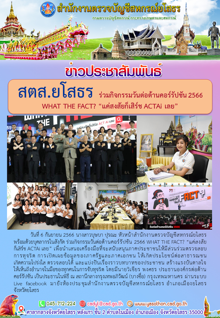 สตส.ยโสธร ร่วมกิจกรรมวันต่อต้านคอร์รัปชัน 2566 WHAT THE FACT? “แค่สงสัยก็เสิร์ช ACTAi เลย”
