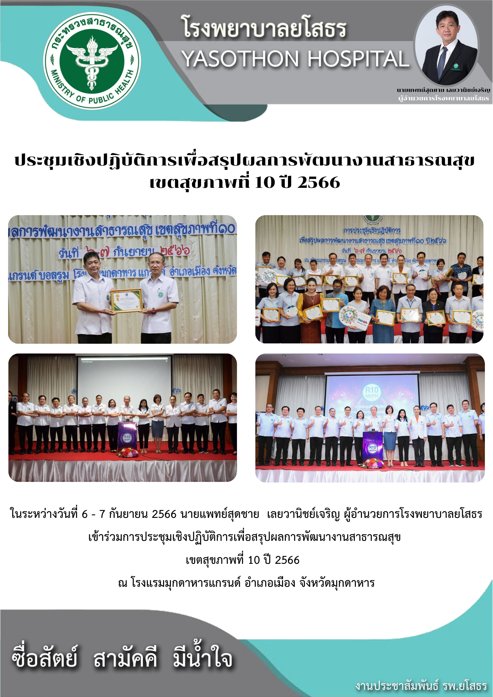 รพ.ยโสธร เข้าร่วมการประชุมเชิงปฏิบัติการเพื่อสรุปผลการพัฒนางานสาธารณสุขเขตสุขภาพที่ 10 ปี 2566