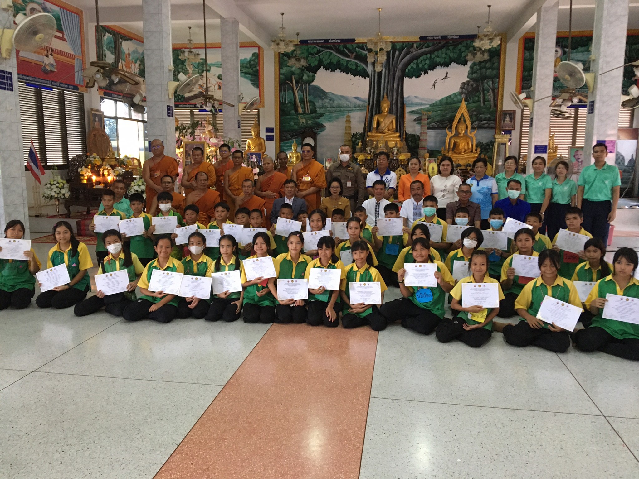 หัวหน้าคณะพระวิทยากร พระครูวาปีสิริธรรม รองเจ้าคณะอำเภอจตุรพักตรพิมาน คณะสงฆ์อำเภอคำเขื่อนแก้ว หัวหน้าส่วนราชการ/ผู้แทน ปลัดอำเภอ นายกอบต.ลุมพุก นายกอบต.โพนทัน รองนายกอบต.นาคำ ผู้ใหญ่บ้าน ผู้ช่วยผู้ใหญ่บ้าน ในพื้นที่ คณะผู้บริหาร คุณครู และนักเรียนโรงเรียนอนุบาลลุมพุก (วันครู ๒๕๐๓) ร่วมพิธีรับมอบเกียรติบัตรและพิธีปิดโครงการอบรม ในครั้งนี้