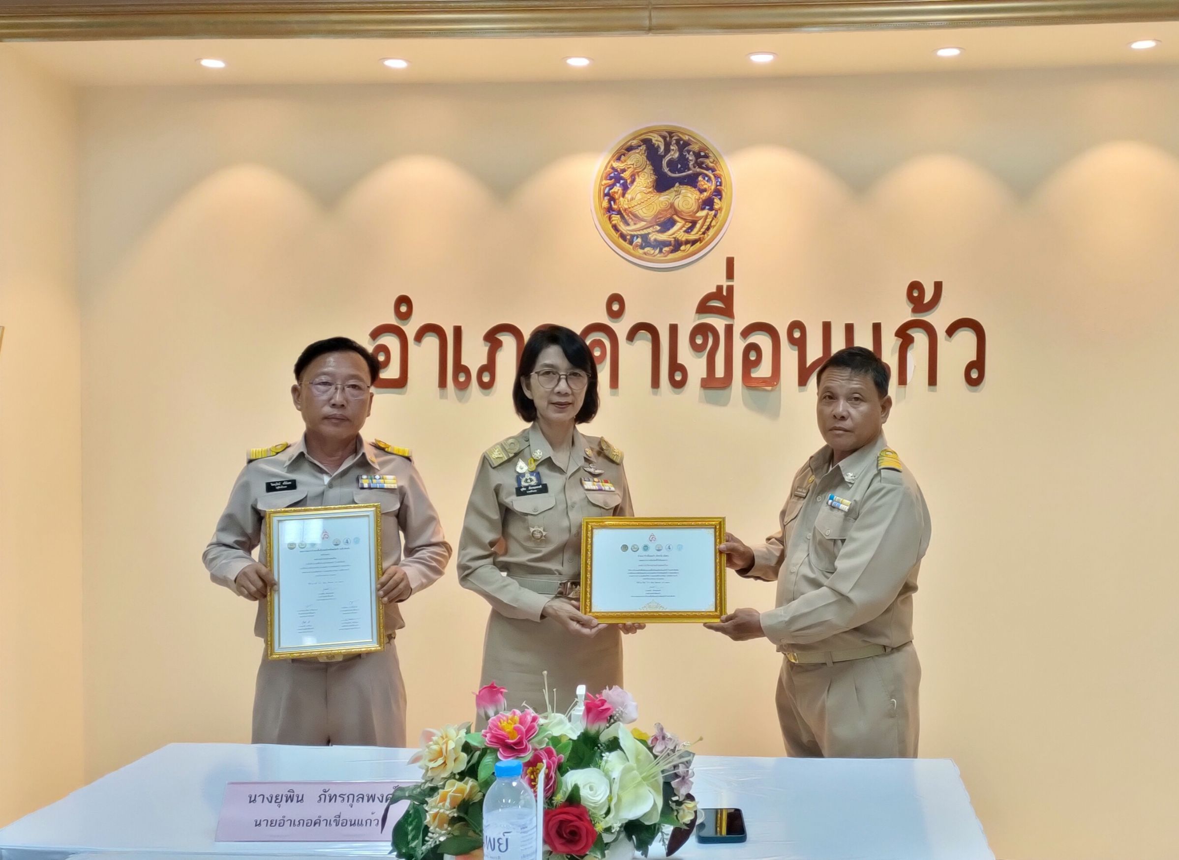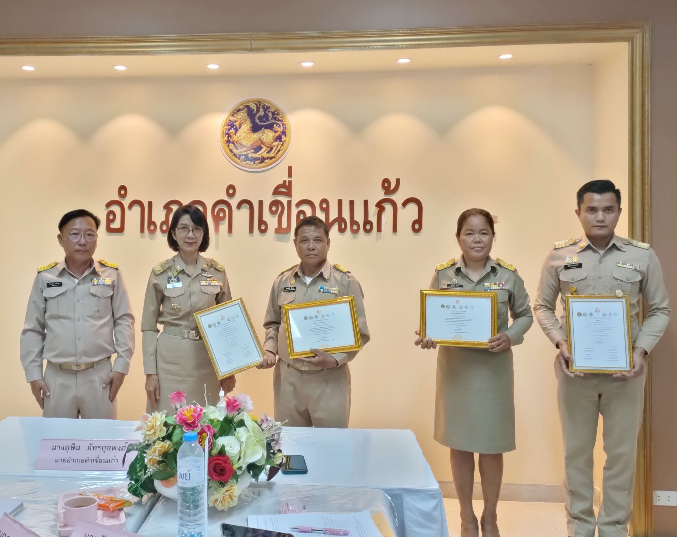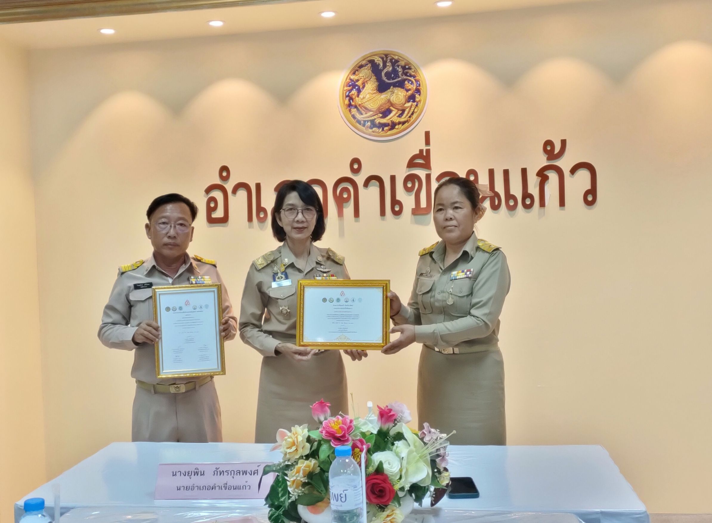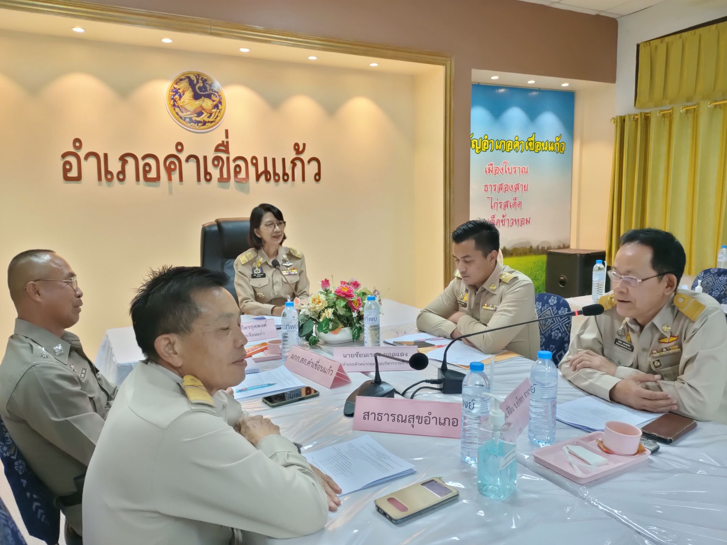 วันที่ 8 ก.ย. 2566 (16:12 น.)วันที่ ๔ กันยายน ๒๕๖๖ เวลา ๑๓.๓๐ น. นางยุพิน ภัทรกุลพงศ์ นายอำเภอคำเขื่อนแก้ว เป็นประธานการประชุมหัวหน้าส่วนราชการ หัวหน้าหน่วยงานรัฐวิสาหกิจ ผู้บริหารสถานศึกษา ผู้บริหารองค์กรปกครองส่วนท้องถิ่น และกำนันอำเภอคำเขื่อนแก้ว ประจำเดือนกันยายน ๒๕๖๖ ณ ห้องประชุมที่ว่าการอำเภอคำเขื่อนแก้ว (ชั้น ๒) ทั้งนี้พิธีก่อนการประชุมได้มอบเกียรติบัตรการรับรองเป็นพื้นที่ผ่านเกณฑ์พื้นที่ปลอดโรคพิษสุนัขบ้า ในระดับท้องถิ่น ให้กับ องค์การบริหารส่วนตำบลนาแก และ องค์การบริหารส่วนตำบลสงเปือย