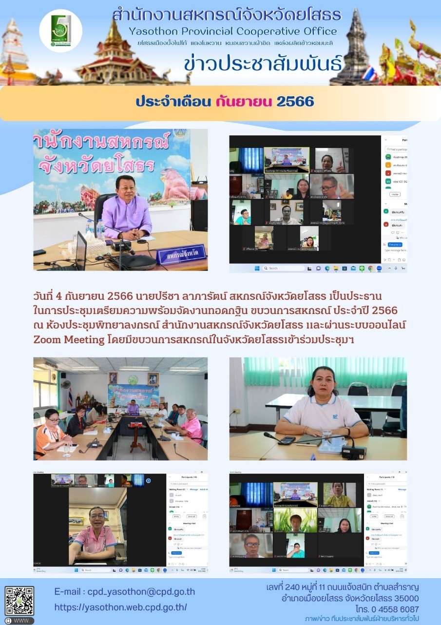 นายปรีชา ลาภารัตน์ สหกรณ์จังหวัดยโสธร เป็นประธานในการประชุมเตรียมความพร้อมจัดงานทอดกฐิน ขบวนการสหกรณ์ ประจำปี 2566 ณ ห้องประชุมพิทยาลงกรณ์ สำนักงานสหกรณ์จังหวัดยโสธร