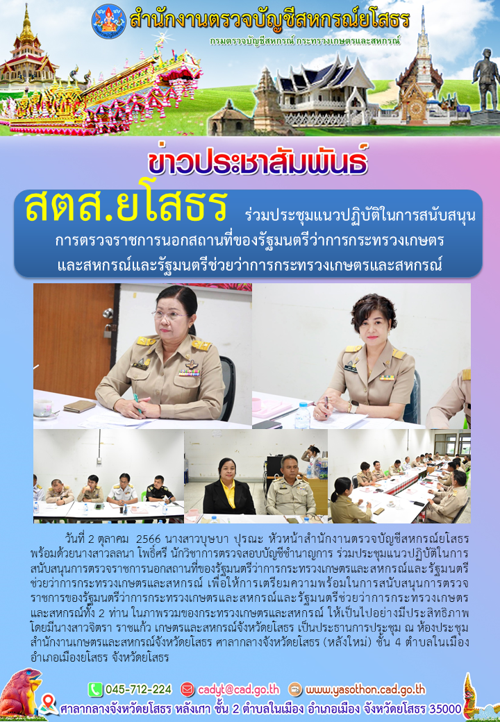 สตส.ยโสธร ร่วมประชุมแนวปฏิบัติในการสนับสนุนการตรวจราชการนอกสถานที่ของรัฐมนตรีว่าการกระทรวงเกษตรและสหกรณ์และรัฐมนตรีช่วยว่าการกระทรวงเกษตรและสหกรณ์