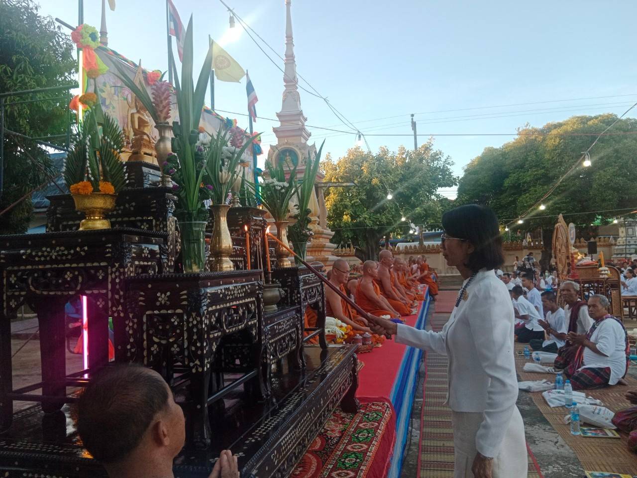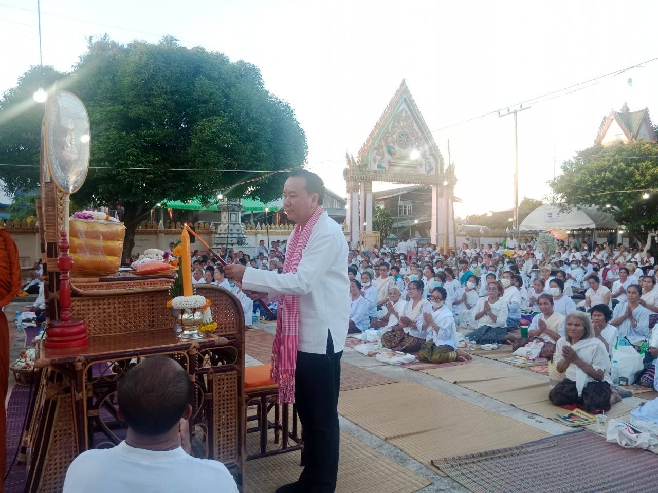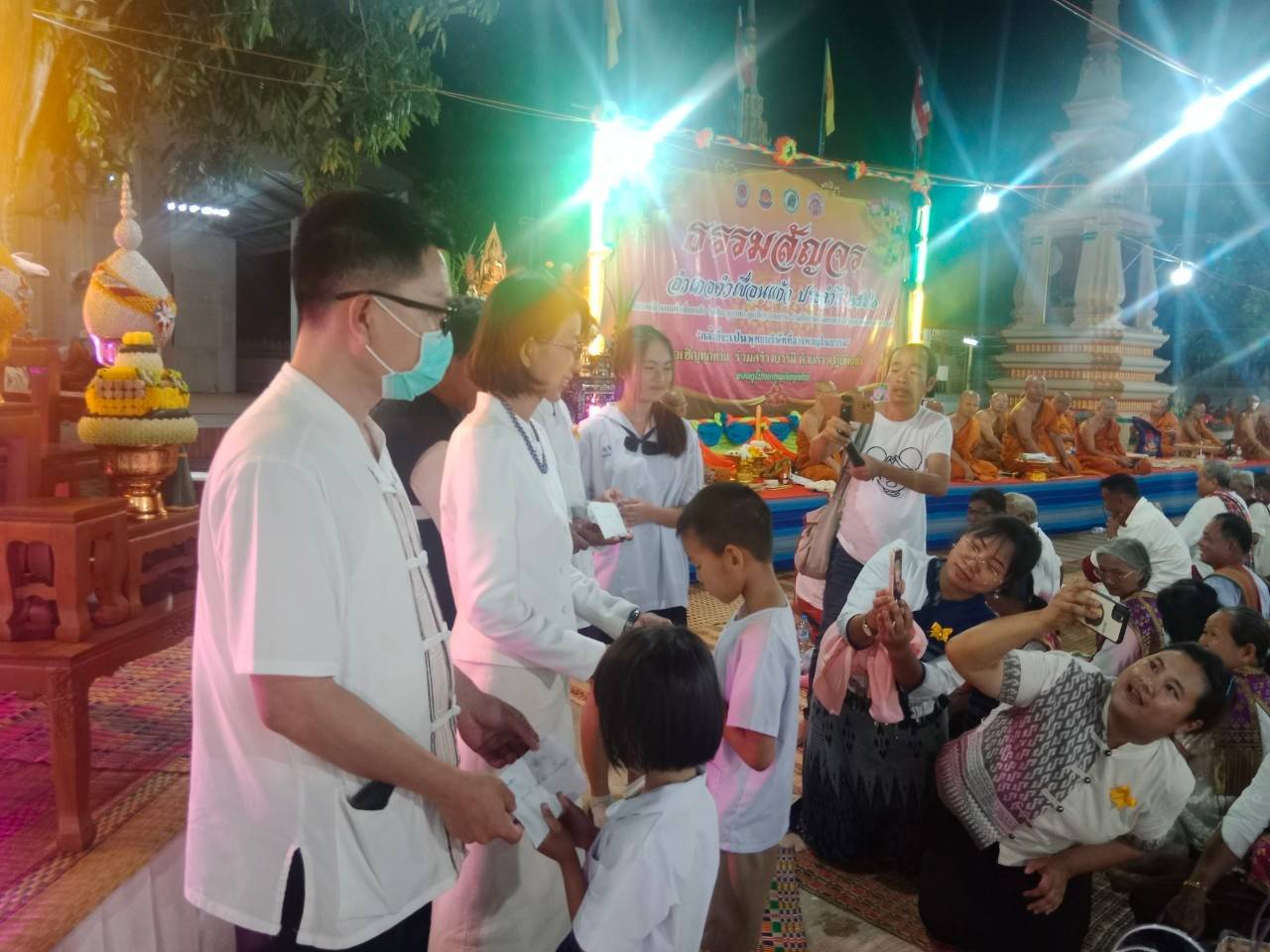 ในการนี้ นายอำเภอคำเขื่อนแก้ว ปลัดอำเภอ และผู้ใหญ่บ้าน ได้เป็นตัวแทนคณะสงฆ์อำเภอคำเขื่อนแก้ว มอบทุนการศึกษา จำนวน ๓ ทุน ๆ ละ ๑,๐๐๐ บาท รวม ๓,๐๐๐ บาท แก่เด็กนักเรียนในพื้นที่ด้วย ทั้งนี้ ที่ทำการปกครองอำเภอคำเขื่อนแก้ว และนางธนมน วัฒนเรืองโกวิทย์ ประธานสภาอุตสาหกรรมจังหวัดยโสธร ได้ร่วมถวายน้ำปานะ (น้ำอ้อย) แด่พระภิกษุ สามเณรด้วย