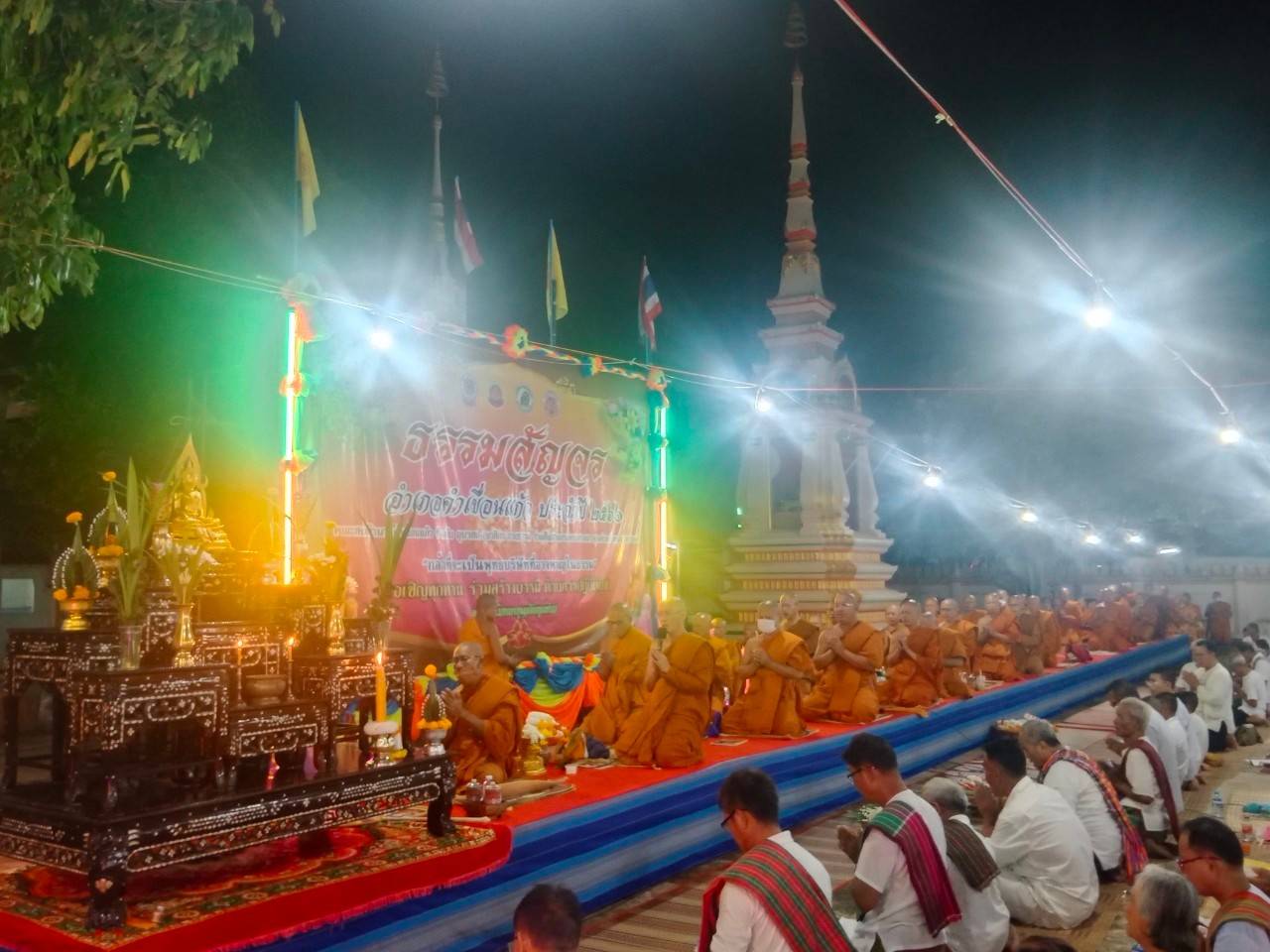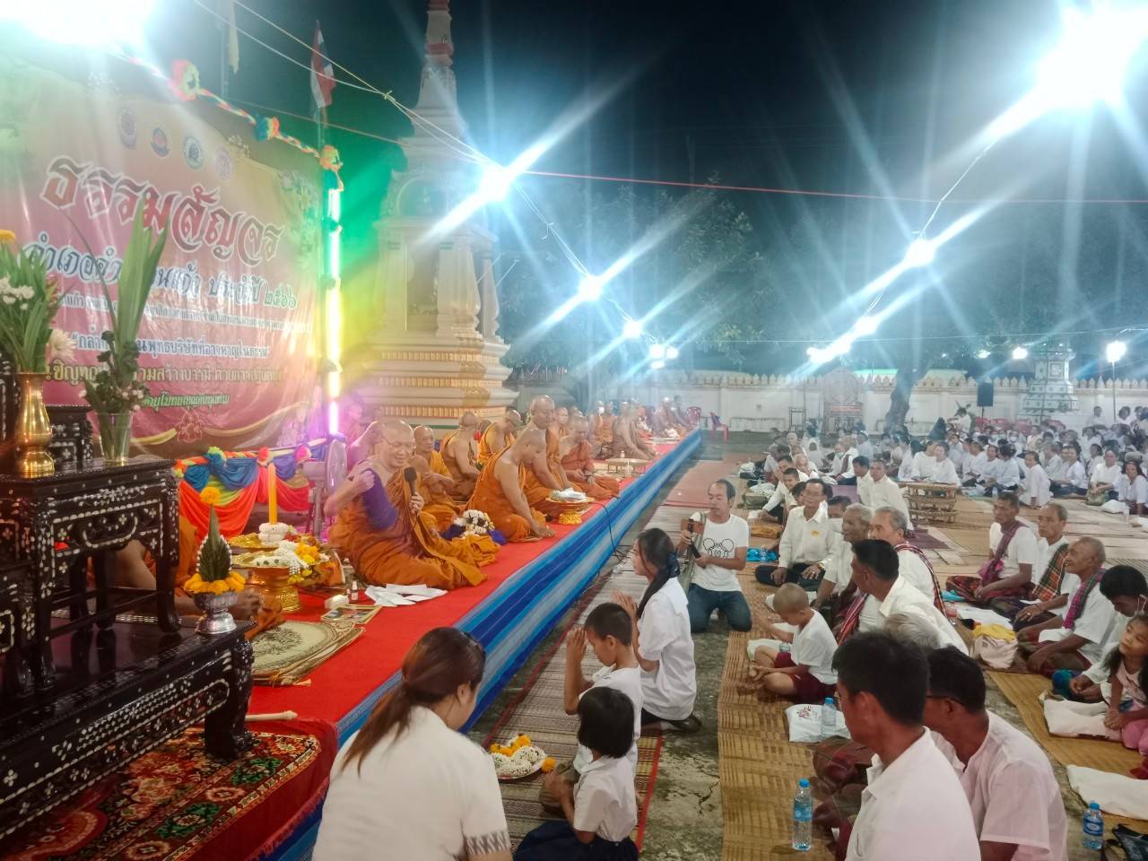โดยมี พระครูเมธีธรรมบัณฑิตเจ้าคณะอำเภอคำเขื่อนแก้ว เป็นประธานสงฆ์ พระครูวาปีธรรมวิโรจน์ เจ้าอาวาสวัดหนองเลิง เป็นองค์แสดงธรรม มีนายบุญแก้ว สมวงศ์ สมาชิกสภาผู้แทนราษฎรจังหวัดยโสธร เขต ๒ นายทศพล ปกป้องสมาชิกสภาองค์การบริหารส่วนจังหวัดยโสธร นายกองค์การบริหารส่วนตำบลย่อ ปลัดอำเภอ กำนัน ผู้ใหญ่บ้าน ฯลฯ ตำบลย่อ พระสงฆ์ สามเณร ร่วมกิจกรรม จำนวน ๑๑๐ รูป พุทธศาสนิกชน จำนวน ๑,๐๓๓ คน /๗๖ หมู่บ้าน โรงทาน จำนวน ๖๘ โรงทาน และได้รับเงินบริจาครวมทั้งสิ้น ๔๔,๐๘๒ บาท