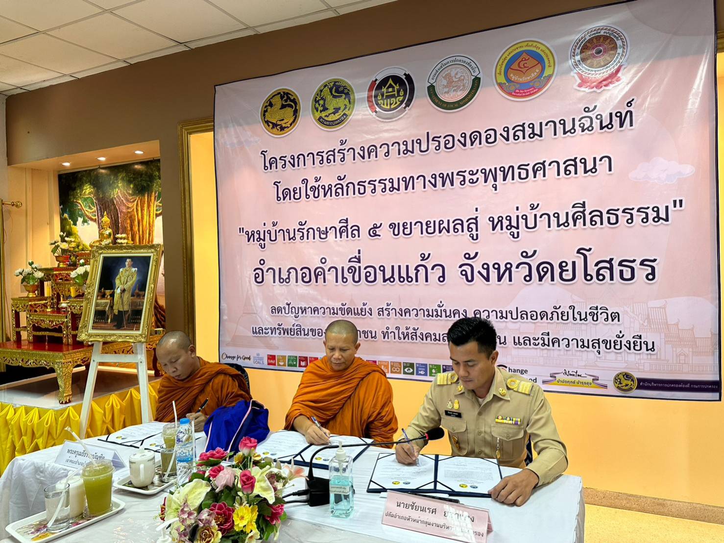 การจัดกิจกรรม Kick - off ลงนามในบันทึกข้อตกลง (MOU) ตามโครงการสร้างความปรองดองสมานฉันท์ โดยใช้หลักธรรมทางพระพุทธศาสนา “หมู่บ้านรักษาศีล 5 ขยายผลสู่ หมู่บ้านศีลธรรม”