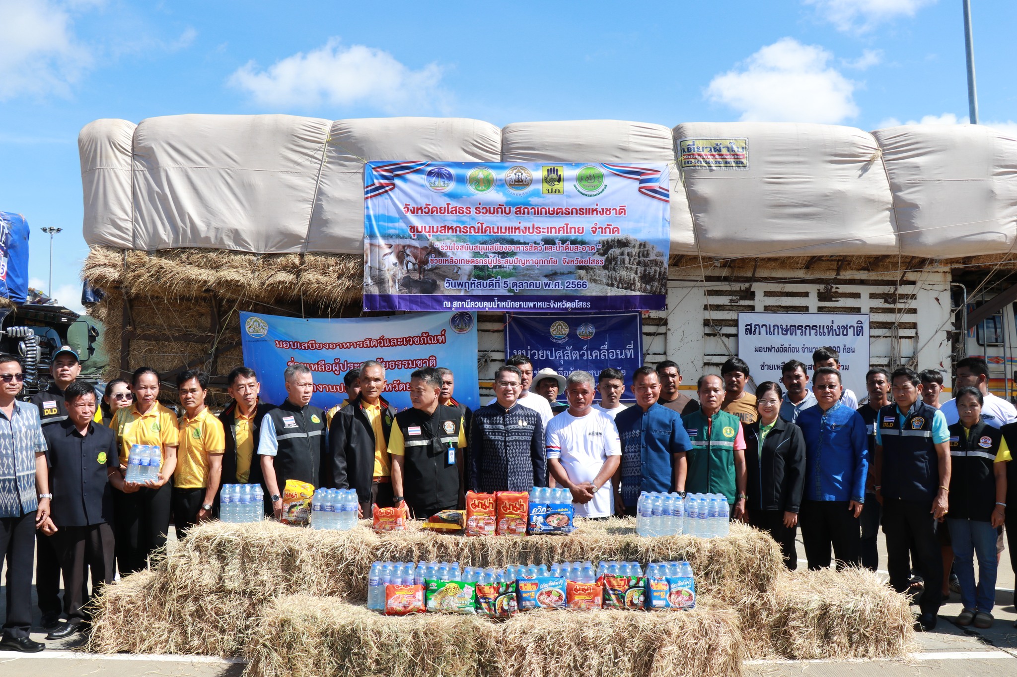 เนื่องจากเกิดสถานการณ์ฝนตกหนักติดต่อกันเป็นเวลานานหลายวัน ได้รับอิทธิพลจากร่องมรสุมที่พัดผ่านเข้าสู่หย่อมความกดอากาศต่ำบริเวณอาวตังเกี๋ย ทำให้มีฝนฟ้าคะนองและมีฝนตกหนักถึงหนักมากมีน้ำสะสม เกิดน้ำท่วมขังและเอ่อล้นตลิ่งเข้าท่วมพื้นที่การเกษตรบริเวณพื้นที่ลุ่มแม่น้ำชีและลุ่มลำเซบายก่อให้เกิดผลกระทบต่อพื้นที่การเกษตรเป็นวงกว้างในพื้นที่จังหวัดยโสธร จากสภาวะดังกล่าวได้รับการสนับสนุนฟางอัดก้อน จากชุมนุมสหกรณ์โคนมแห่งประเทศไทย จำกัด จำนวน 3,000 ก้อน (60,000 กิโลกรัม) และน้ำดื่มสะอาด จำนวน 5,000 ขวด เพื่อช่วยเหลือบรรเทาความเดือดร้อนแก่เกษตรกรผู้เลี้ยงโค กระบือ ในพื้นที่จังหวัดยโสธร ที่ได้รับผลกระทบจากสภาวะน้ำท่วมขัง โดยมีนายสุวัฒน์ เข็มเพชร รองผู้ว่าราชการจังหวัดยโสธร เป็นประธานในพิธี ฯ ณ สำนักงานควบคุมน้ำหนักยานพาหนะจังหวัดยโสธร ตำบลเดิด อำเภอเมืองยโสธร จังหวัดยโสธร
