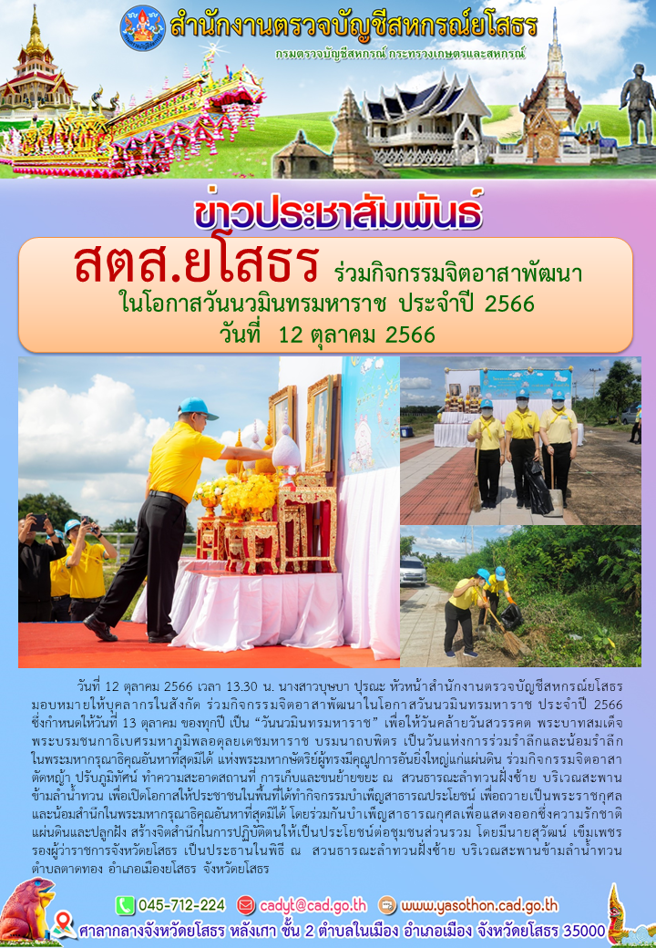 สตส.ยโสธร ร่วมกิจกรรมจิตอาสาพัฒนา ในโอกาสวันนวมินทรมหาราช ประจำปี 2566 วันที่ 12 ตุลาคม 2566