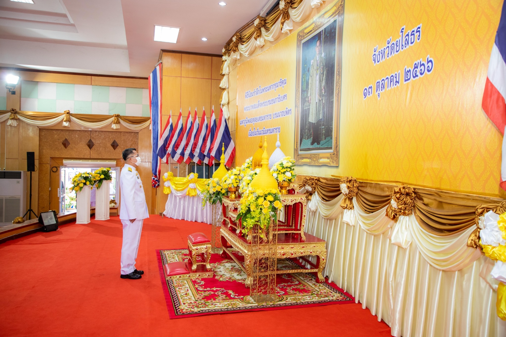 วันที่ 13 ตุลาคม 2566 นายสุวัฒน์ เข็มเพชร รองผู้ว่าราชการจังหวัดยโสธร พร้อมด้วยนายไกร เอี่ยมจุฬา รองผู้ว่าราชการจังหวัดยโสธร หัวหน้าส่วนราชการ และประชาชน จัดกิจกรรมเนื่องในวันนวมินทรมหาราช ประจำปี 2566 ประกอบด้วย พิธีทำบุญตักบาตรถวายพระราชกุศล พิธีถวายพวงมาลา ณ หอประชุมจังหวัดยโสธร ศาลากลางจังหวัดยโสธร ต.ในเมือง อ.เมือง จ.ยโสธร ในการนี้ นางรัดดา กลางบุญเรือง สถิติจังหวัดยโสธร พร้อมด้วยข้าราชการ พนักงานสำนักงานสถิติฯ ร่วมกิจกรรมดังกล่าวฯ