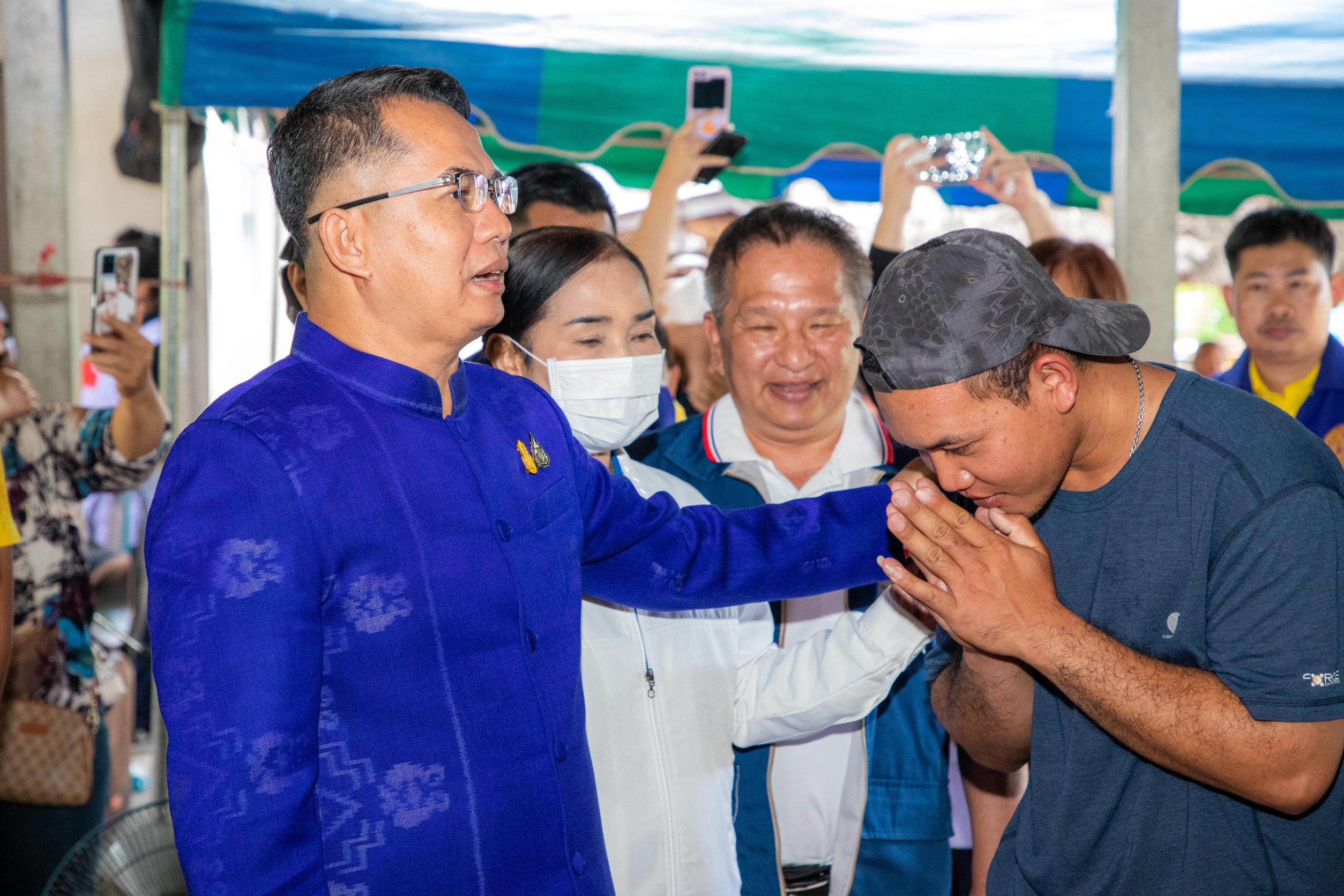 วันที่ 16 ต.ค. 2566 (10:32 น.)วันที่ 13 กันยายน 2566 เวลา 13.45 น. นายสุวัฒน์ เข็มเพชร รองผู้ว่าราชการจังหวัดยโสธร รักษาราชการแทนผู้ว่าราชการจังหวัดยโสธร พร้อมด้วย นางวิชชุฎา เข็มเพชร รักษาการนายกเหล่ากาชาดจังหวัดยโสธร นายบรรลือ สัมฤทธิ์จินตนา ปลัดจังหวัดยโสธร หัวหน้าสำนักงานจังหวัดยโสธร หัวหน้าส่วนราชการ คณะกรรมการเหล่ากาชาดจังหวัดยโสธร ร่วมพิธีบายศรีสู่ขวัญ ผูกข้อต่อแขน เพื่อความเป็นสิริมงคลให้แก่ นายสุพิพัฒน์ กงแก้ว แรงงานชาวตำบลสงเปือย อำเภอคำเขื่อนแก้ว จังหวัดยโสธร ที่เดินทางกลับมาจากอิสราเอล พร้อมนี้ ได้มอบเงินและสิ่งของให้กำลังใจแก่นายสุพิพัฒน์และครอบครัวด้วย