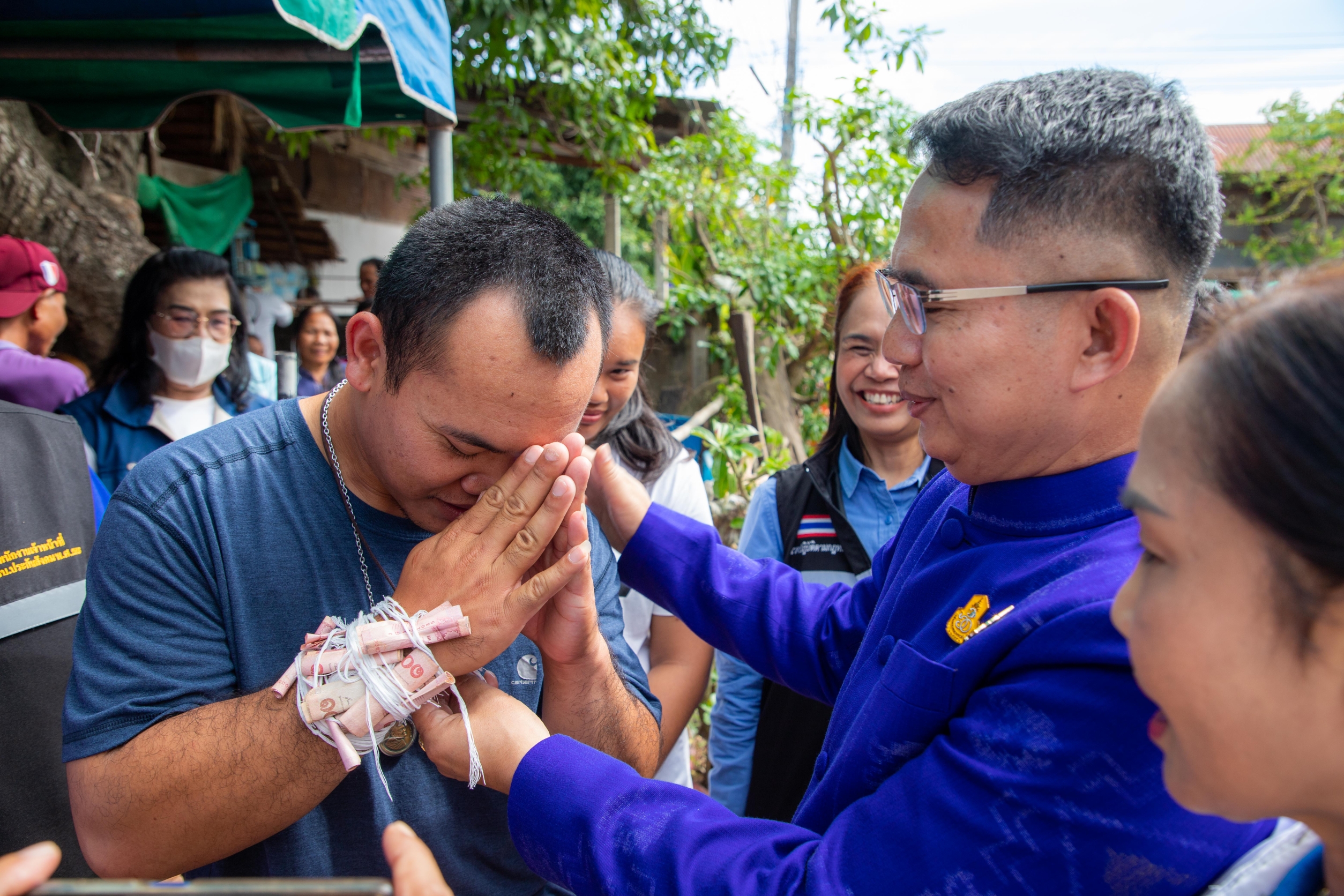 ร่วมพิธีบายศรีสู่ขวัญ ผูกข้อต่อแขน เพื่อความเป็นสิริมงคลให้แก่ นายสุพิพัฒน์ กงแก้ว แรงงานชาวตำบลสงเปือย อำเภอคำเขื่อนแก้ว จังหวัดยโสธร ที่เดินทางกลับมาจากอิสราเอล