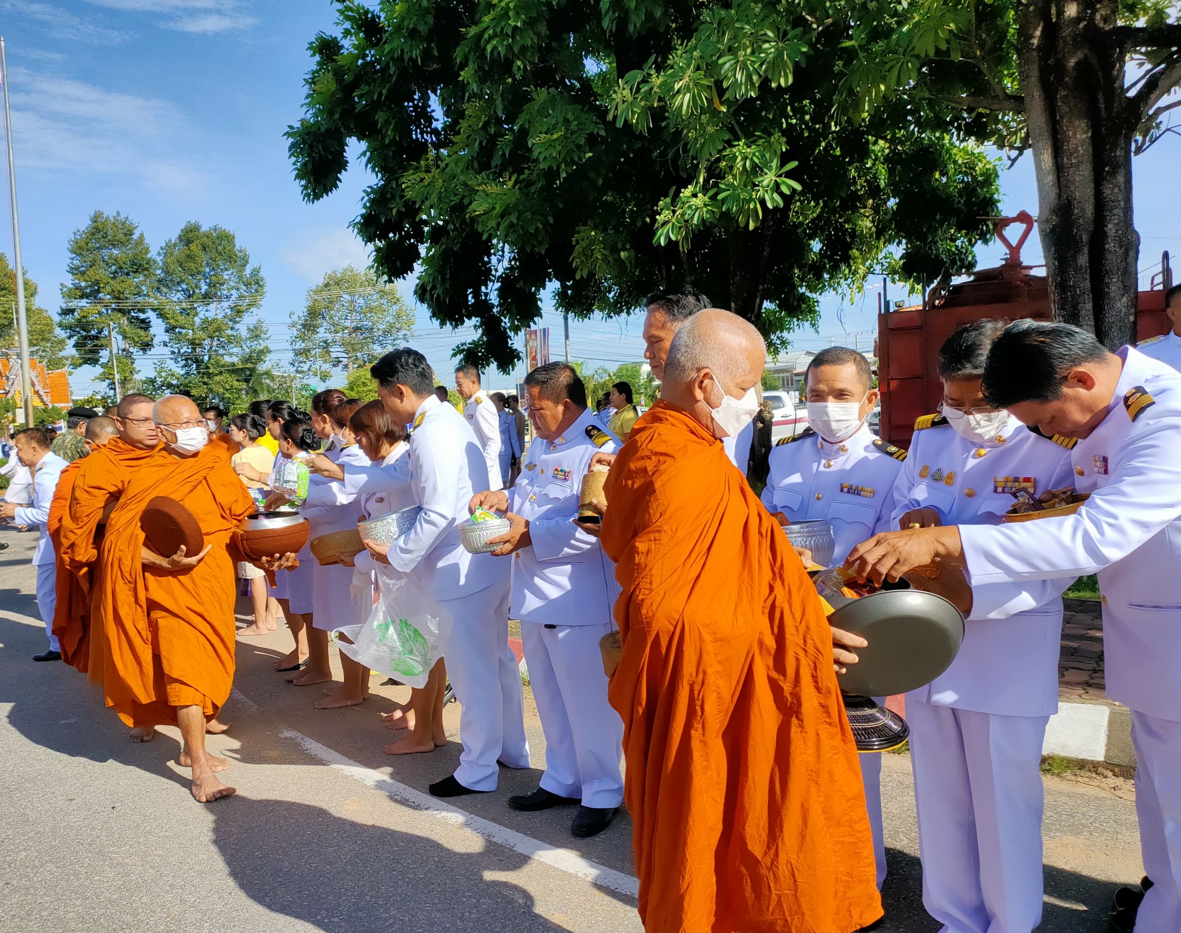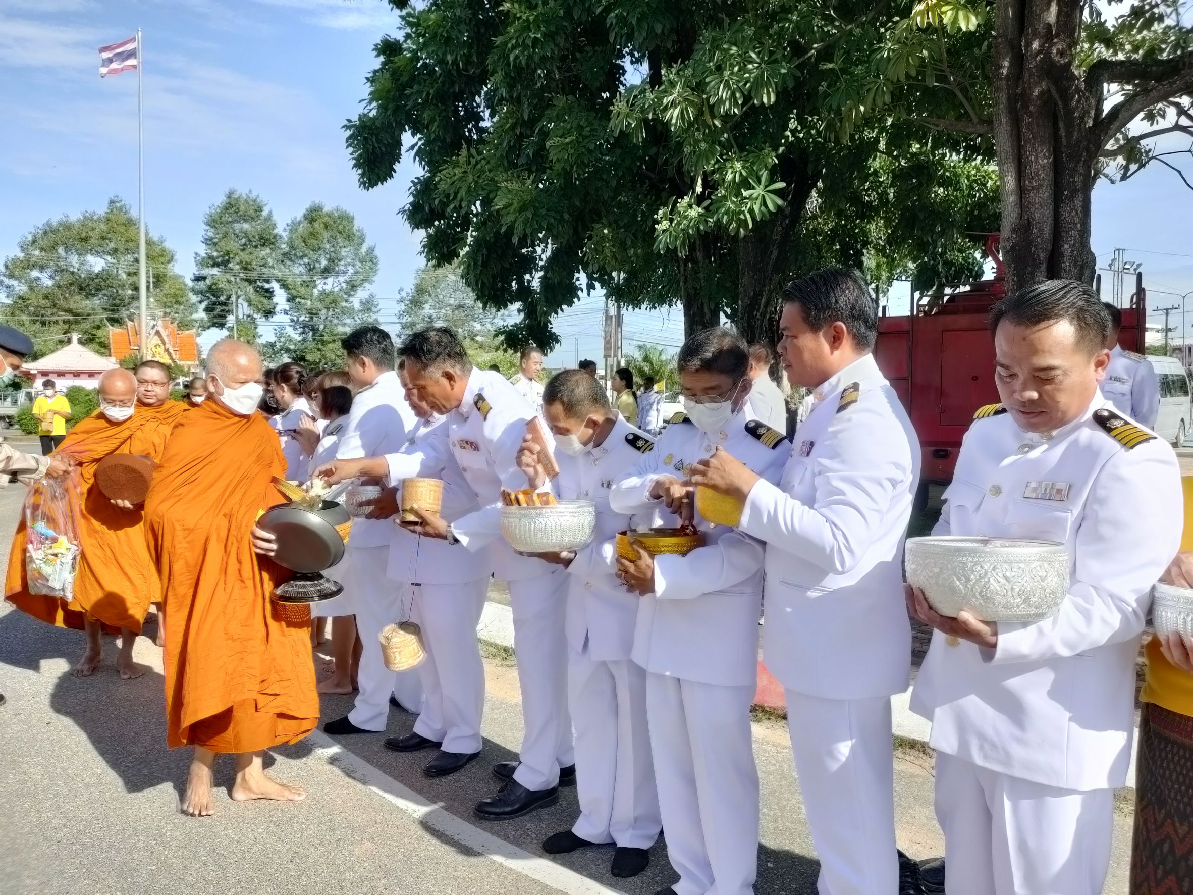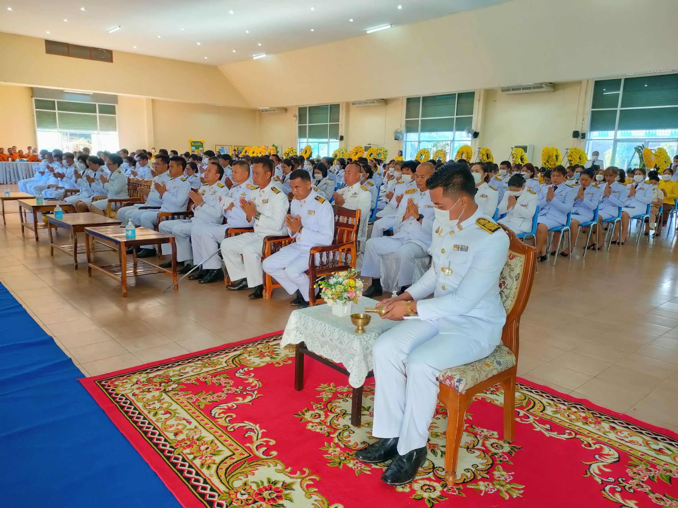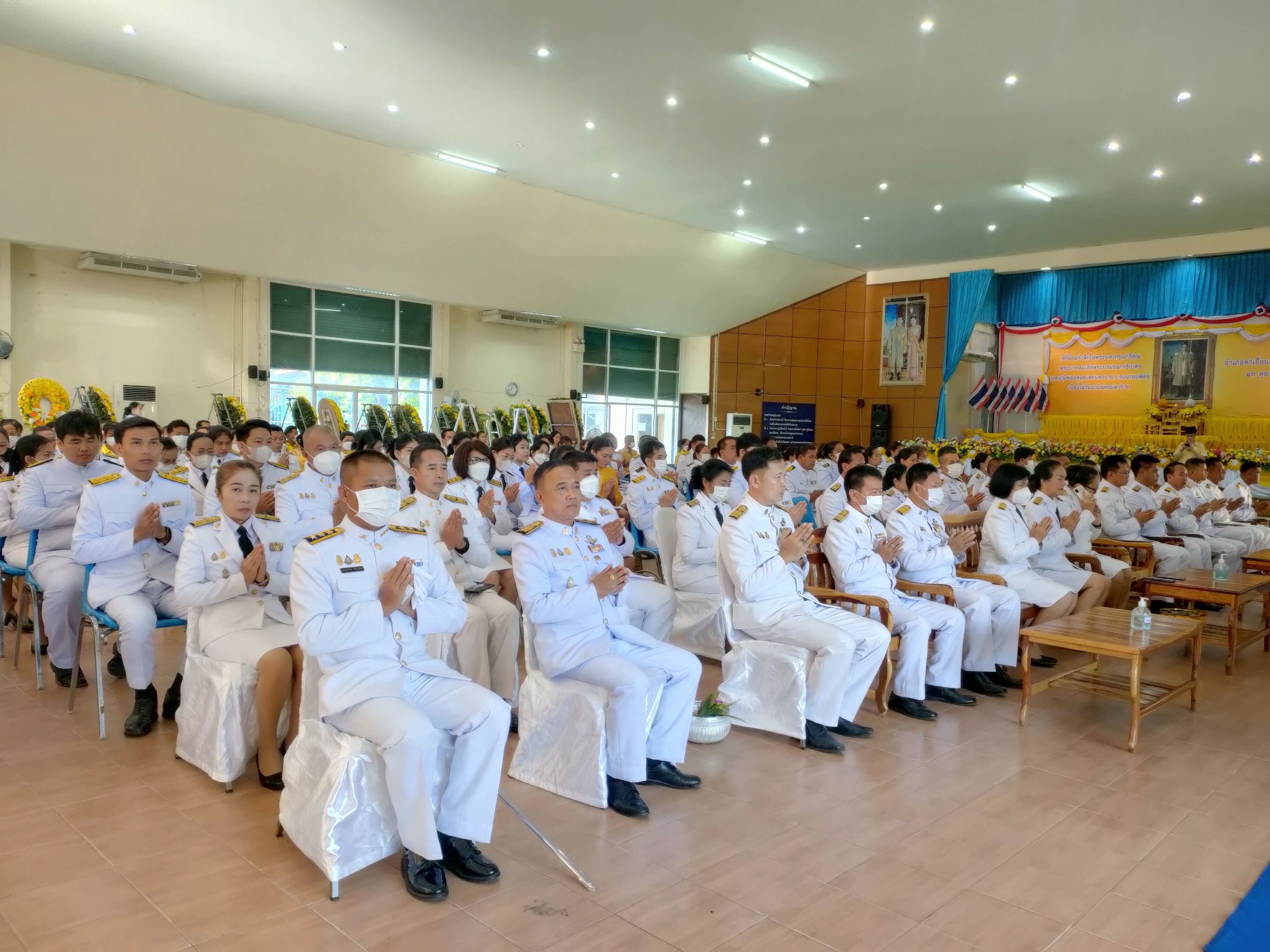 พิธีทำบุญตักบาตรถวายพระราชกุศล เนื่องในวันนวมินทรมหาราช ณ หอประชุม ๑๐๐ ปี อำเภอคำเขื่อนแก้ว