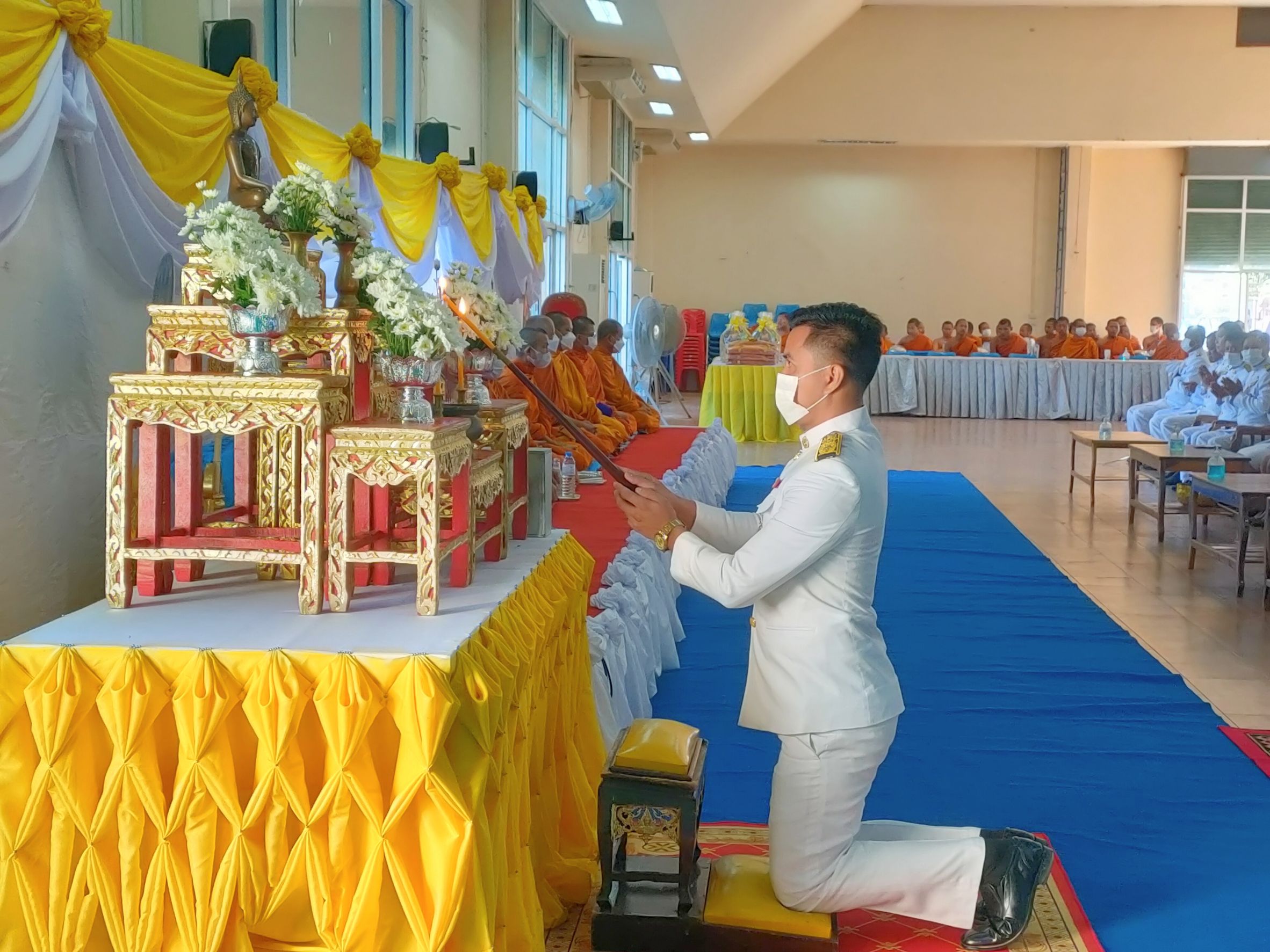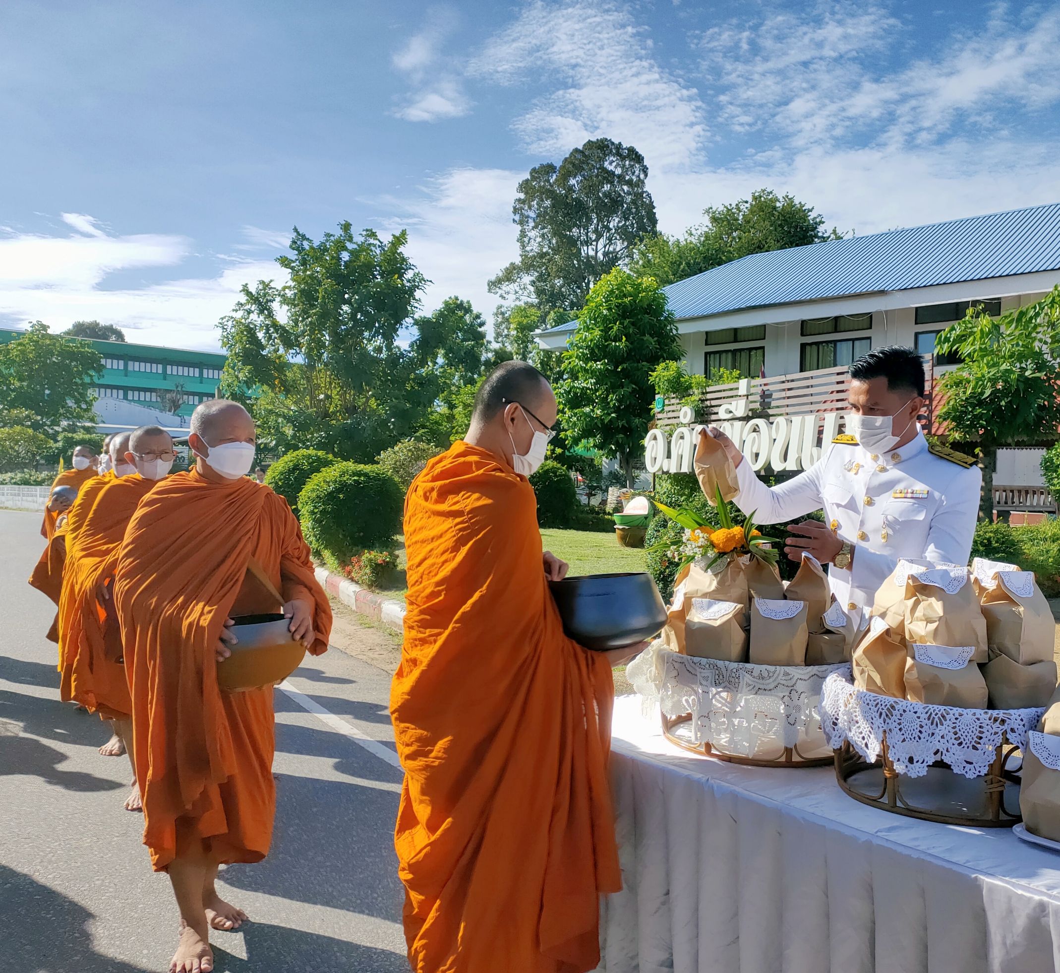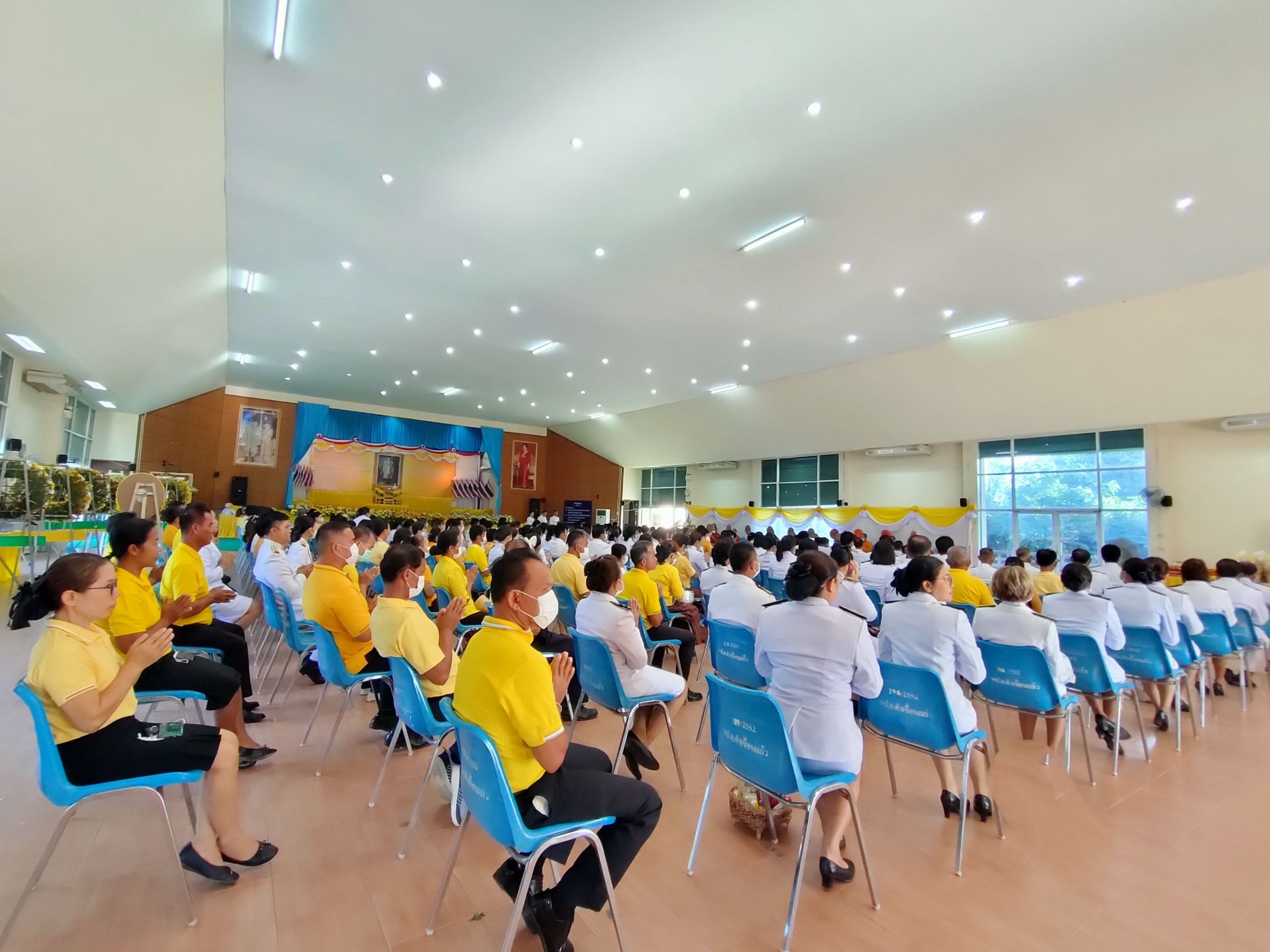 พิธีทำบุญตักบาตรถวายพระราชกุศล เนื่องในวันนวมินทรมหาราช ณ หอประชุม ๑๐๐ ปี อำเภอคำเขื่อนแก้ว