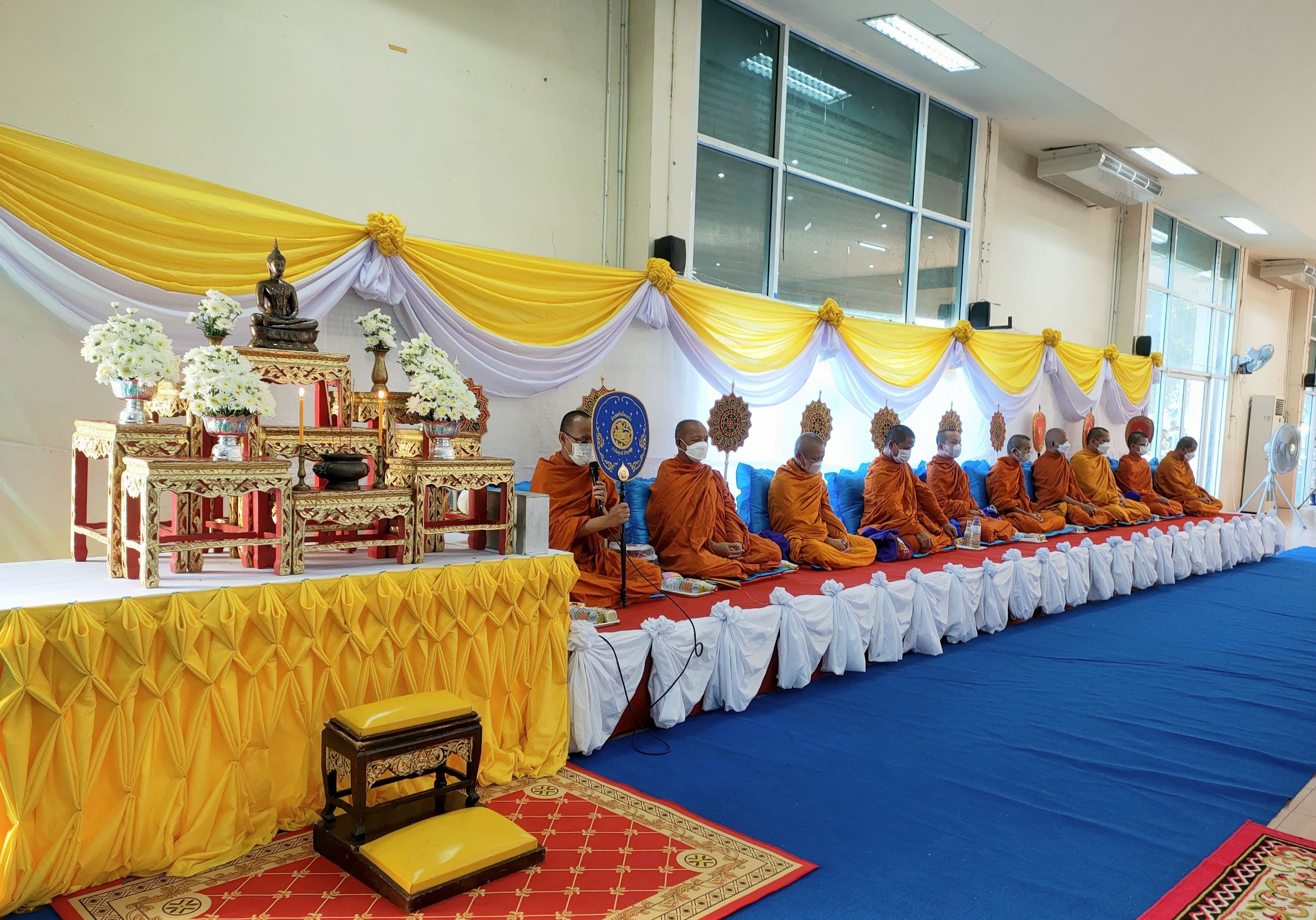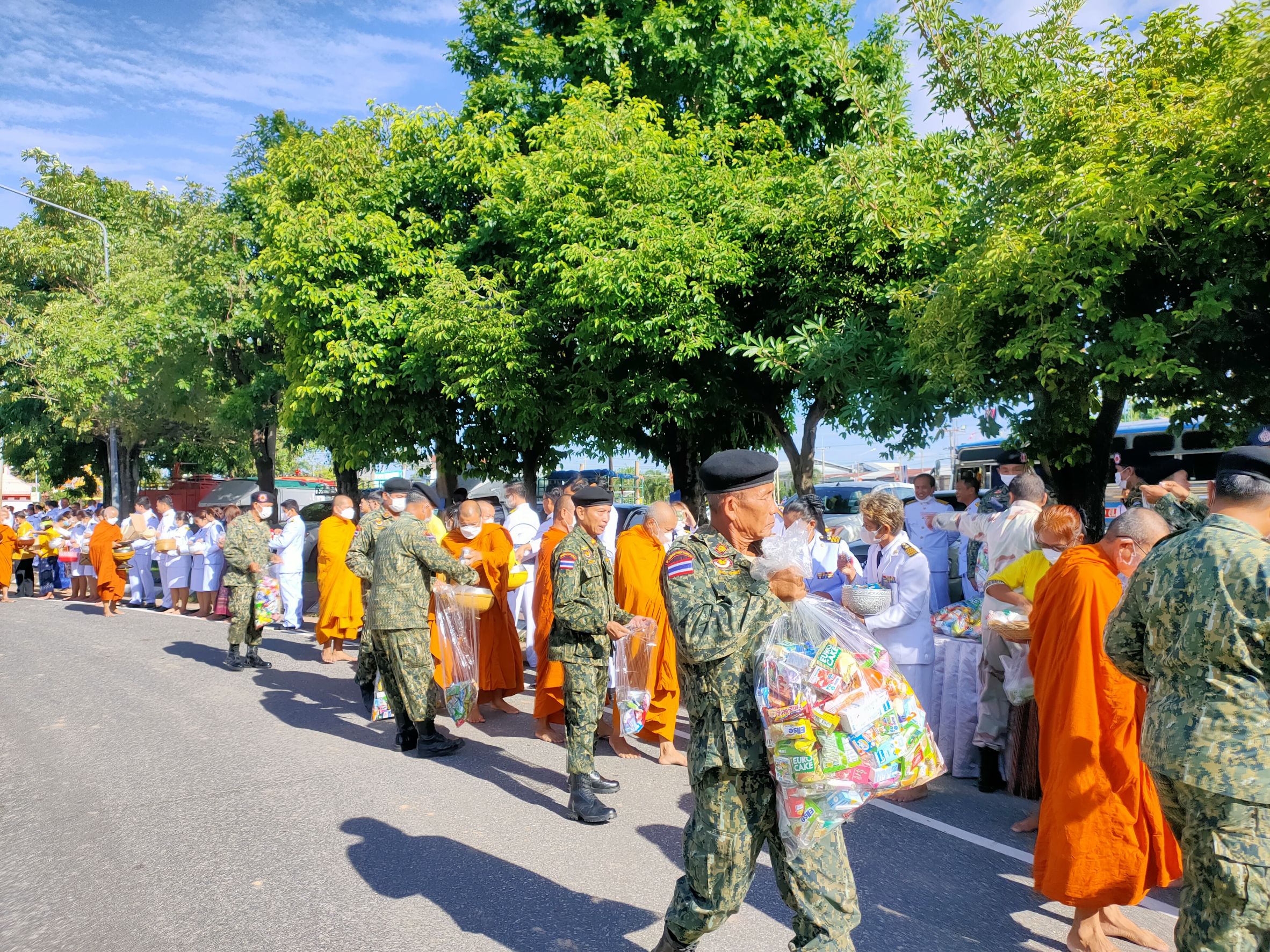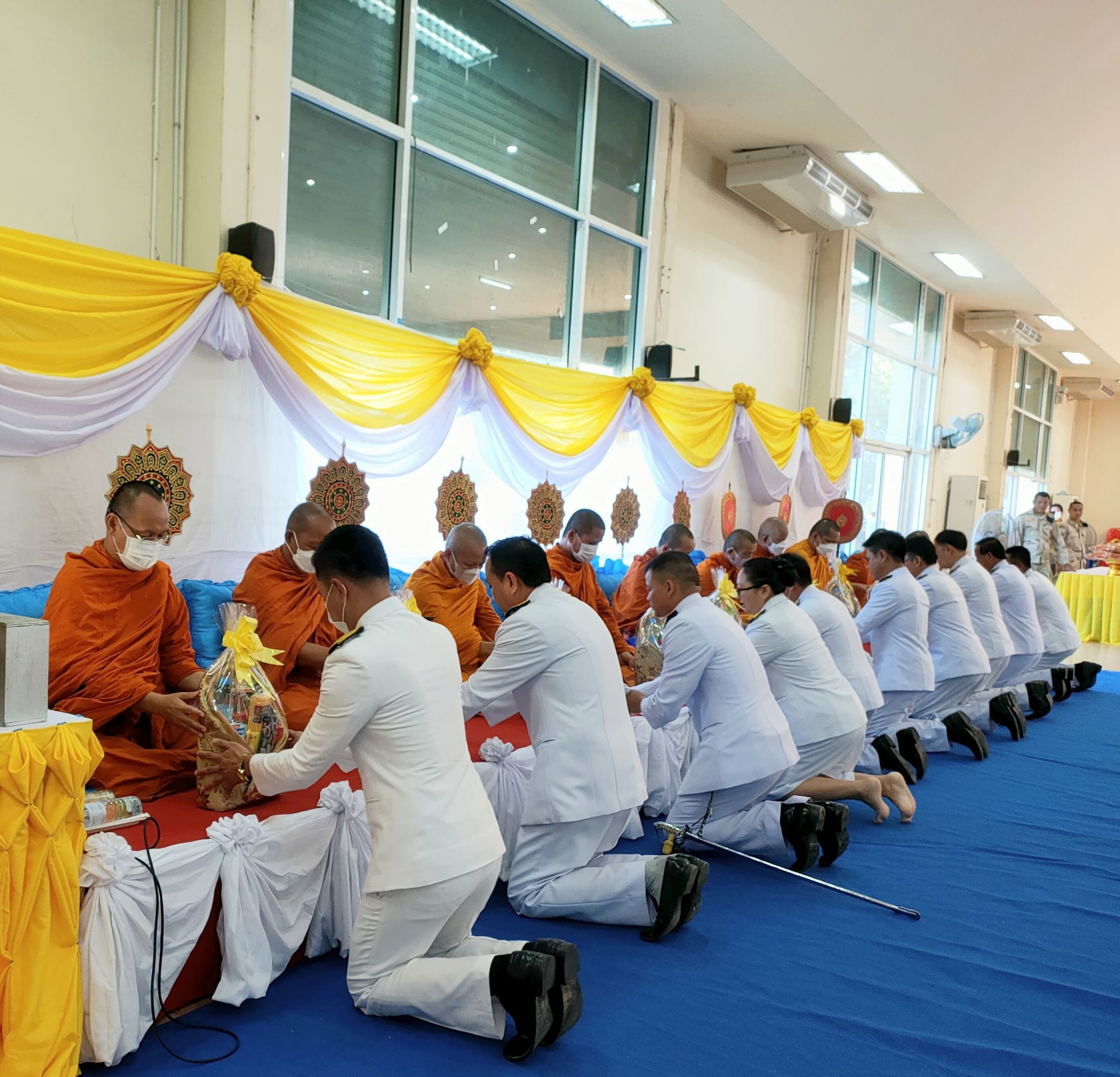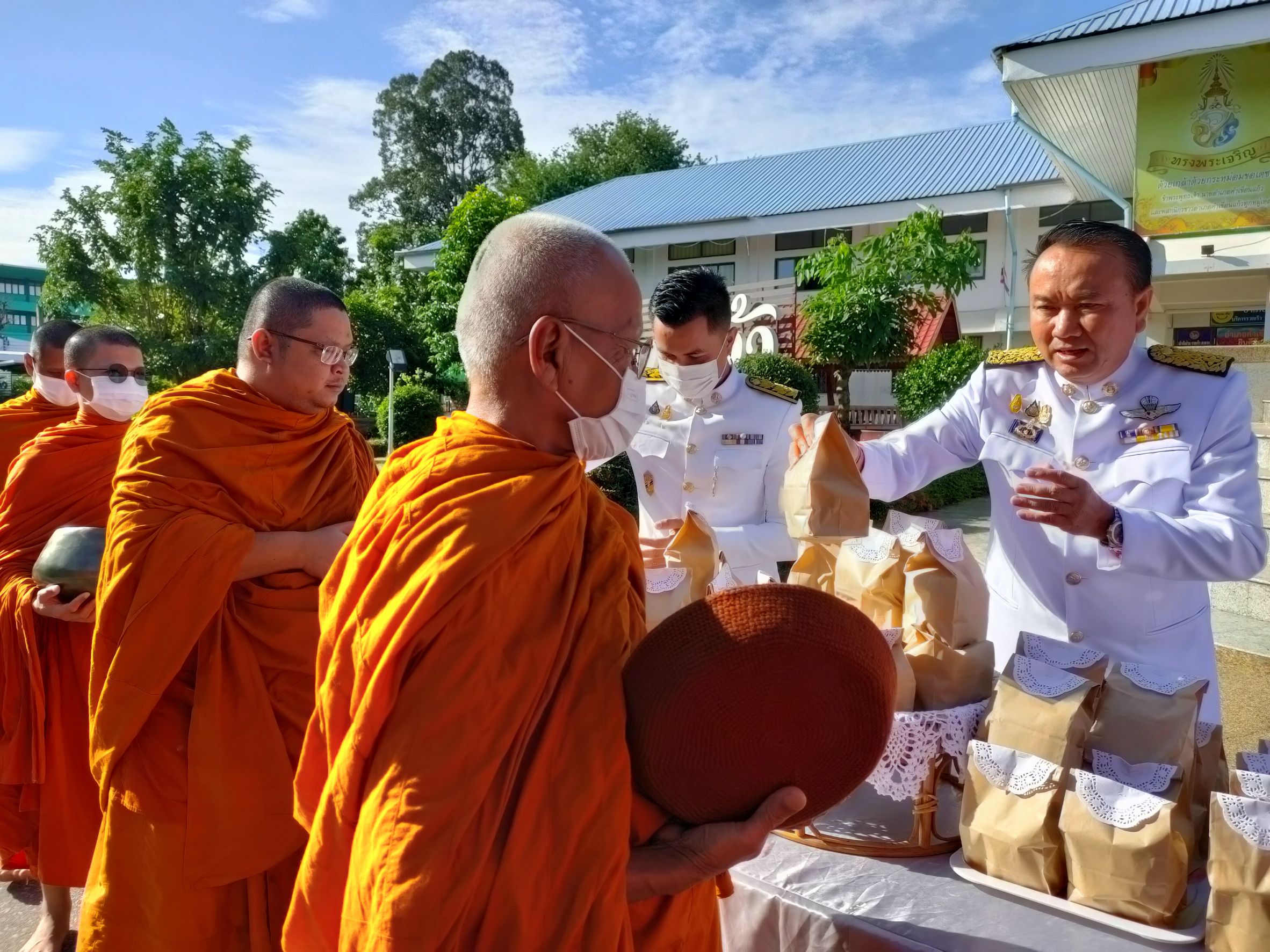 พิธีทำบุญตักบาตรถวายพระราชกุศล เนื่องในวันนวมินทรมหาราช ณ หอประชุม ๑๐๐ ปี อำเภอคำเขื่อนแก้ว