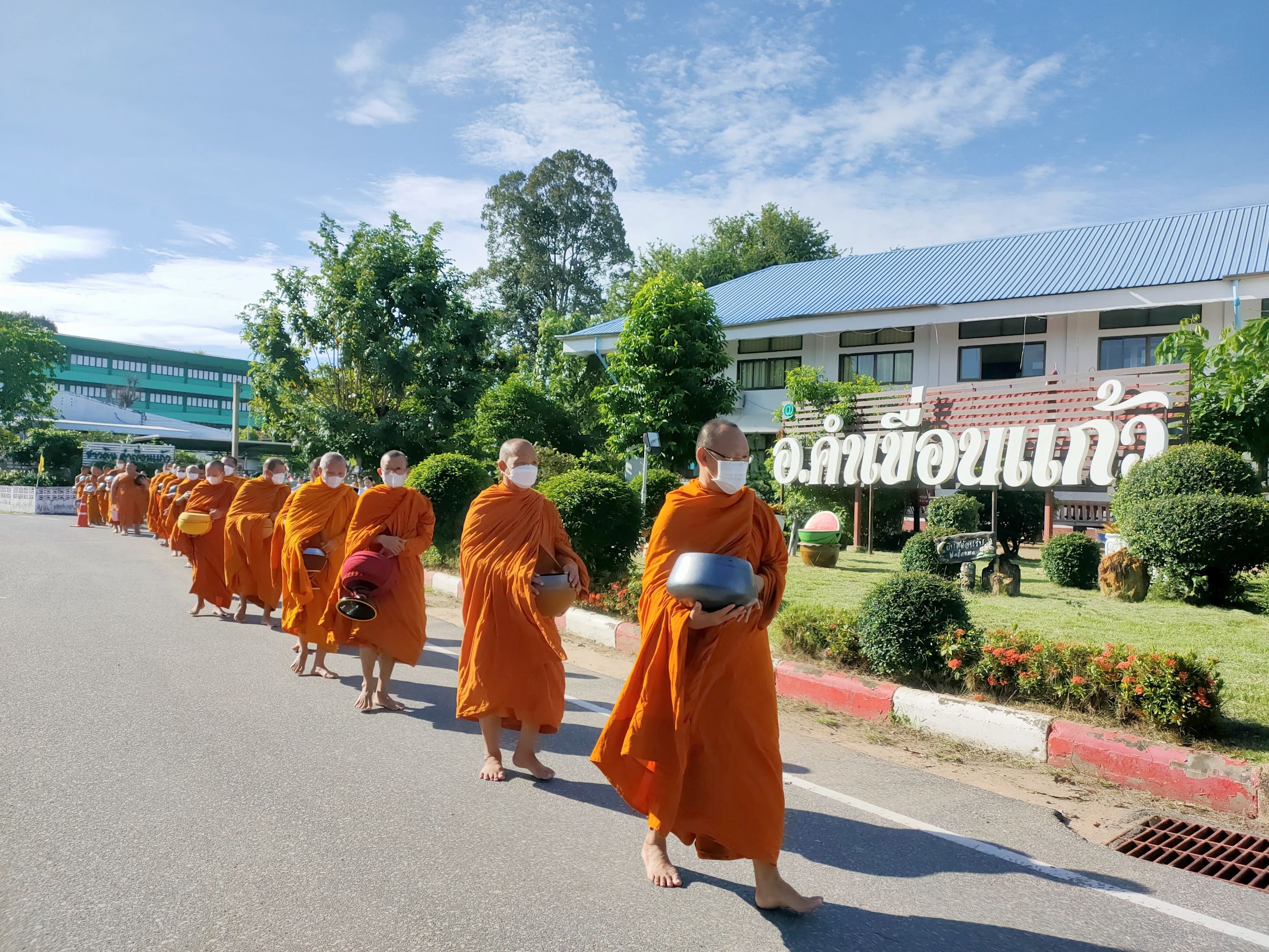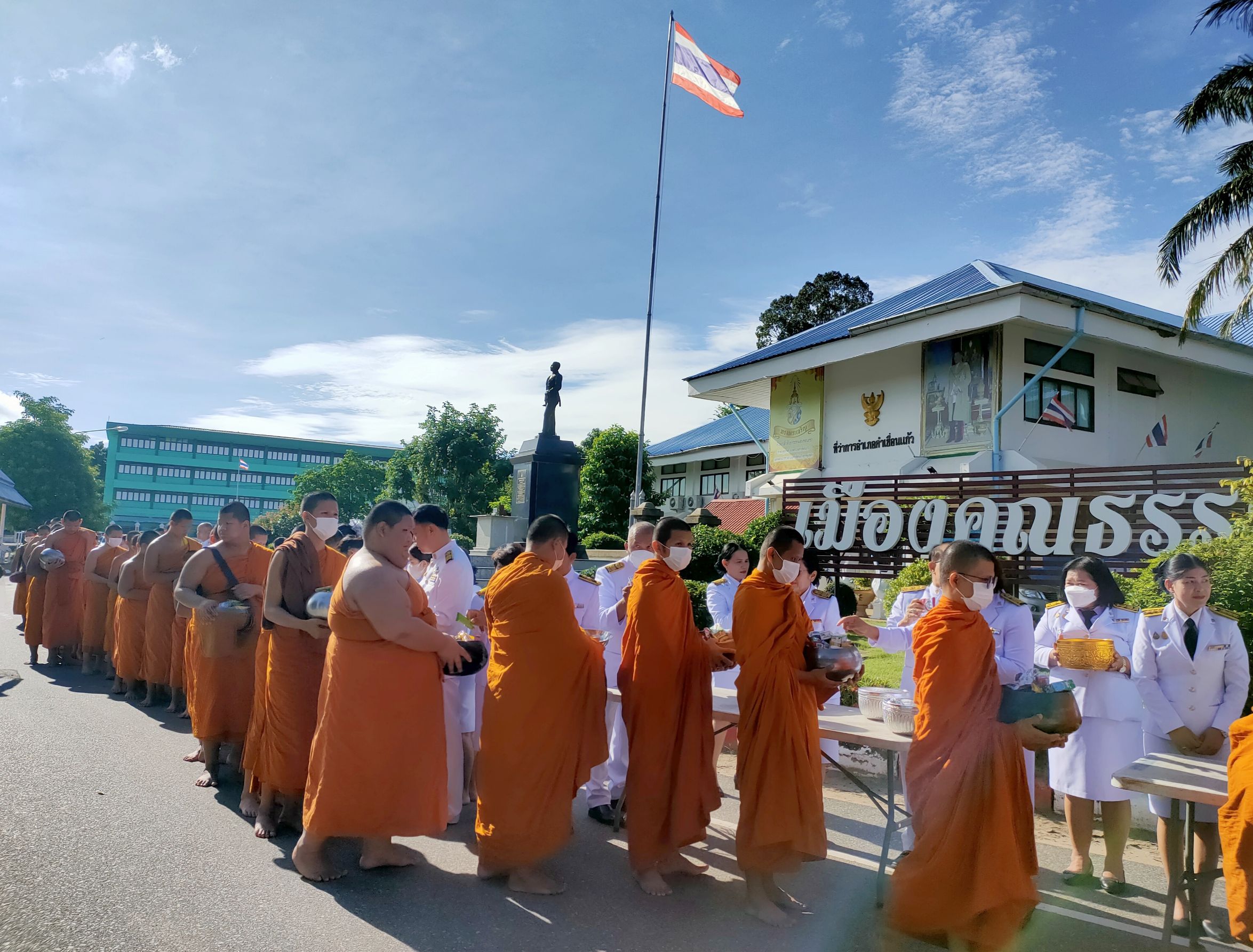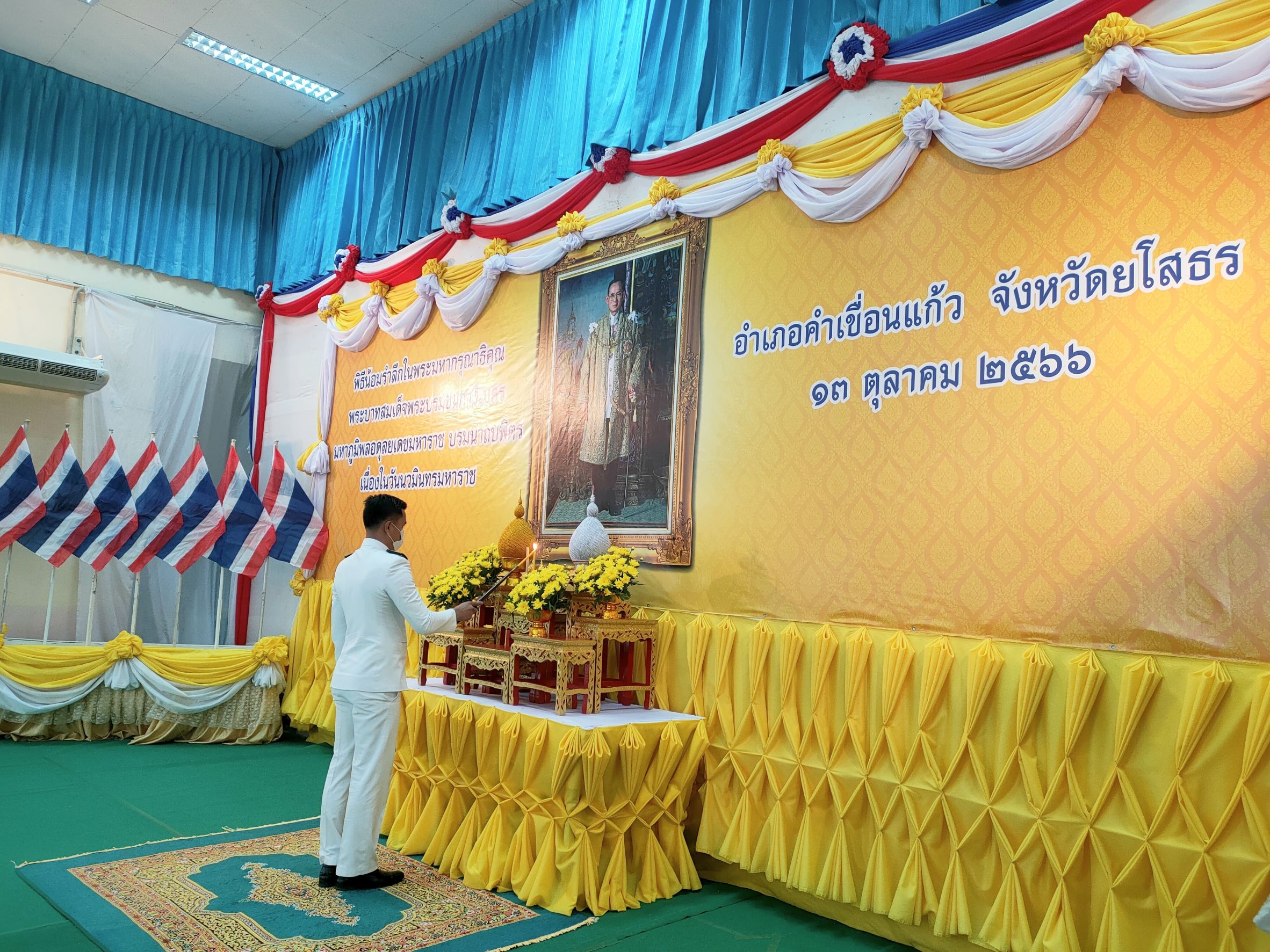 วันที่ 16 ต.ค. 2566 (10:39 น.)วันที่ ๑๓ ตุลาคม ๒๕๖๖ เวลา ๐๗.๓๐ น. นายชัยนเรศ ยอดแตง ปลัดอำเภอหัวหน้ากลุ่มงานบริหารงานปกครอง รักษาราชการแทนนายอำเภอคำเขื่อนแก้ว เป็นประธานในพิธีทำบุญตักบาตรถวายพระราชกุศล เนื่องในวันนวมินทรมหาราช เพื่อน้อมรำลึกในพระมหากรุณาธิคุณในพระบาทสมเด็จพระบรมชนกาธิเบศร มหาภูมิพลอดุลยเดชมหาราช บรมนาถบพิตร ที่ทรงมีต่อปวงชาวไทยเป็นล้นพ้นอย่างหาที่สุดมิได้ โดยมีนายบุญแก้ว สมวงศ์ สมาชิกสภาผู้แทนราษฎรจังหวัดยโสธร เขต ๒ หัวหน้าส่วนราชการ หัวหน้าหน่วยงานรัฐวิสาหกิจ ผู้บริหารสถานศึกษา ผู้บริหารองค์กรปกครองส่วนท้องถิ่น กำนัน ผู้ใหญ่บ้าน ข้าราชการ ลูกจ้าง ประชาชนในพื้นที่อำเภอคำเขื่อนแก้ว ร่วมพิธี ณ หอประชุม ๑๐๐ ปี อำเภอคำเขื่อนแก้ว และบริเวณหน้าที่ว่าการอำเภอคำเขื่อนแก้ว จังหวัดยโสธร