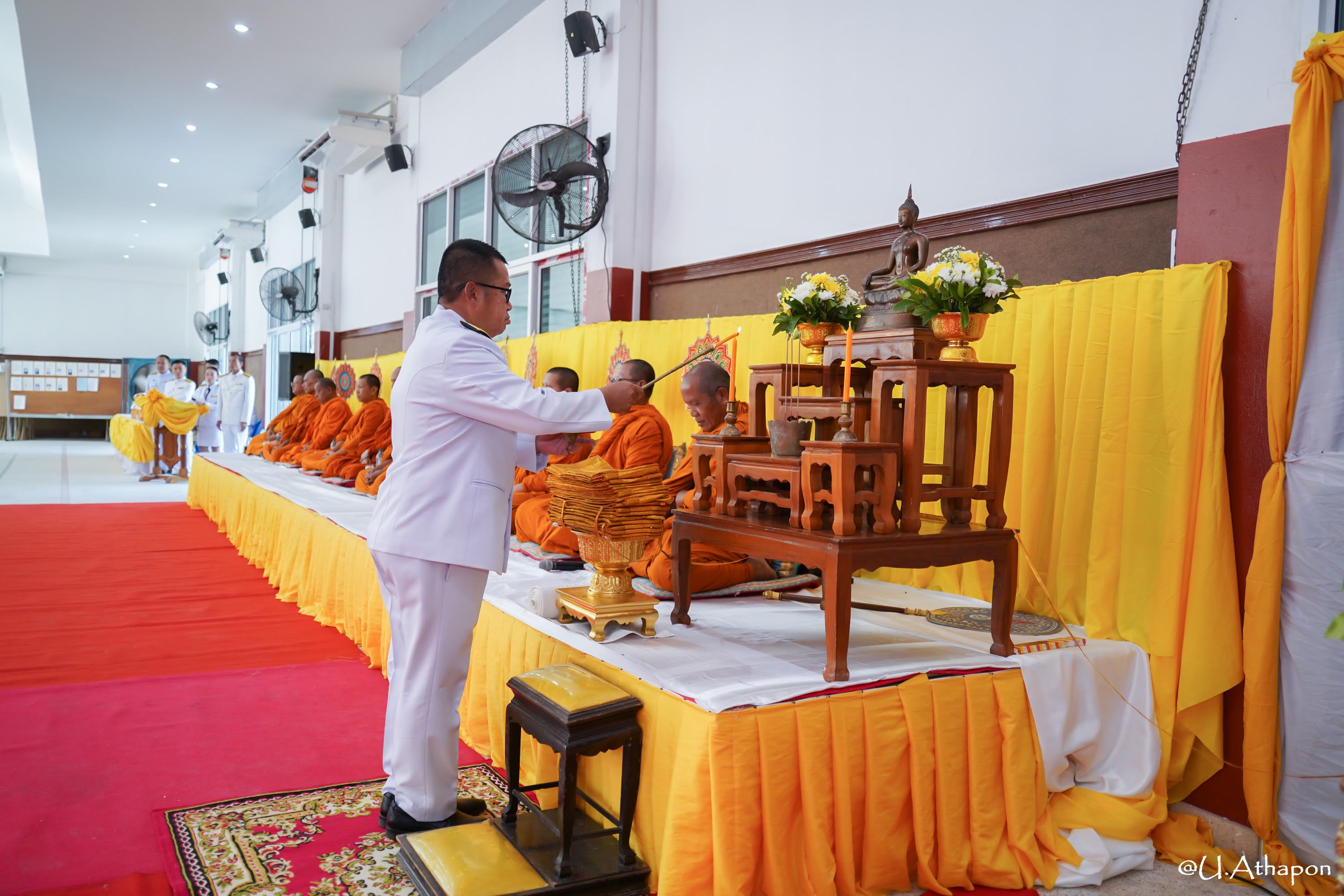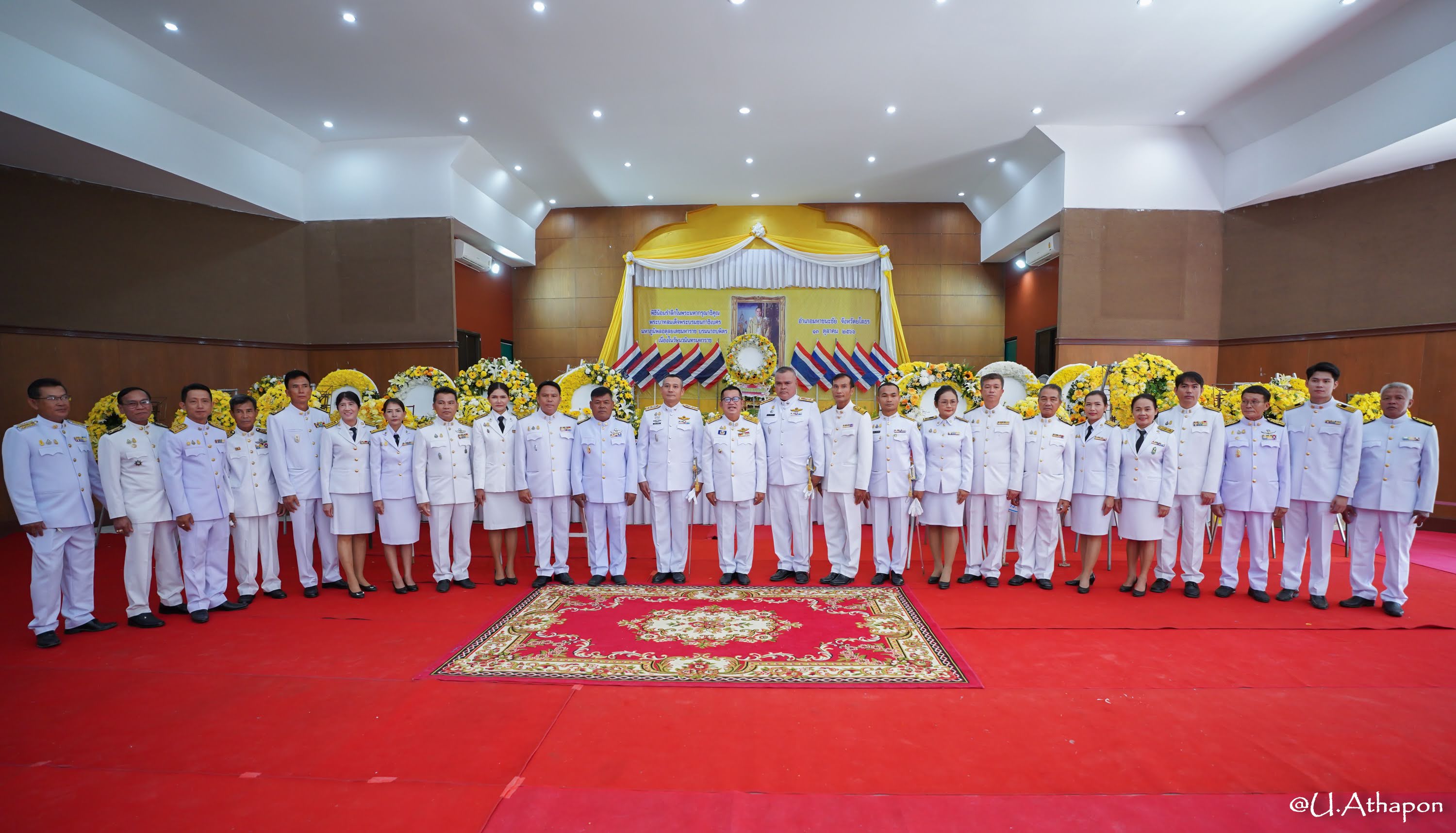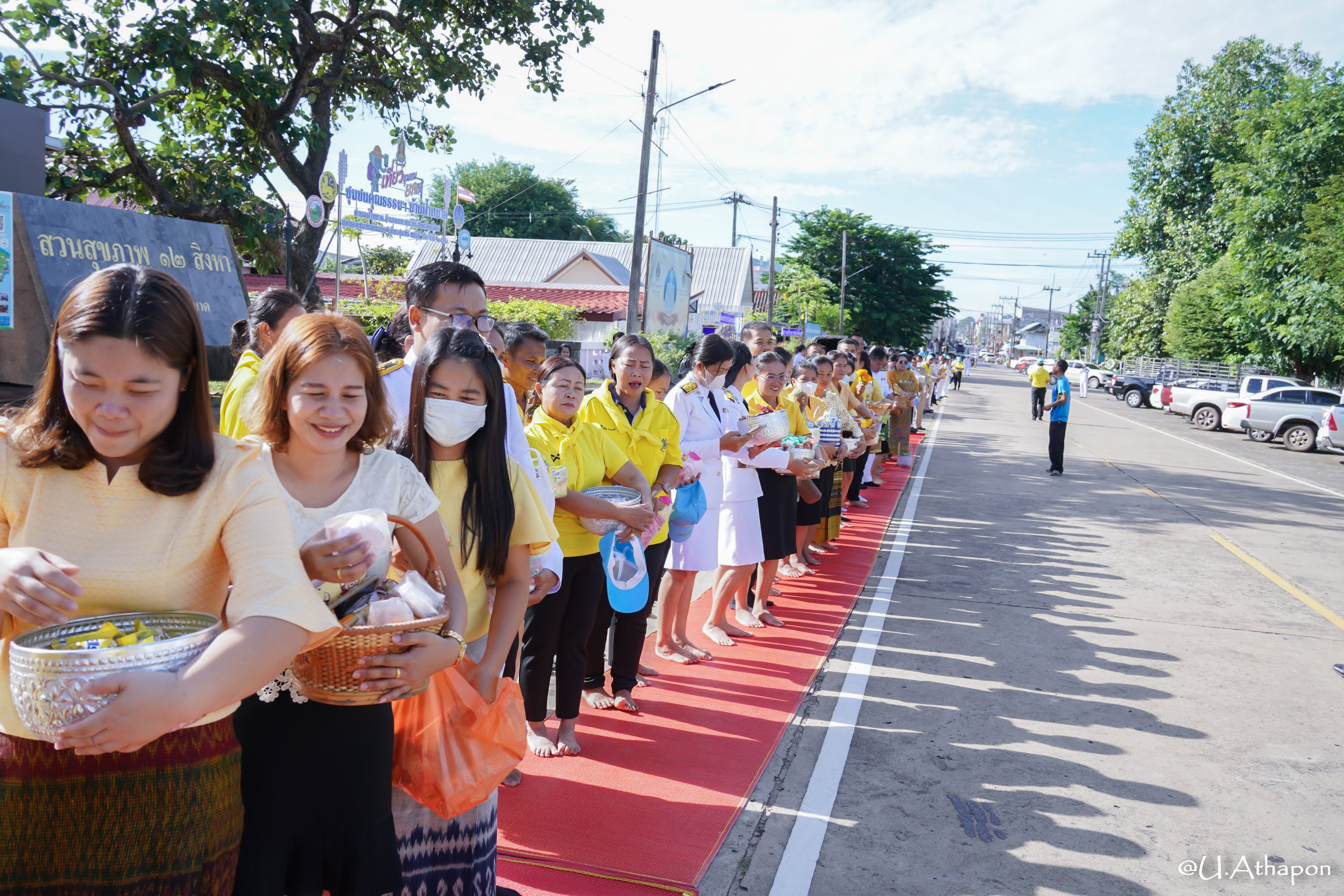 - เวลา 07.30 น. เจริญพระพุทธมนต์และพิธีทำบุญตักบาตรถวายพระราชกศล ณ หอประชุมอำเภอมหาชนะชัย จังหวัดยโสธร