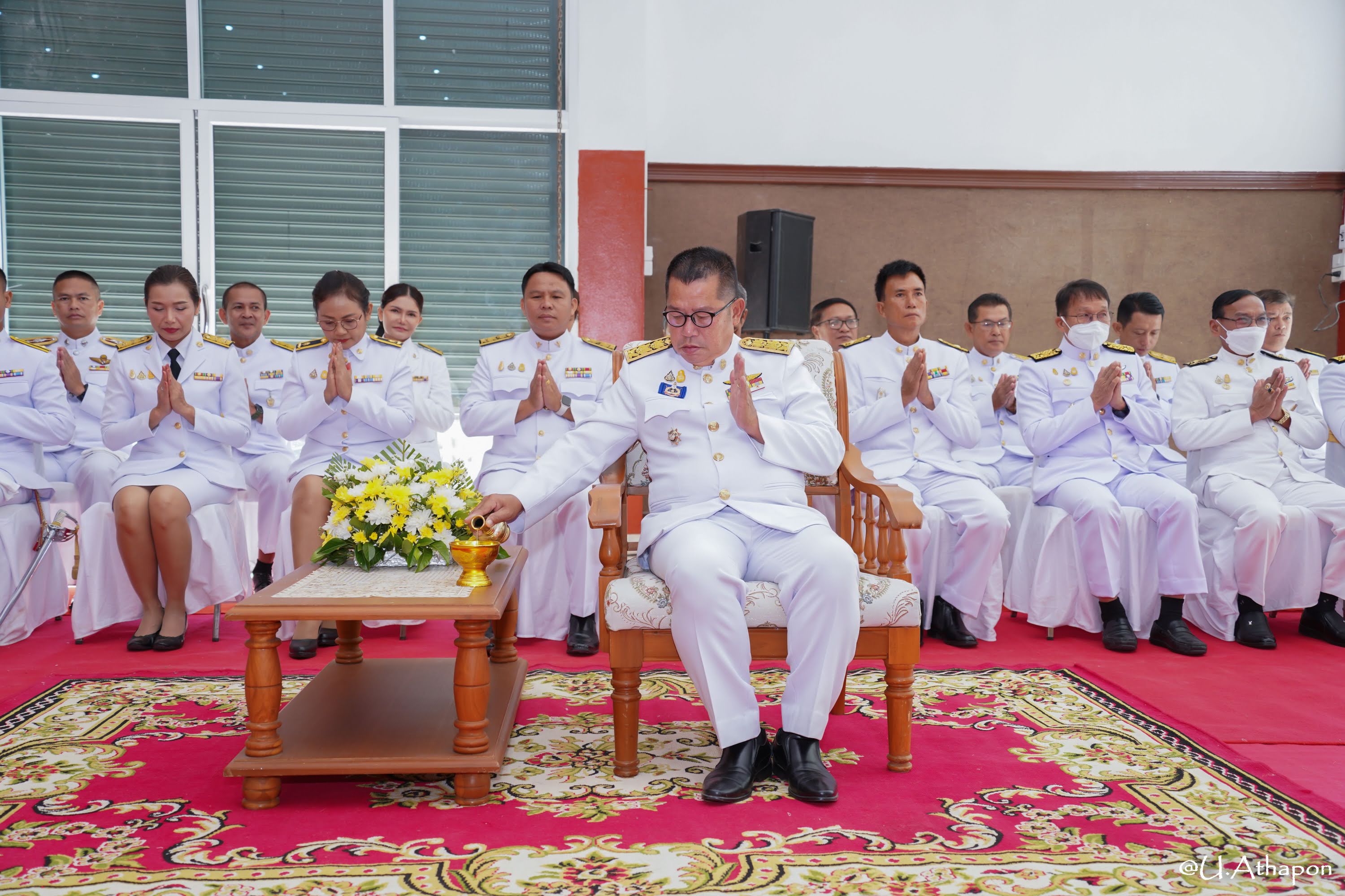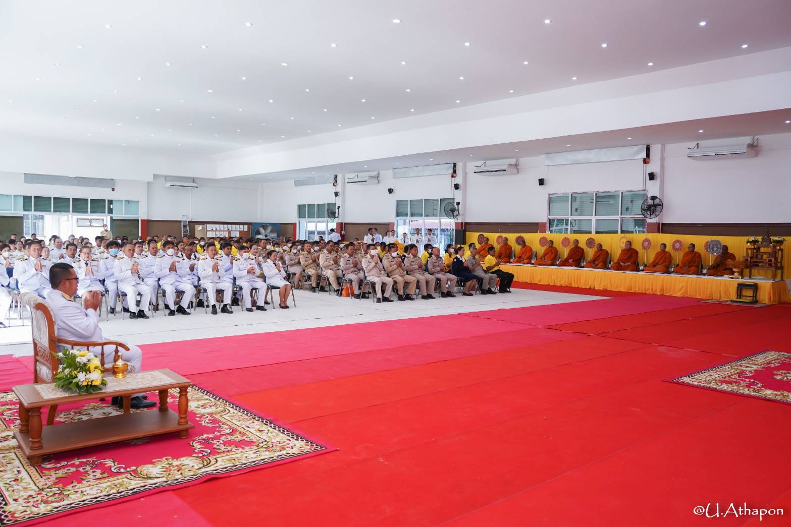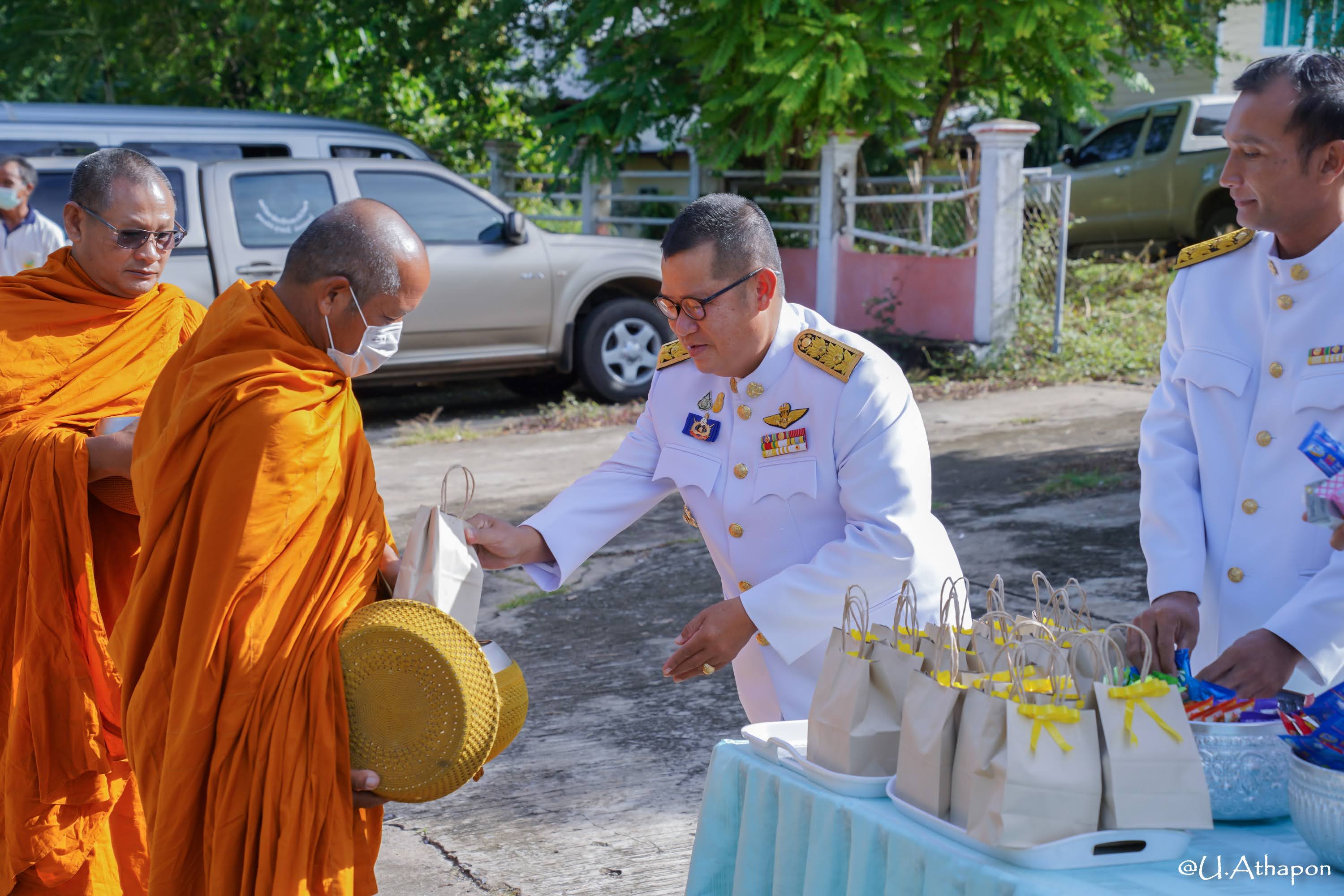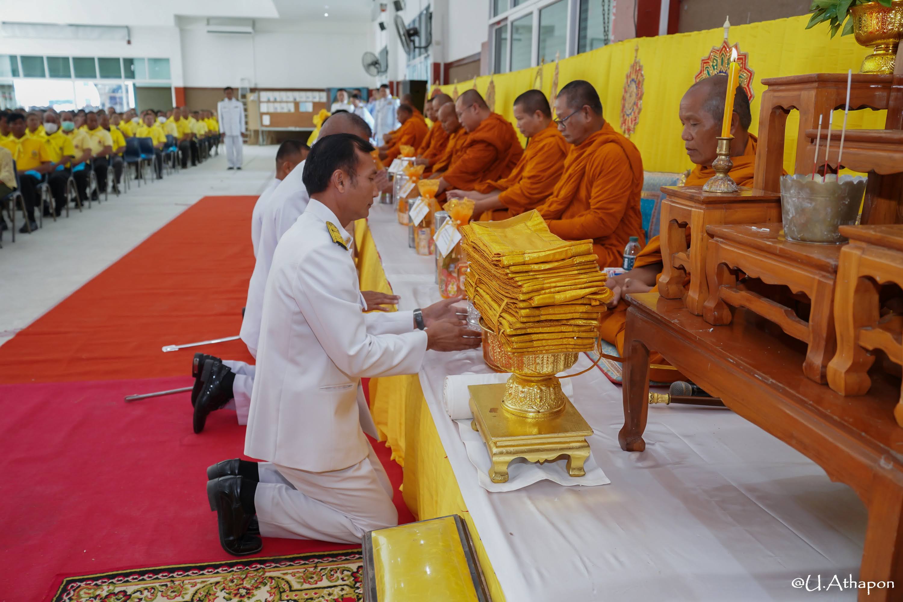 - เวลา 07.30 น. เจริญพระพุทธมนต์และพิธีทำบุญตักบาตรถวายพระราชกศล ณ หอประชุมอำเภอมหาชนะชัย จังหวัดยโสธร