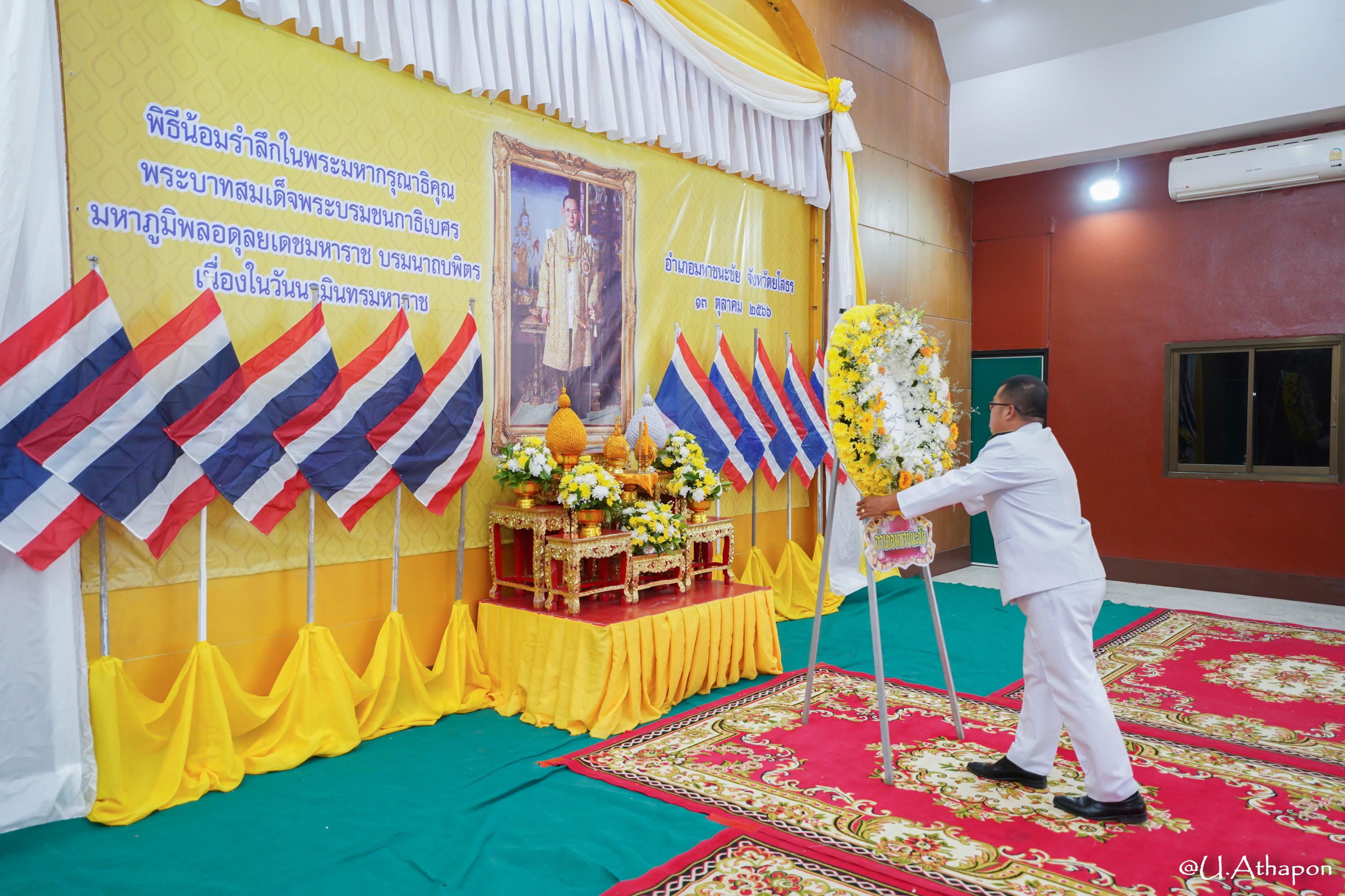 - เวลา 08.30 น. พิธีวางพวงมาลา ณ หอประชุมอำเภอมหาชนะชัย จังหวัดยโสธร