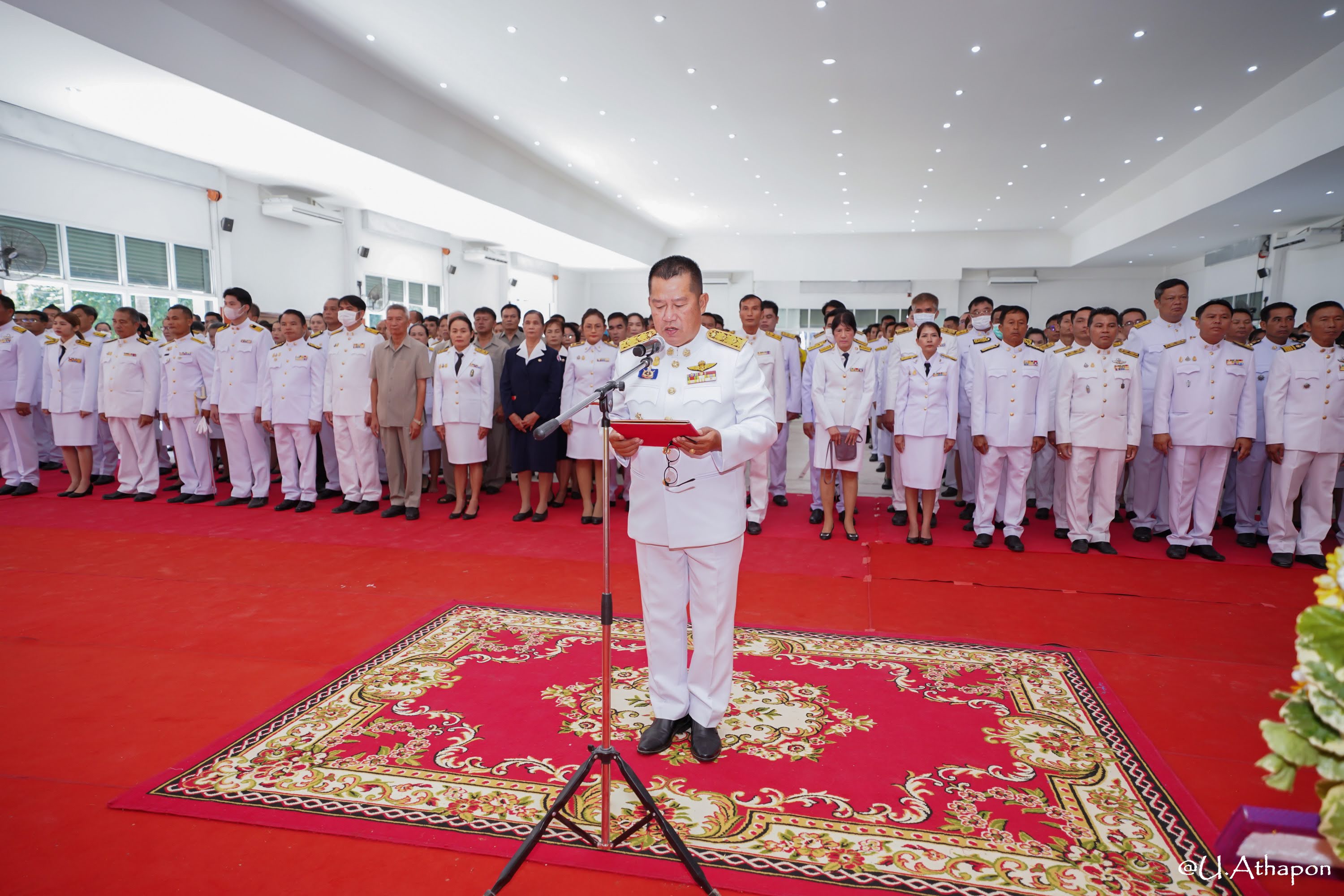 พร้อมด้วยหัวหน้าส่วนราชการ หัวหน้าหน่วยงานรัฐวิสาหกิจ ผู้บริหารสถานศึกษา ผู้บริหารองค์กรปกครองส่วนท้องถิ่น สมาชิกกิ่งกาชาดอำเภอมหาชนะชัย กำนัน ผู้ใหญ่บ้าน ฯลฯ จิตอาสาพระราชทาน พ่อค้า ประชาชนชนและนักเรียนนักศึกษา ร่วมพิธีดังกล่าว
