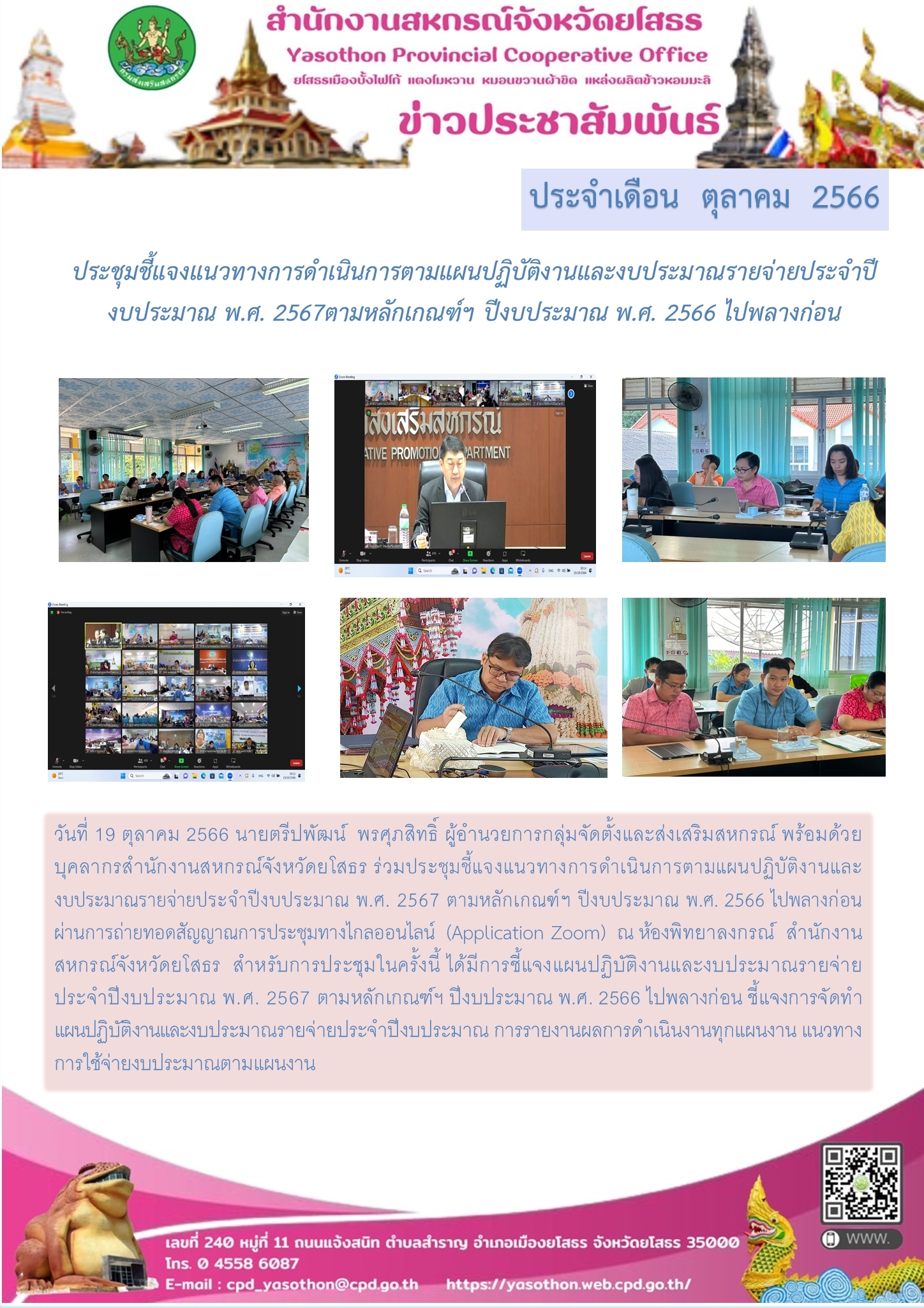 ผู้โพสต์ : [สำนักงานสหกรณ์จังหวัดยโสธร] ทั่วไป