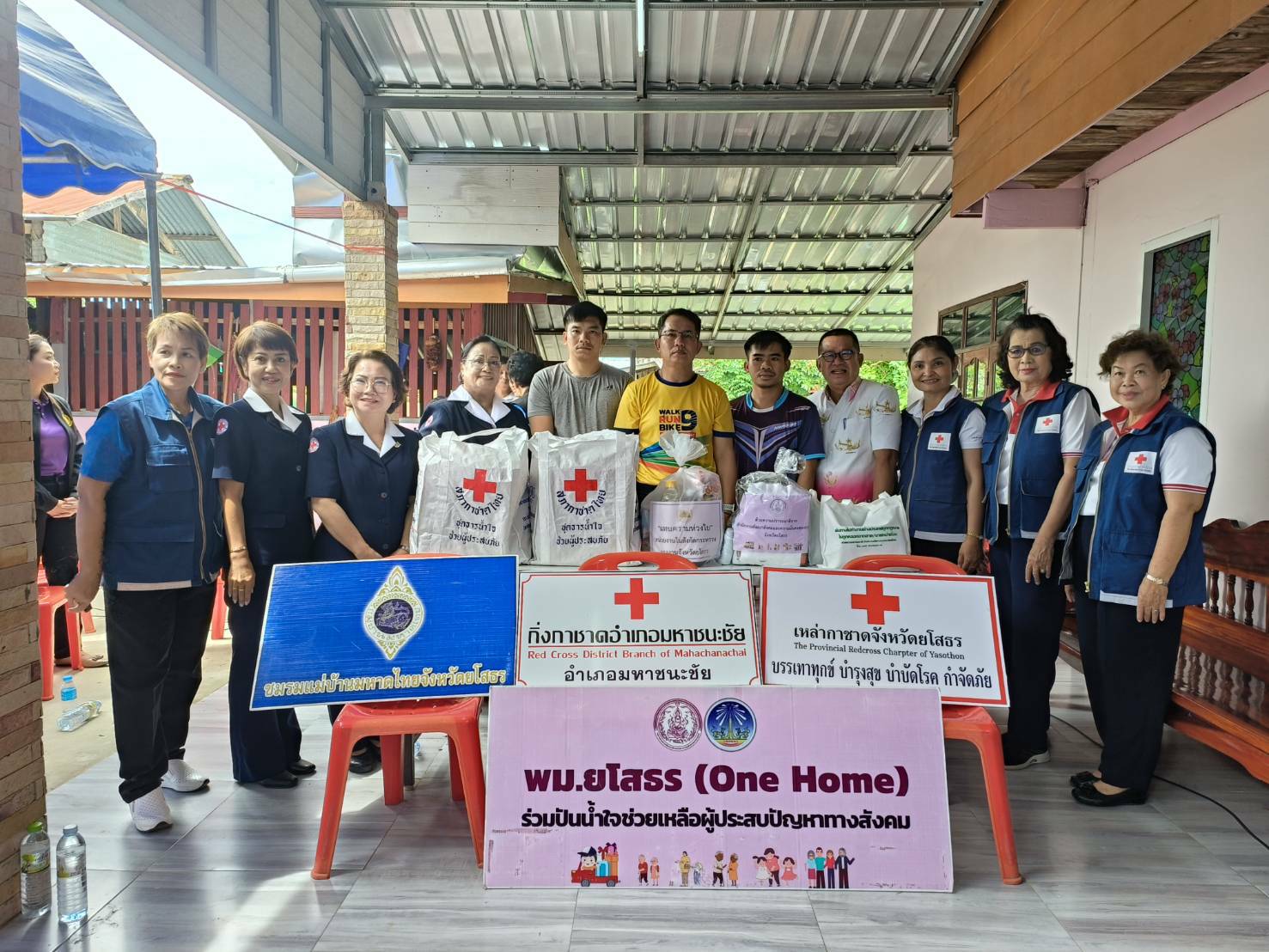 แก้ไขโดย : [อำเภอมหาชนะชัย] วันที่ 24 ต.ค. 2566 (21:32 น.)วันที่ 24 ตุลาคม 2566 เวลา 11.30 น. นายสุวัฒน์ เข็มเพชร รองผู้ว่าราชการจังหวัดรักษาราชการแทน ผู้ว่าราชการจังหวัดยโสธร นำหัวหน้าส่วนราชการ นายอำเภอ เหล่ากาชาดจังหวัดยโสธร ไปเยี่ยมให้กำลังใจ พร้อมให้ความช่วยเหลือแก่แรงงานที่เดินทางกลับจากความไม่สงบในประเทศอิสราเอล นายอภิรักษ์ ธรรมรักษ์ และนายชินโชค ธรรมรักษ์ บ้านคูสองชั้น ตำบลหัวเมือง อำเภอมหาชนะชัย จังหวัดยโสธร โดยในการลงพื้นที่ครั้งนี้ มีนายศรี ศรีพุทธรินทร์ นายอำเภอมหาชนะชัย นางอาภรณ์ สีสา แรงงานจังหวัดยโสธร นายเสกสรร จิตพงษ์ แทนผู้อำนวยการสำนักงานพัฒนาฝีมือแรงงานยโสธร นางสาวชนากานต์ ลีพิบูลย์สวัสดิ์ นักวิชาการแรงงานชำนาญการพิเศษ รักษาราชการแทนจัดหางานจังหวัดยโสธร นางสุจิตตรา เยาวราช แทนสวัสดิการและคุ้มครองแรงงานจังหวัดยโสธร รอง ผอ.กอ.รมน. จังหวัดยโสธร. นายนุศาสตร์ ซาเสน ผู้อำนวยการบ้านพักเด็กและครอบครัวจังหวัดยโสธร เจ้าหน้าที่สำนักงานพัฒนาสังคมและความมั่นคงของมนุษย์จังหวัดยโสธร กิ่งกาชาดอำเภอมหาชนะชัย สมาชิกชมรมแม่บ้านมหาดไทยอำเภอมหาชนะชัย อบต.หัวเมือง กำนัน ผู้ใหญ่บ้าน ฯลฯและส่วนราชการในพื้นที่ร่วมบูรณาการลงพื้นที่เยี่ยมเสริมกำลังใจแก่แรงงานและครอบครัว