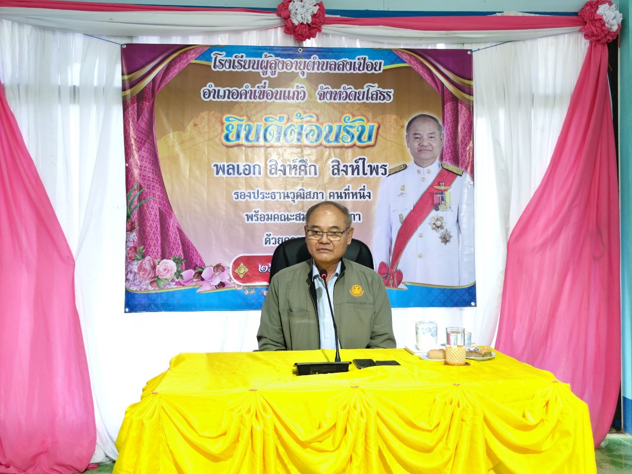 วันที่ 27 ต.ค. 2566 (09:18 น.)วันที่ ๒๖ ตุลาคม ๒๕๖๖ เวลา ๑๐.๓๐ น. พลเอก สิงห์ศึก สิงห์ไพร รองประธานวุฒิสภา คนที่หนึ่ง ประธานคณะกรรมการอำนวยการโครงการสมาชิกวุฒิสภาพบประชาชน ในพื้นที่จังหวัดภาคตะวันออกเฉียงเหนือ (ตอนล่าง) และคณะ ลงพื้นที่พบประชาชน เยี่ยมชมการดำเนินงานของโรงเรียนผู้สูงอายุตำบลสงเปือย พร้อมพบปะพูดคุยกับนักเรียน (ผู้สูงอายุ) ณ โรงเรียนผู้สูงอายุตำบลสงเปือย องค์การบริหารส่วนตำบลสงเปือย